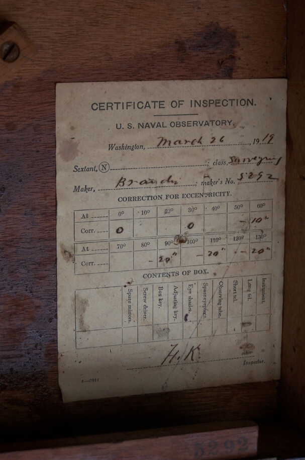 Ese mismo año, en junio, los británicos John Alcock y Arthur Brown realizaron la primera travesía aérea sin escalas del Atlántico Norte, desde San Juan, Terranova (Canadá) hasta Clifden, Connemara, condado de Galway (Irlanda). Durante el vuelo, el navegante Brown se vio obligado a utilizar el sextante en varias ocasiones, especialmente al perder la visibilidad sobre bancos de niebla, lo que evidenció la importancia de contar con instrumentos fiables para la navegación astronómica.