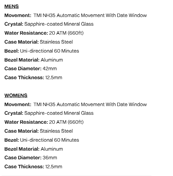 Hasta en esto ha de haber “mens” and “womens”, como no hay mens que nos gustan los 36mm, y también los 42 y más.