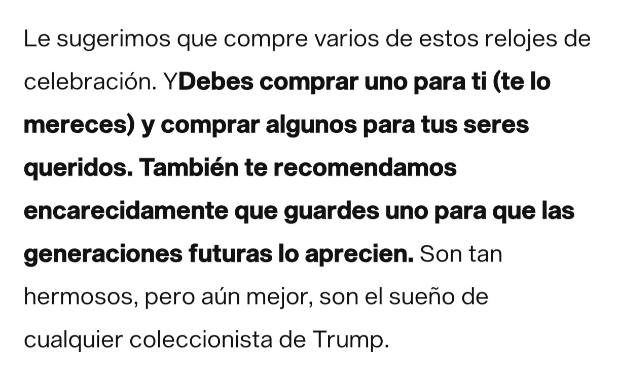 La cagada es el diseño, con el careto del tipo. Que sea de trump me trae sin cuidado. Politicamente es peor comprar uno con la estrella roja comunista…y tambien me da igual. Son solo relojes.
