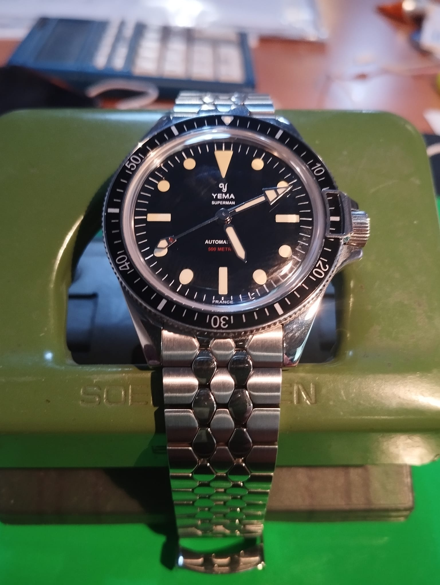 Ahora hará un año que estoy en el foro, estos dos relojes son de este año y me hacen ver todo lo que he aprendido, gracias a vosotros, sobre relojes en este año, cómo ha cambiado mi gusto y cómo he afinado mi colección. Y no solamente por los posts de los “sabios”, que tenemos unos cuantos y no menciono a ninguno por no olvidarme de alguien, sino porque de ver todas vuestras adquisiciones, fotos y comentarios he conseguido tener un conocimiento general que antes no tenía.