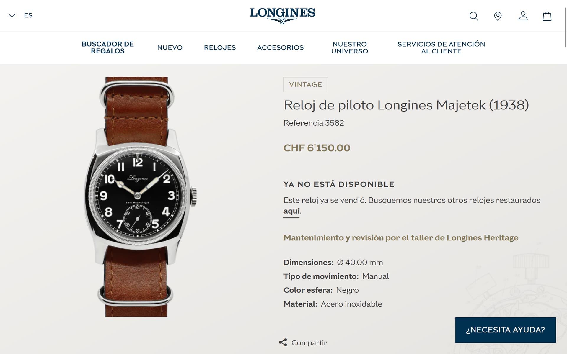 Longines tenía recientemente en su página un vintage a la venta por 6150 CHF.