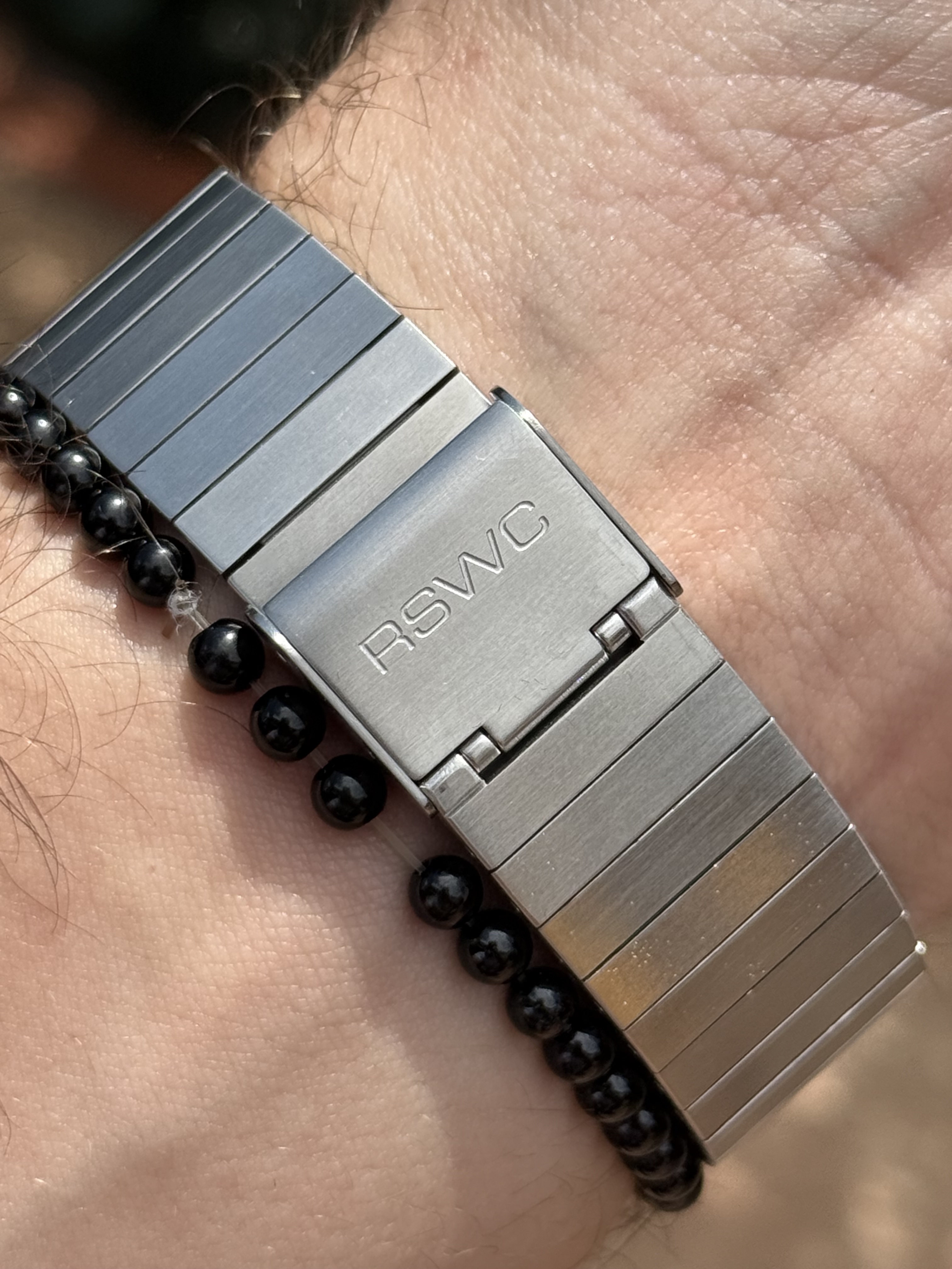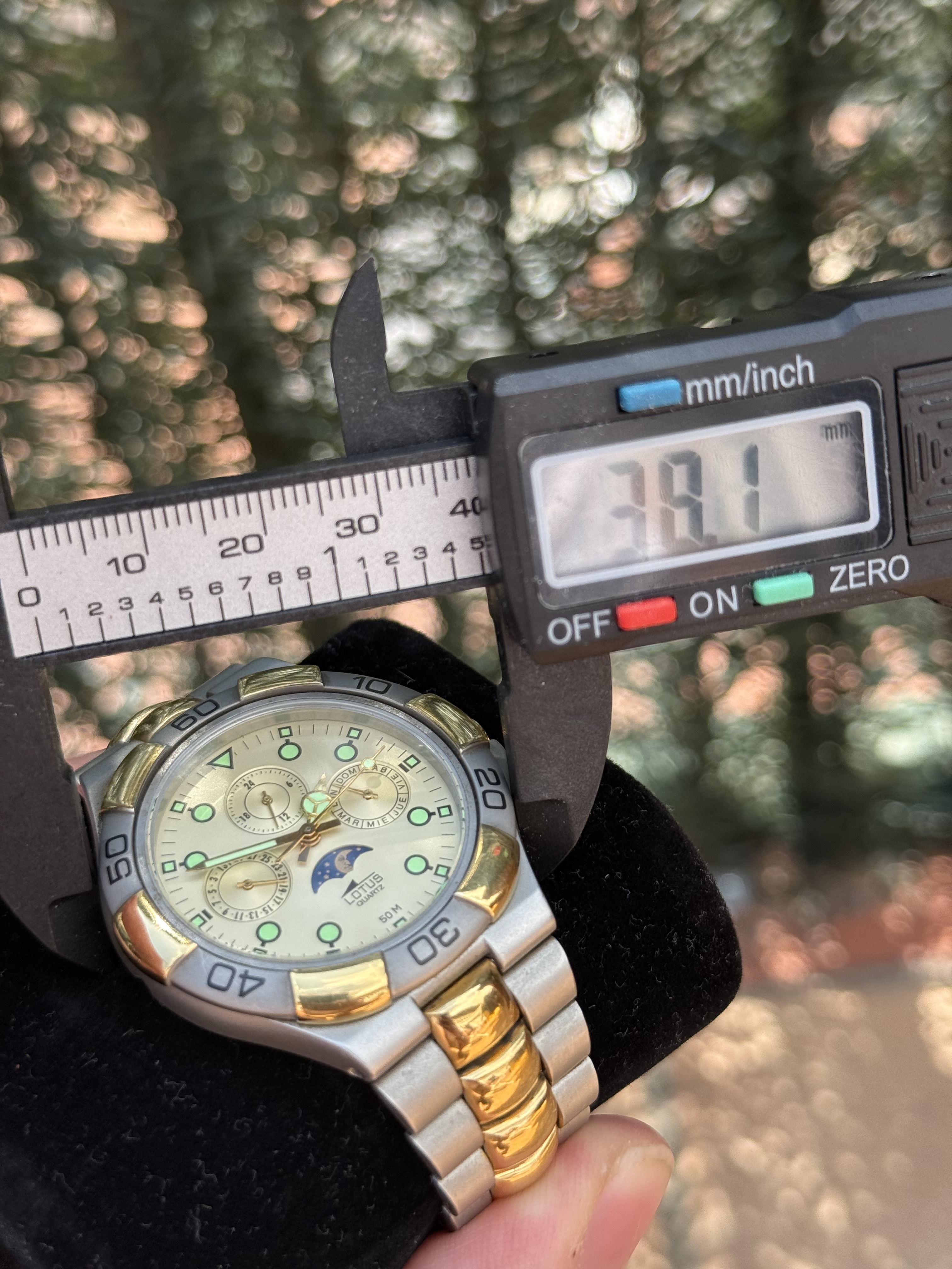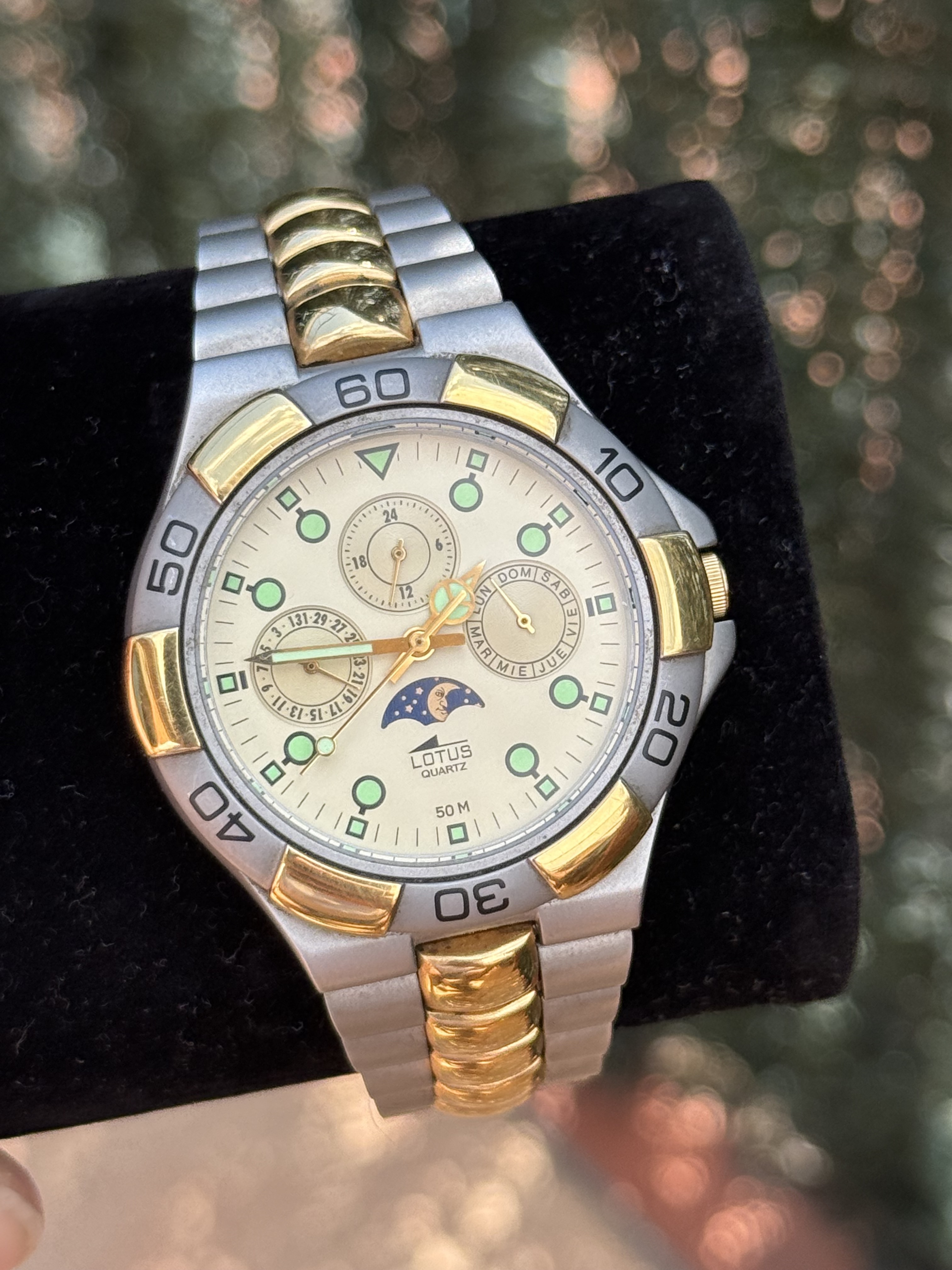 - Lotus, delgado y ligero. Brazalete largo, con 18,5 de muñeca me sobra, caja genérica: