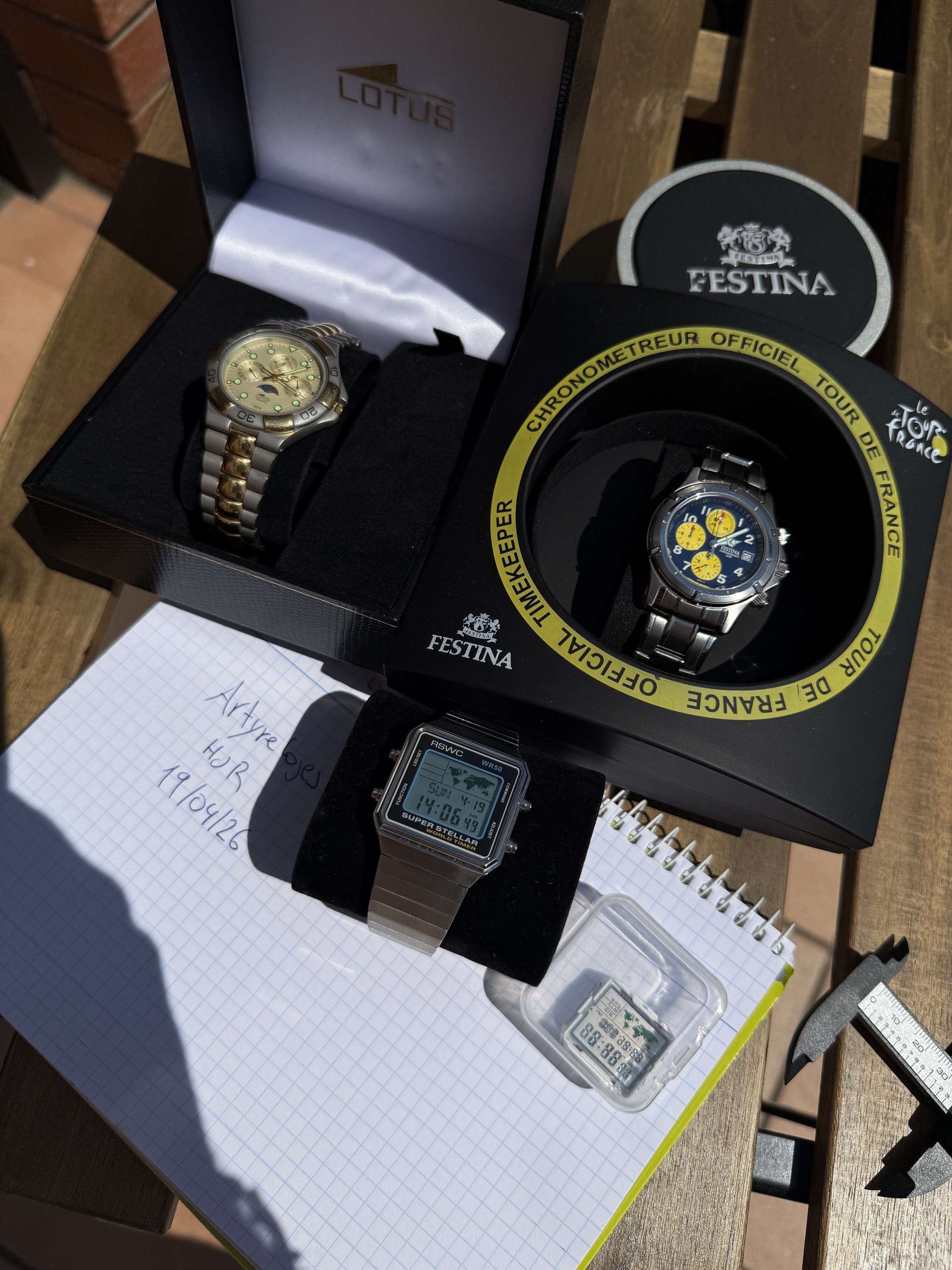 - RSWC Worldtimer, full set, con el modulo de repuesto, mi jefa lo usó dos días y sigue con su smartwatch, tiro la toalla jajaja:
