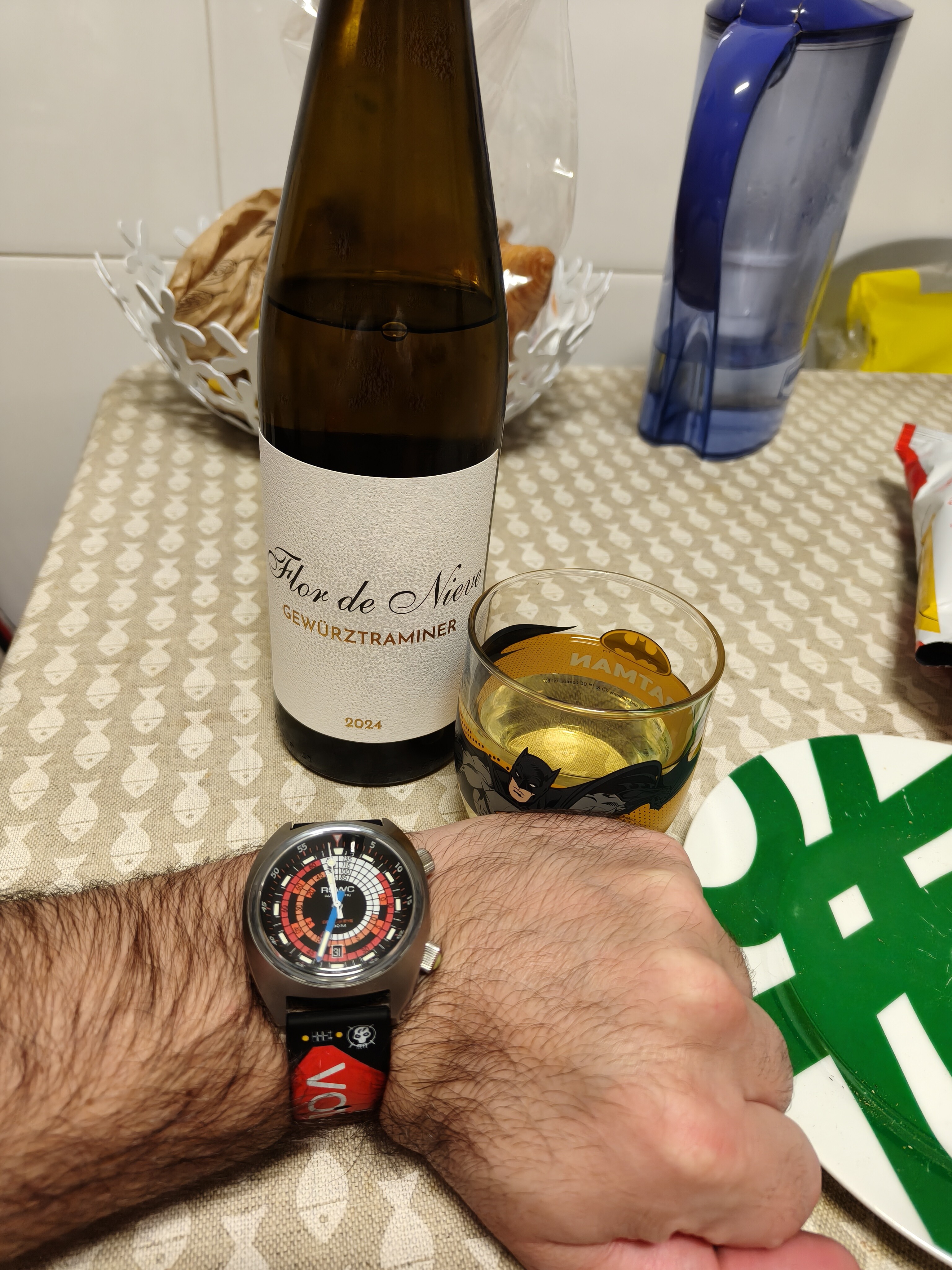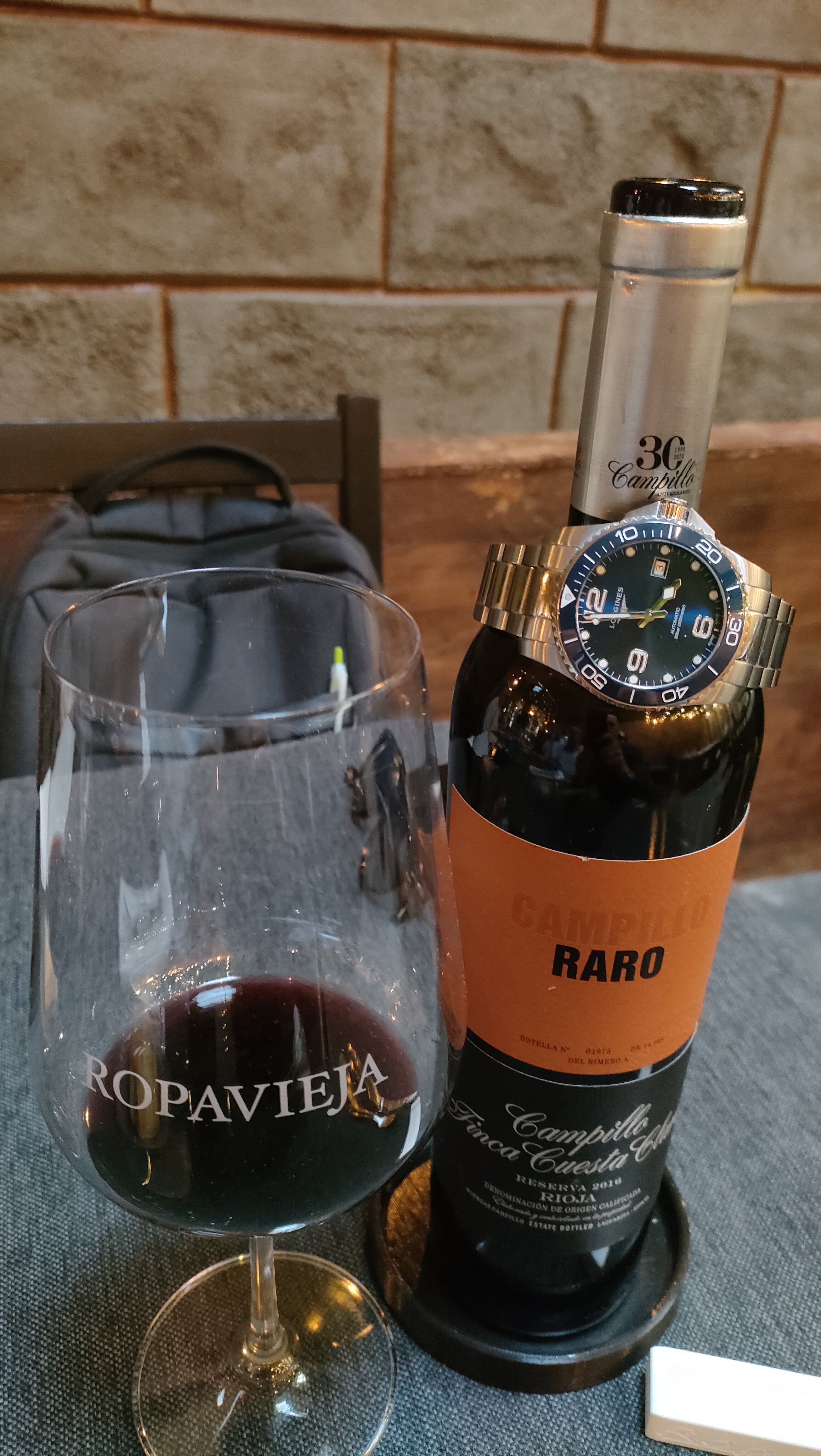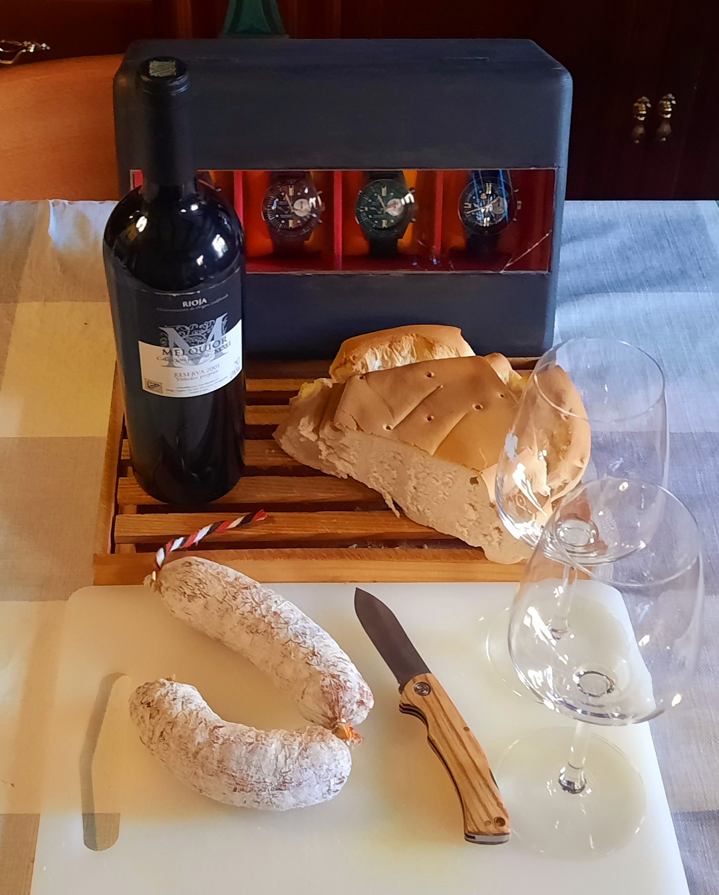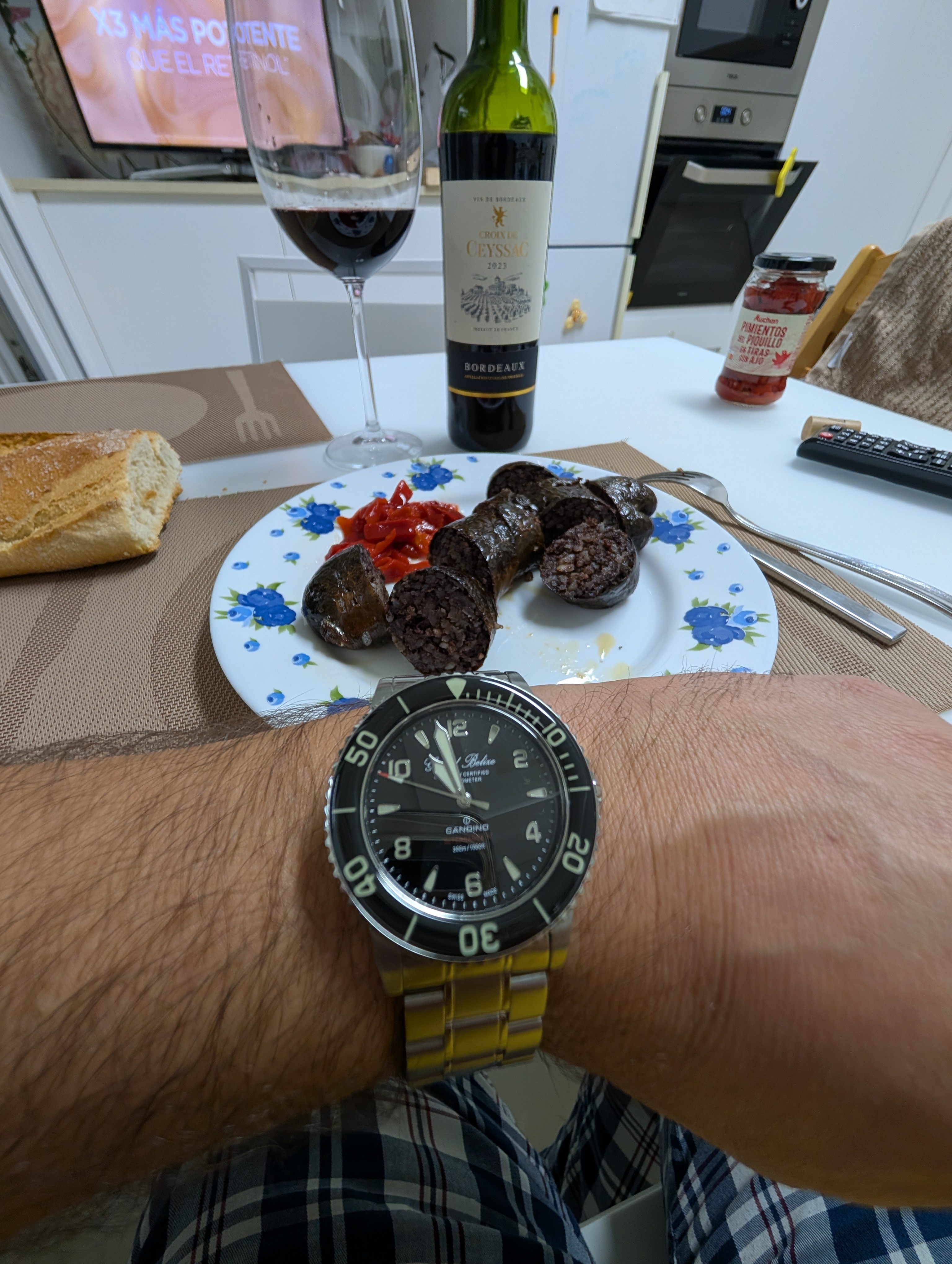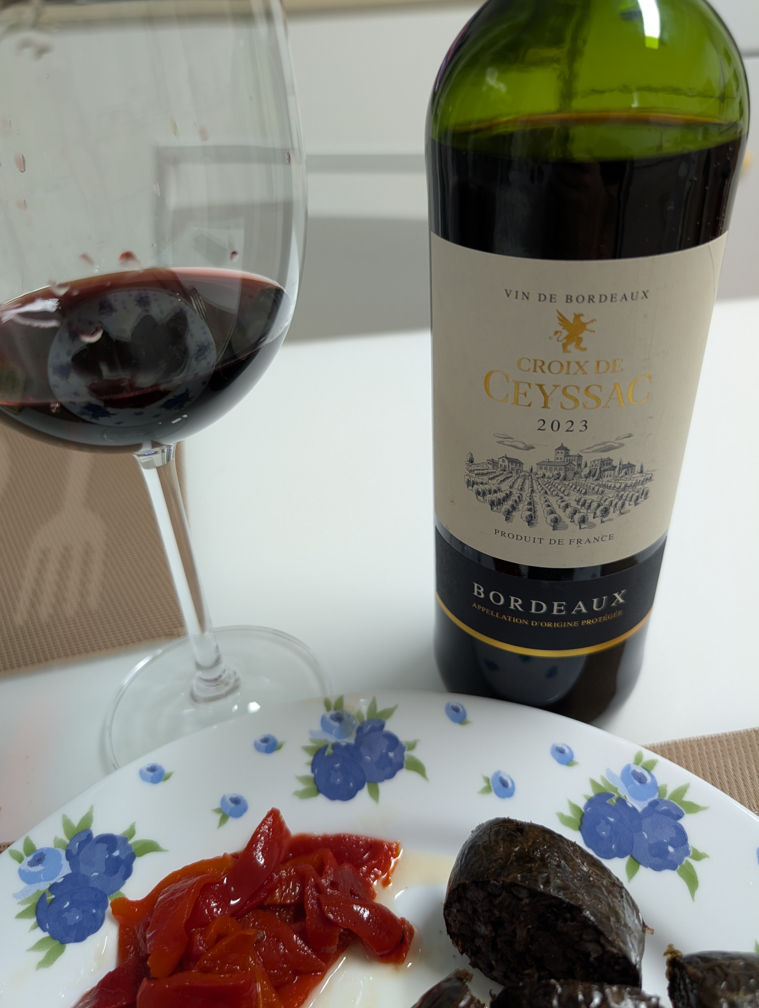 Muy buena combinación. El vino, la morcilla de Burgos, y los pimientos.
