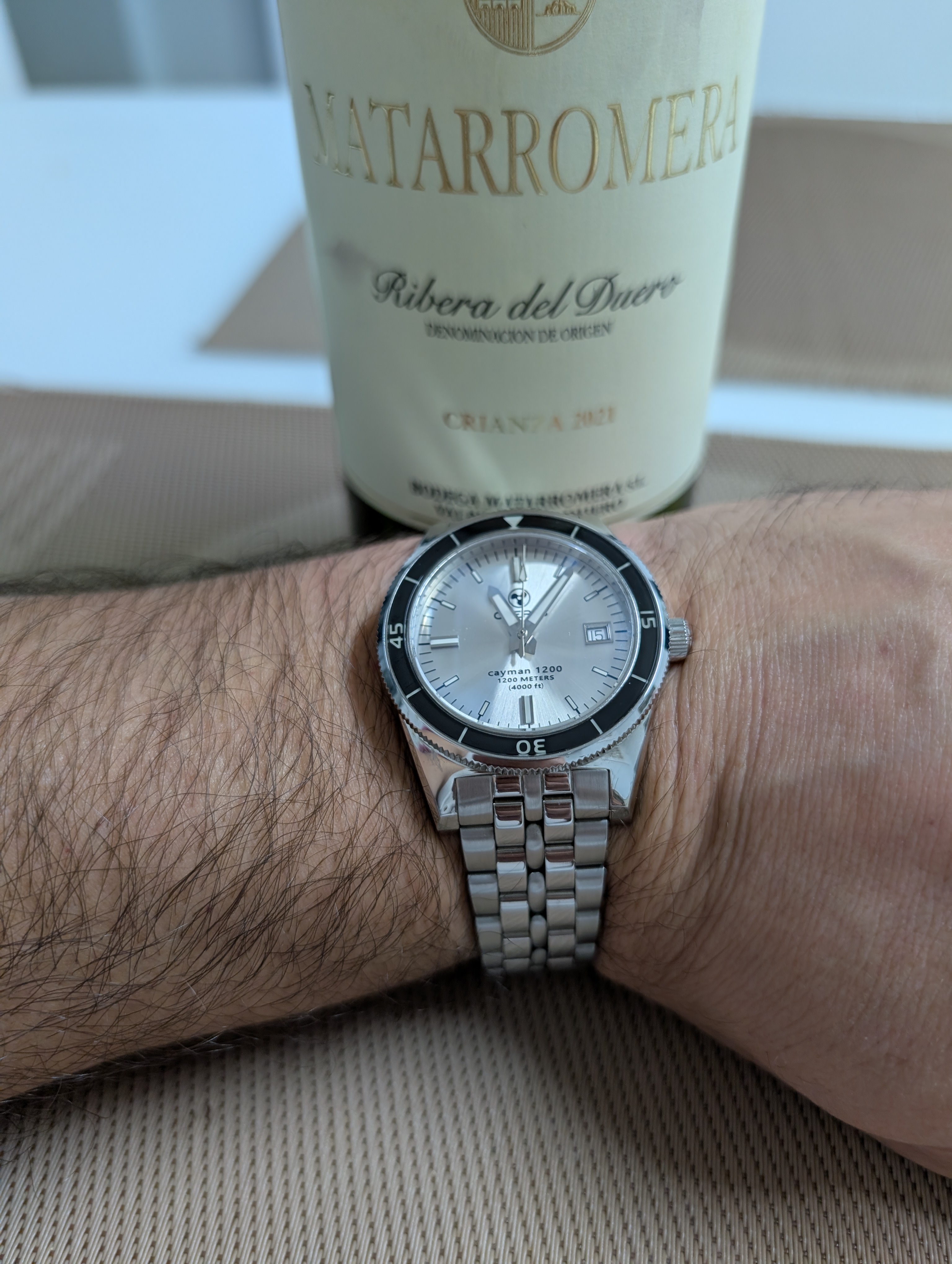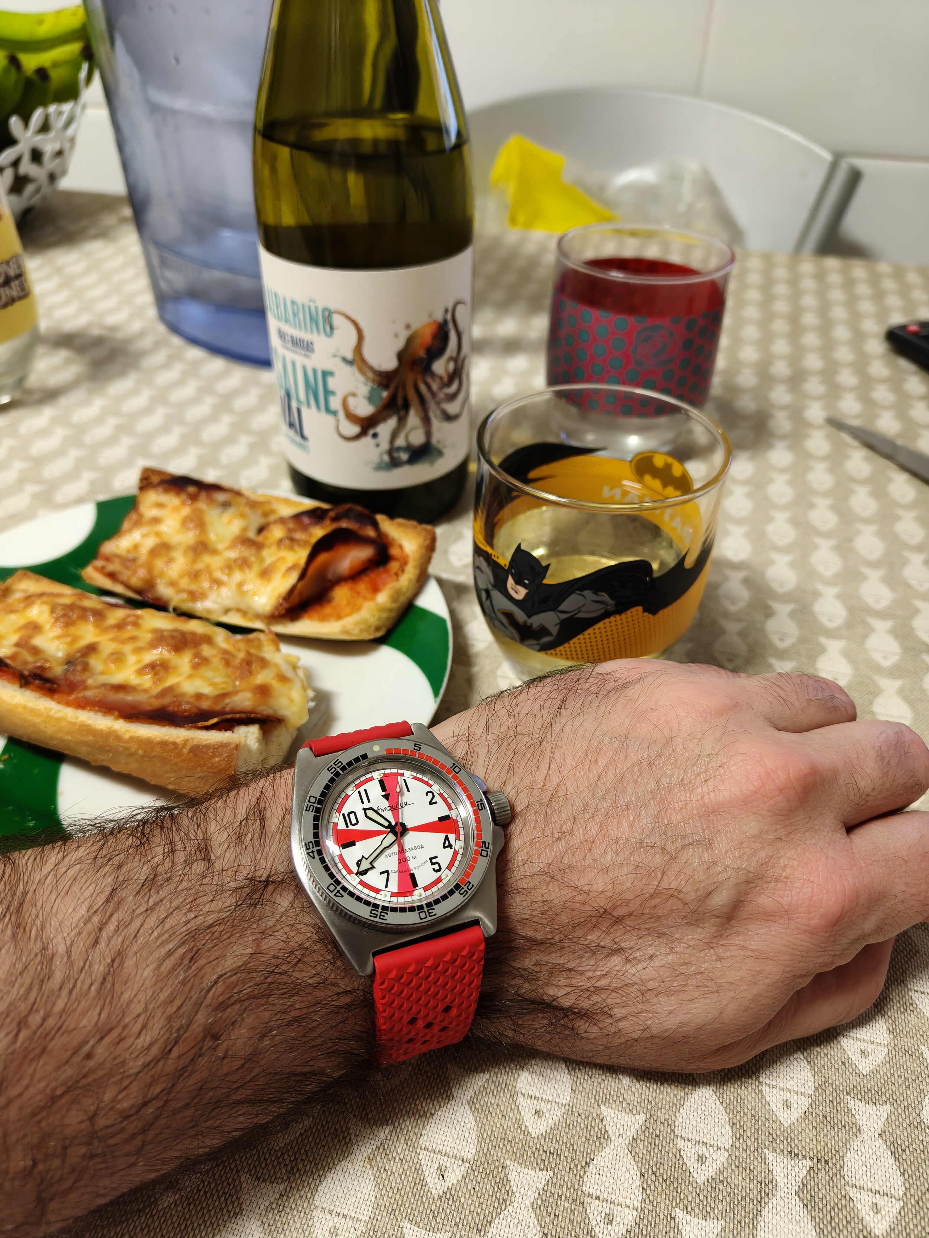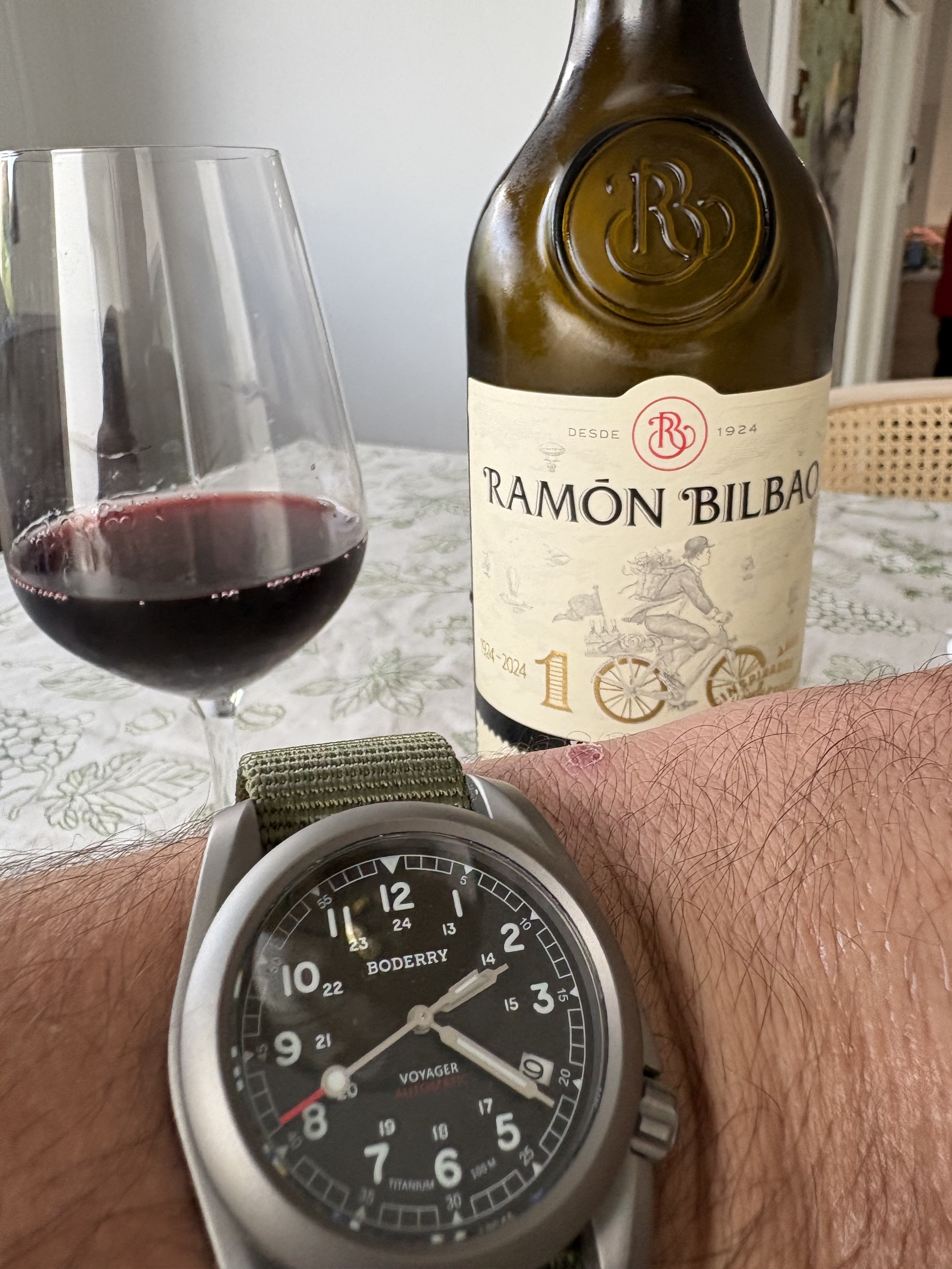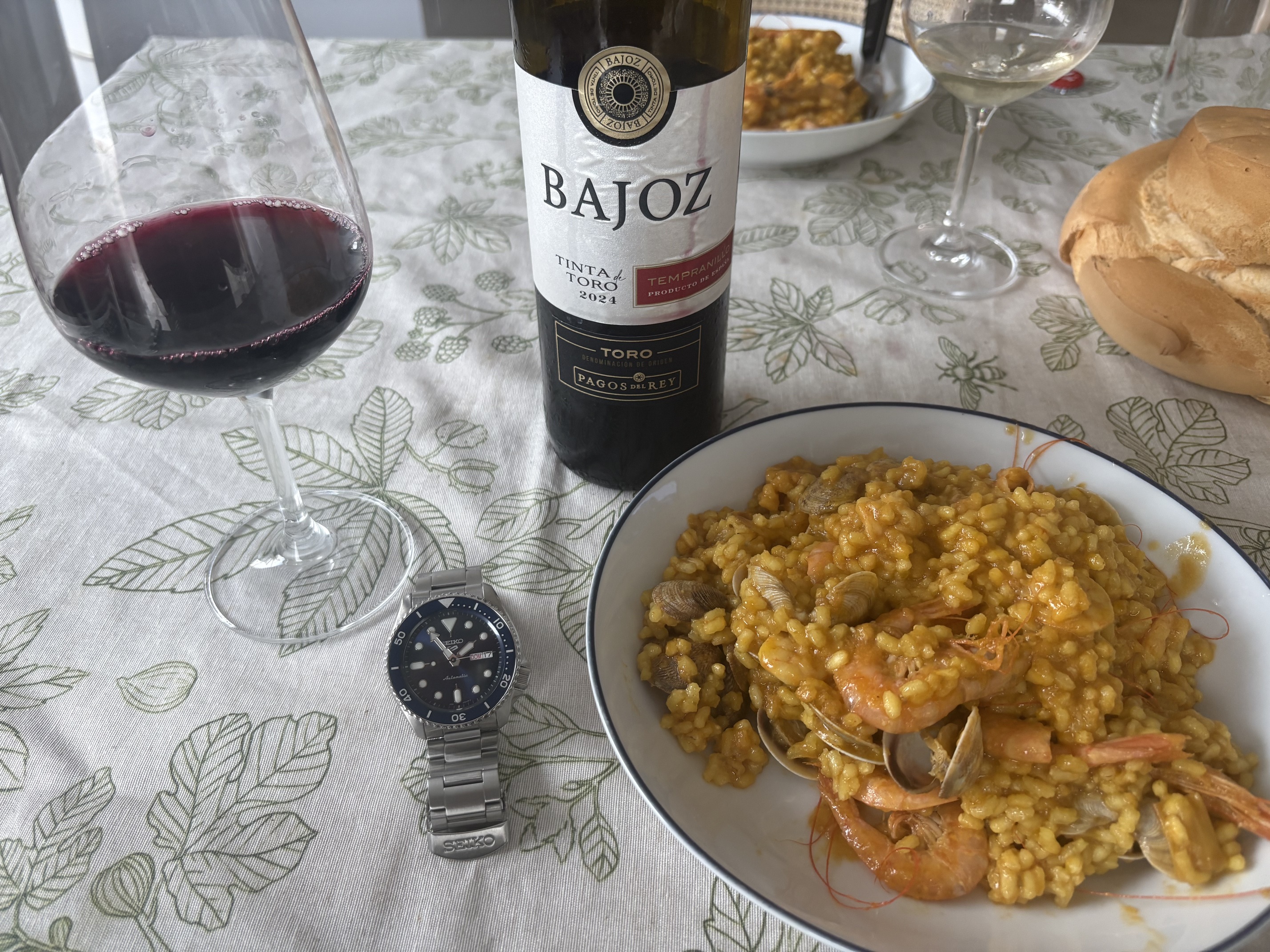 Un Bajoz, Tinta de Toro muy económico y muy agradable para el diario, Un arroz hecho en casa y el reloj es lo de menos