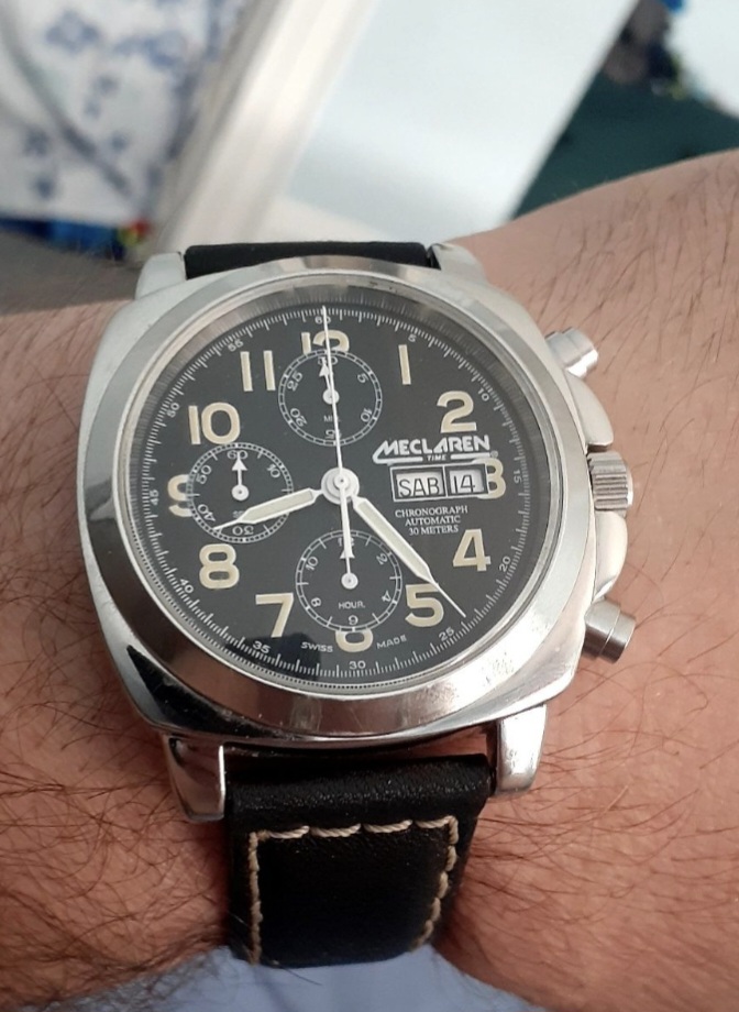 Trasteando por “interné” encontré un “Zenos” en español, también un “Raidillón” de Bélgica y hasta un “MecLaren”. Como curiosidad todos éstos con la misma caja (ahora que nadie nos oye… yo tengo una de esas cajas cuadradas puestas a mi Hamilton Valjoux 7750 ) ![]()