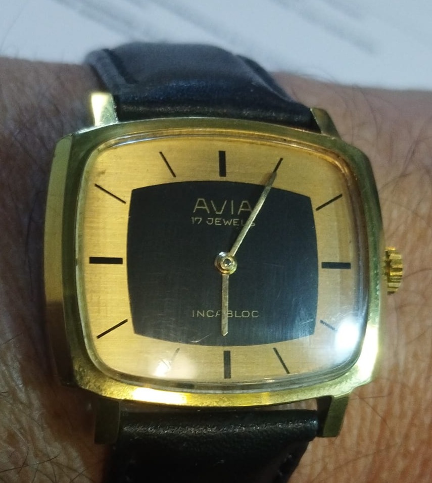 Pues yo, para entretener el mono mientras veo si llega algún BB a la relojería, he matado el mono con compras mínimas en ebay, un relojito de mujer pequeño y precioso para mi sobrina, en Ucrania por 30€, y este precioso reloj vintage de cuerda, llegado de Inglaterra por 60€, que para mí es un ejemplo de cómo ha de ser un reloj más o menos cuadrado de vestir, 33*28 de caja y 7 mm de alto. Iba también para mi sobrina, pero invernará en mi caja, luego ya veremos.