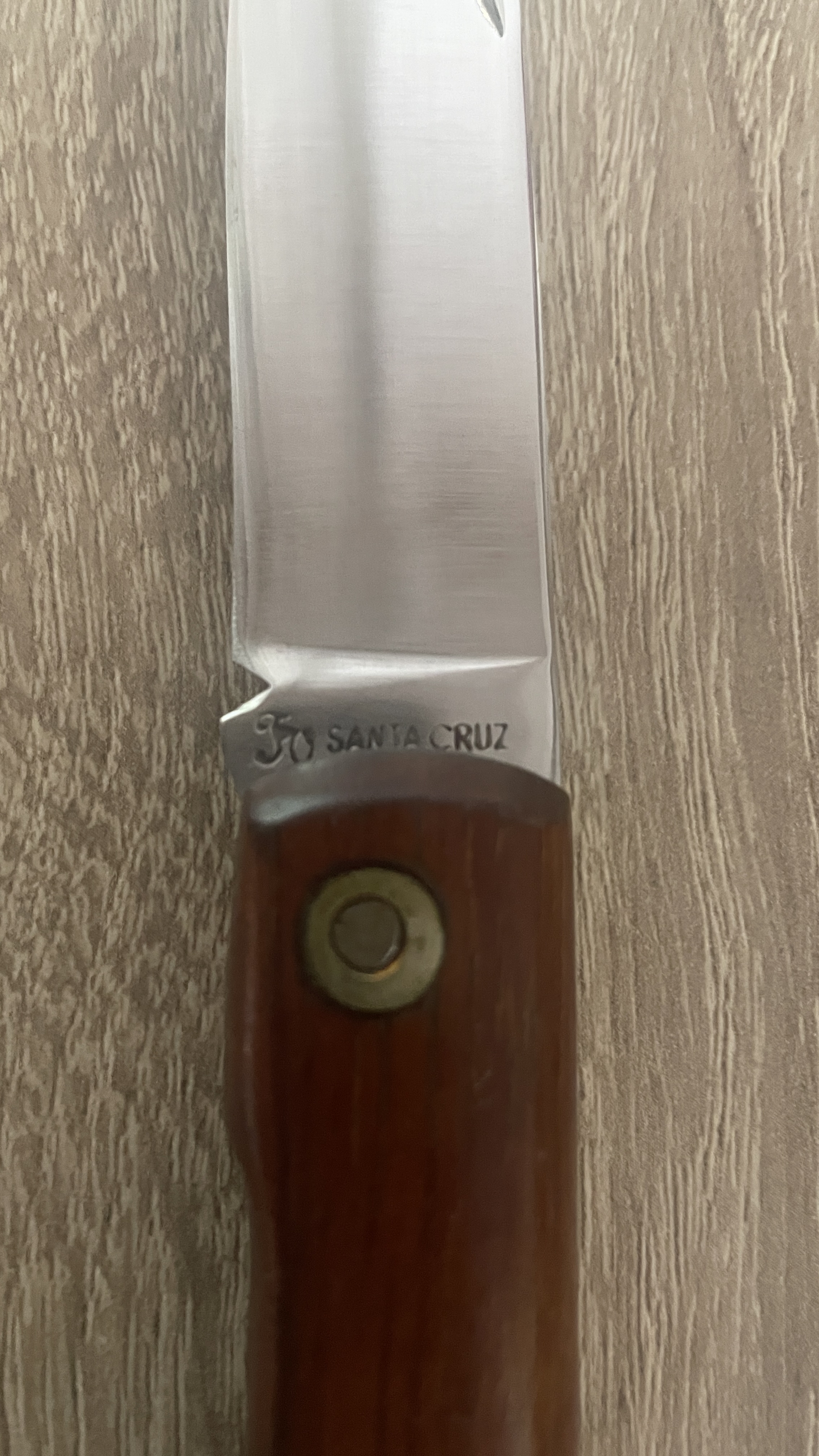 Hoja de acero inoxidable de 9cm, grosor 2,5mm. Mango de madera de bubinga de 11,5.