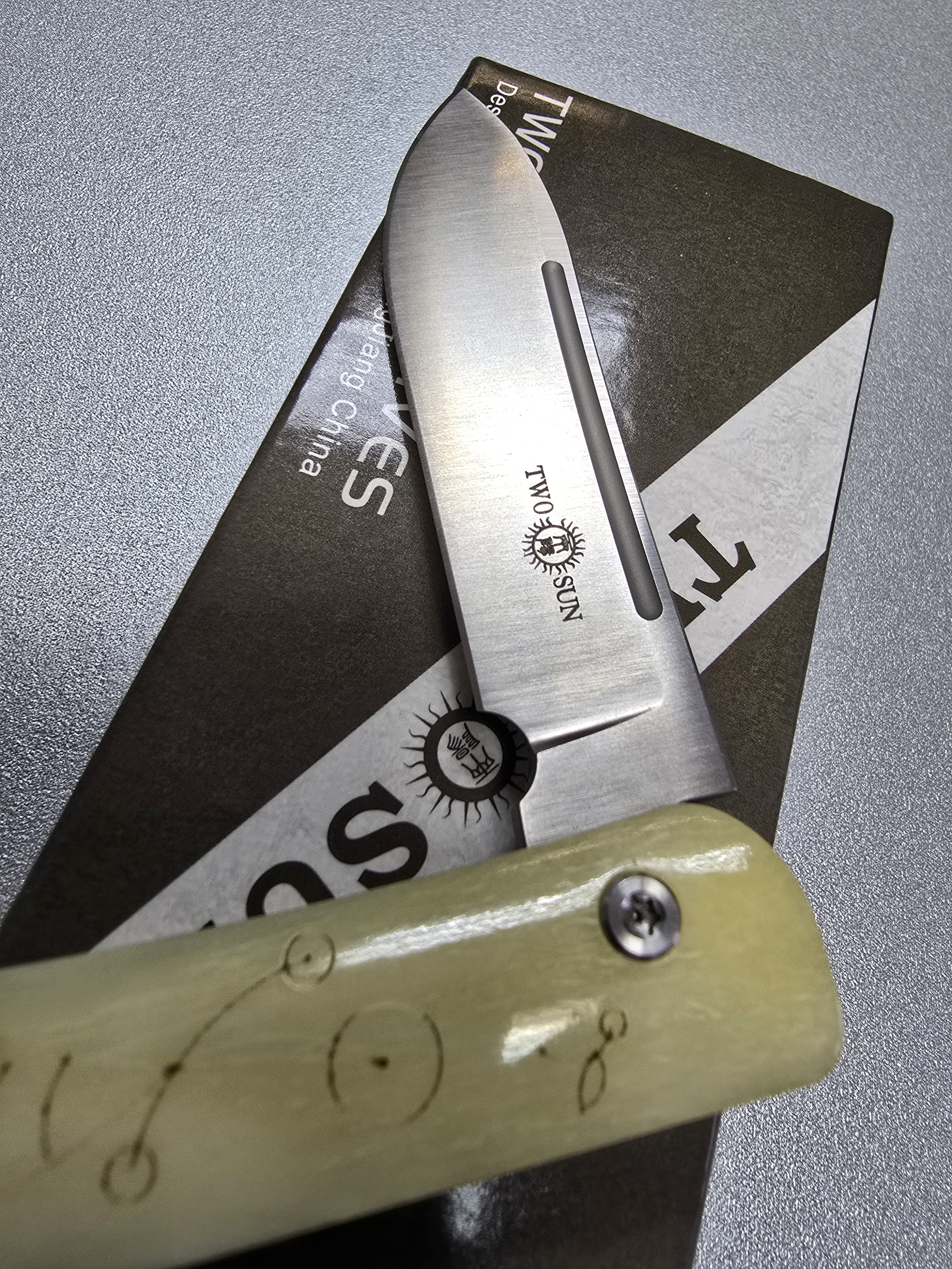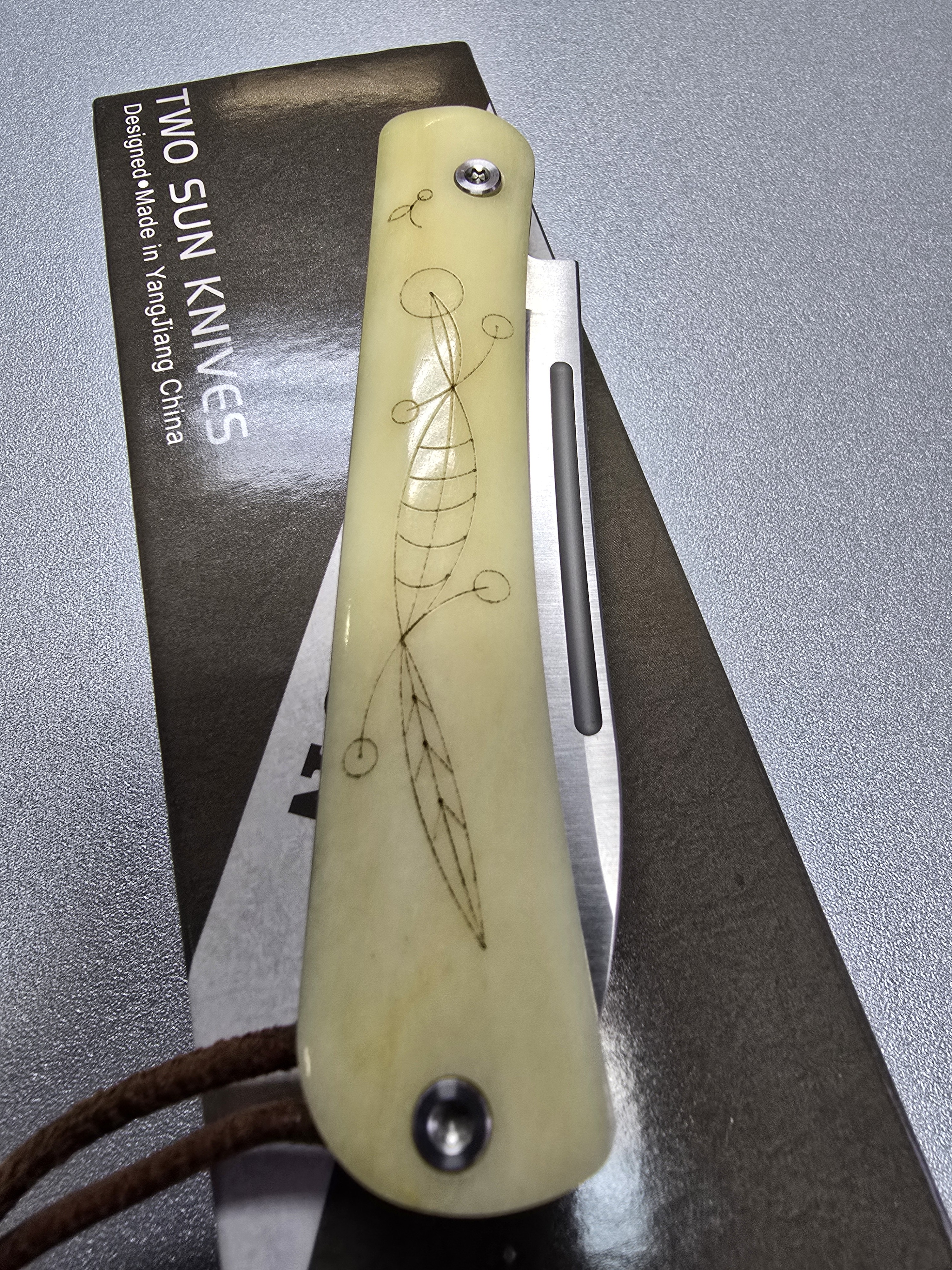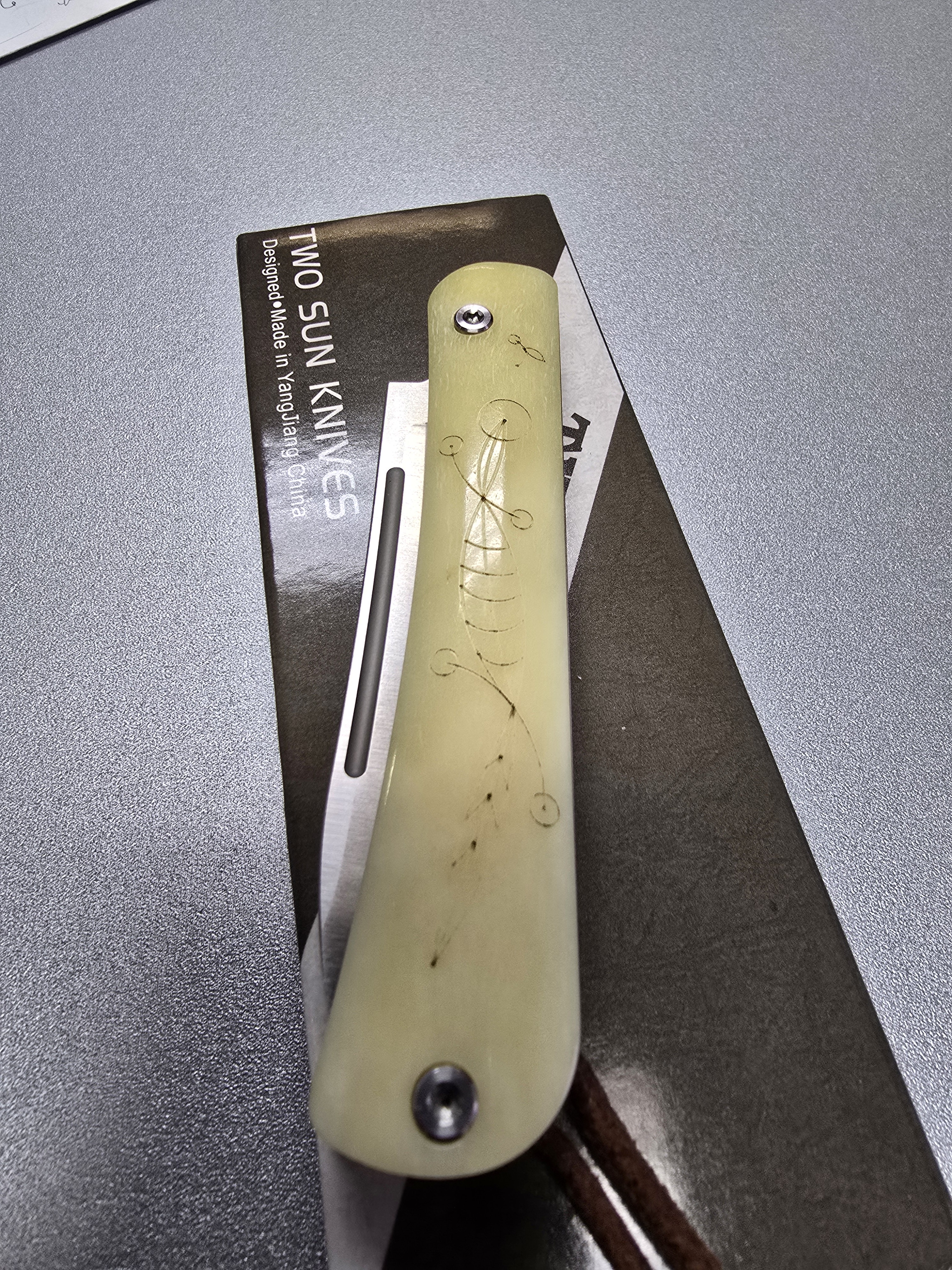Vendo esta bonita y elegante navaja bolsillera, acero M390, forros de titanio, cachas de hueso de camello decorados, caja, jamás usada, tiene un filo que te podrías afeitar con ella, espectacular, 80€ con envío incluido por inpost, también cambio por armis strapcode para seiko MM.