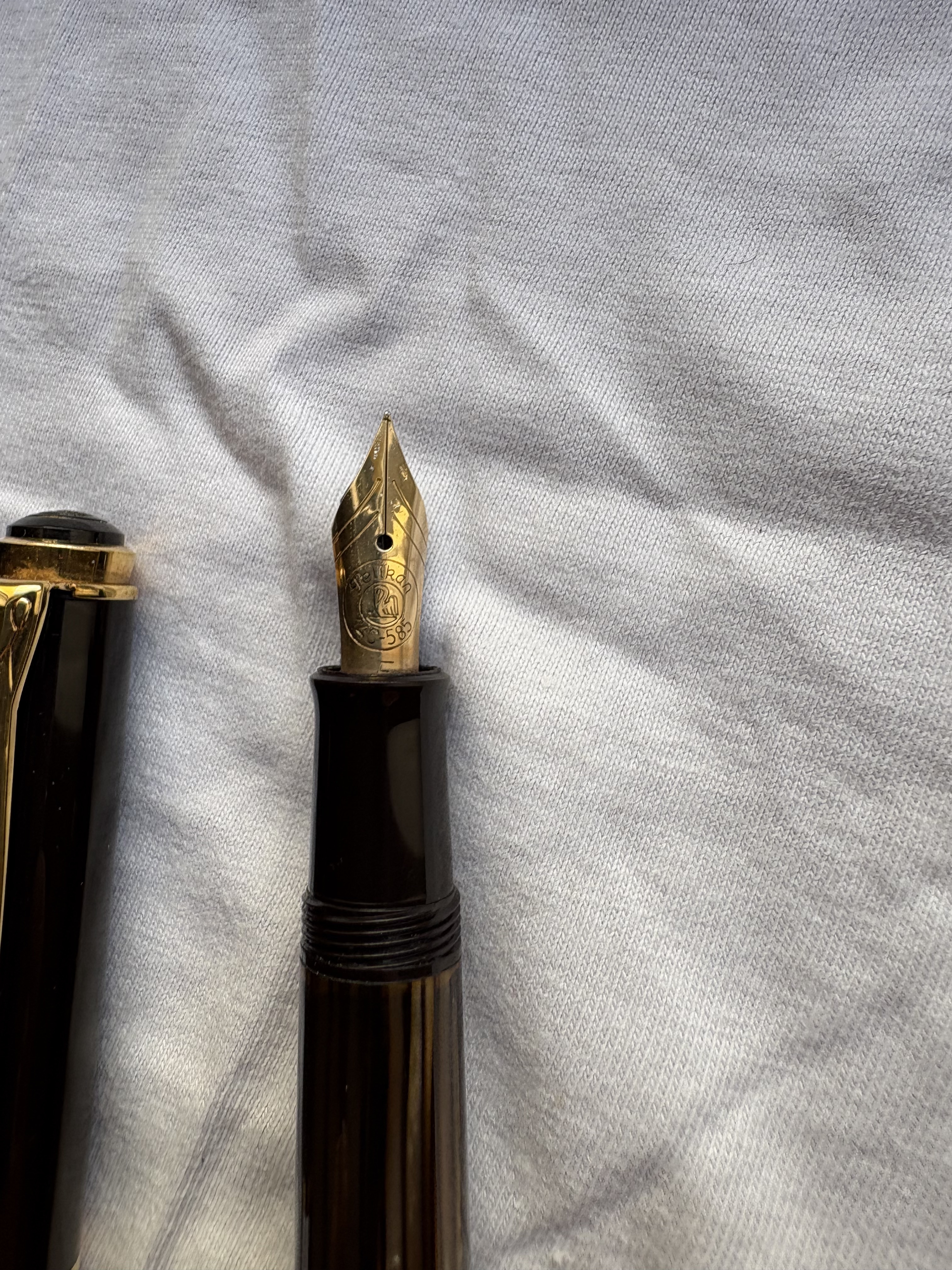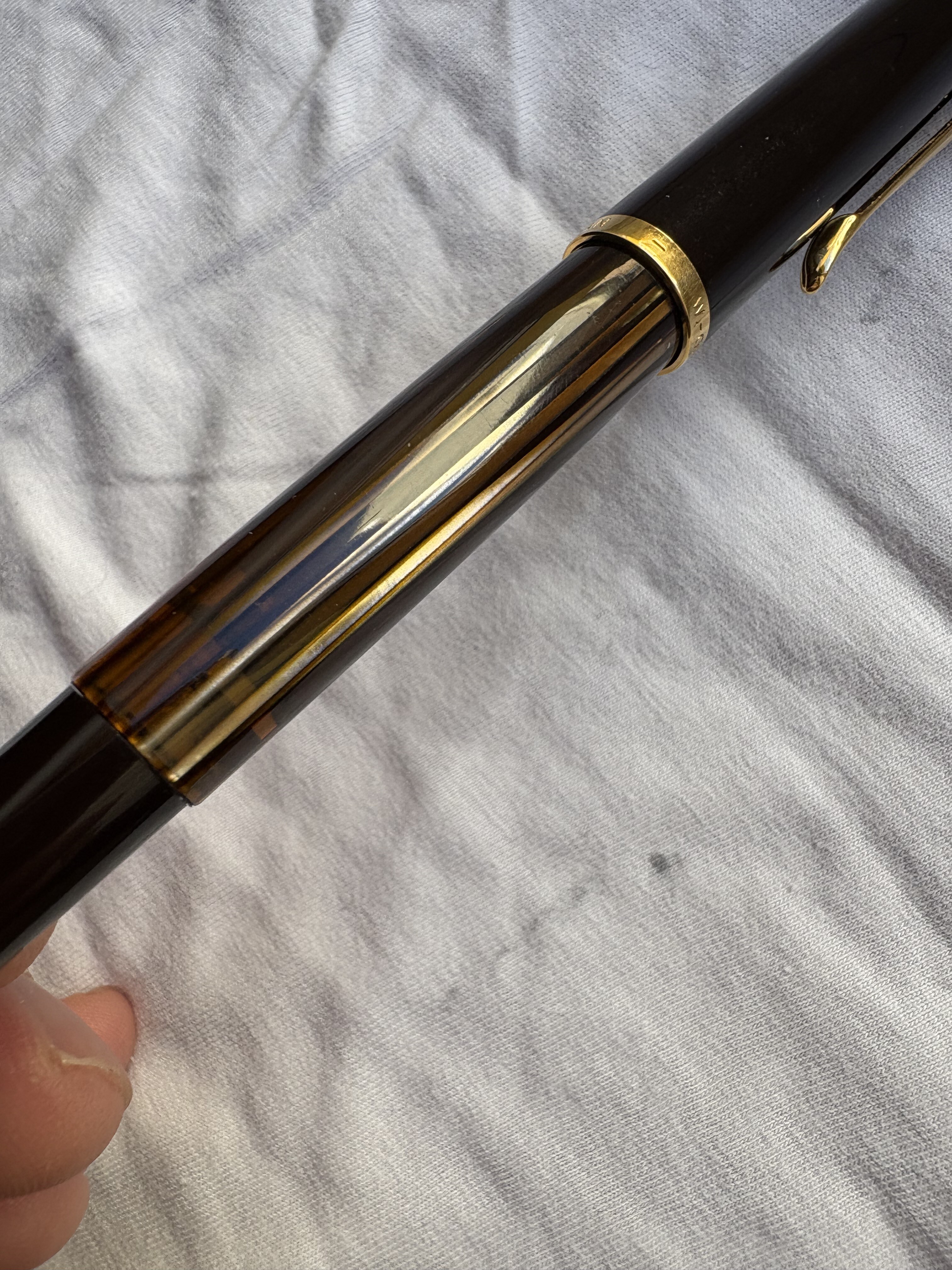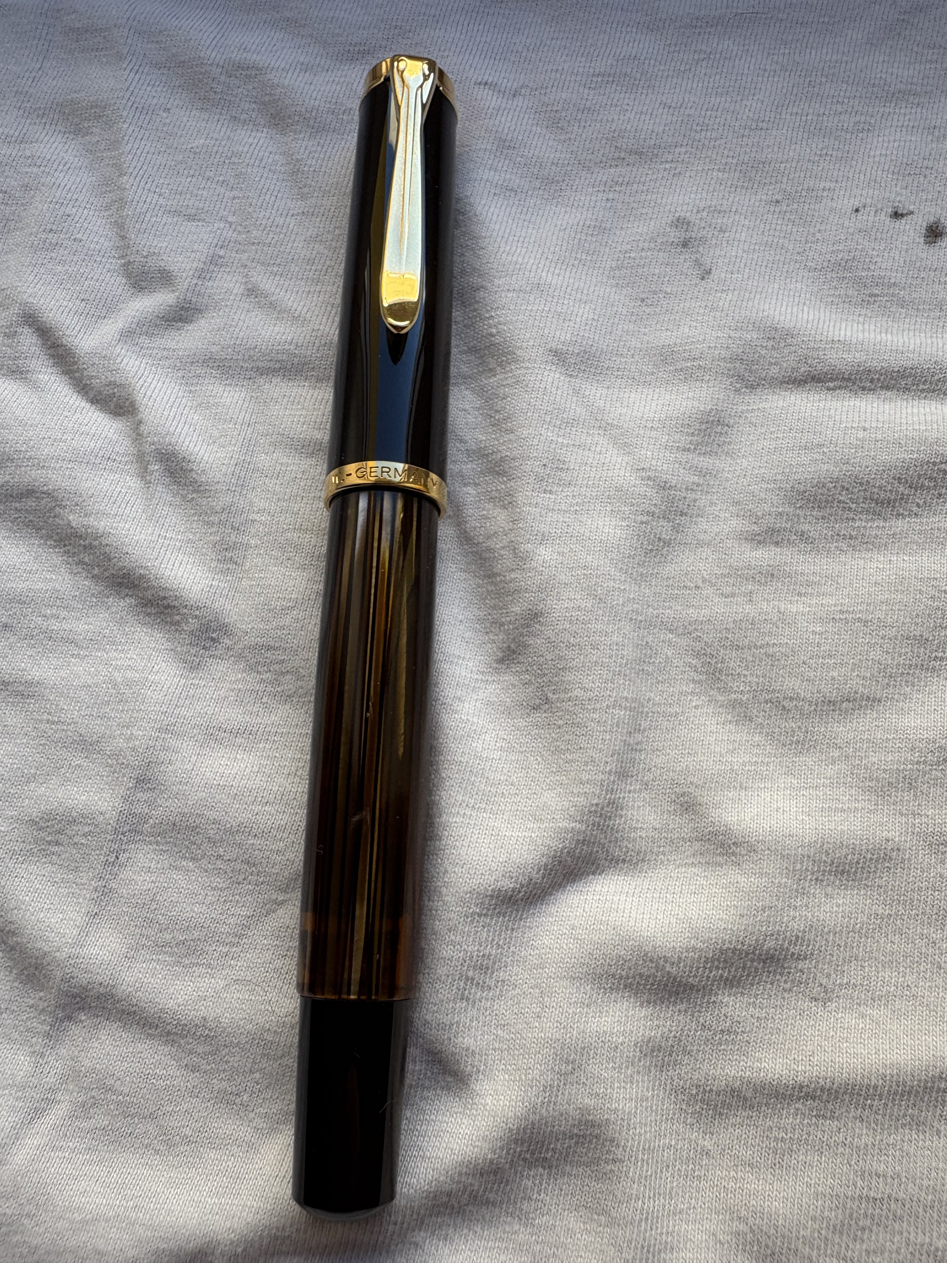 La siguiente es una Pelikan MN400 Tortoise Brown en buen estado, en un plumín Flex punto F. Precio……..165€ envío incluido por Correos, envío certificado. Unas fotos: