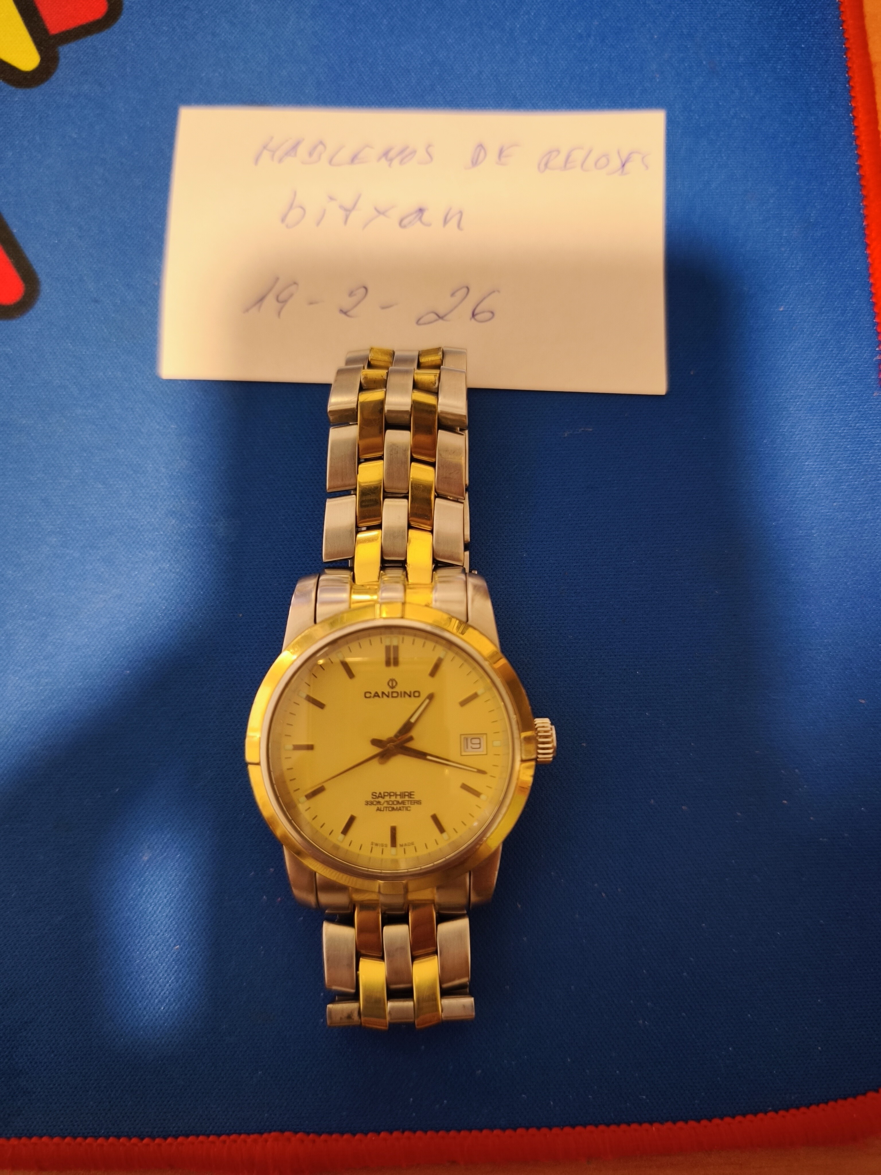 Vendo Candino automatico con calibre eta 2824-2 con parada de segundero, cristal de zafiro abombado, corona personalizada Candino WR 100m con fondo visto, medida de la caja 38mm corona excluida, armis apto para muñecas de 19 cm y asa de 20mm endlinks macizos precio 195€ y envio a tratar con interesado.