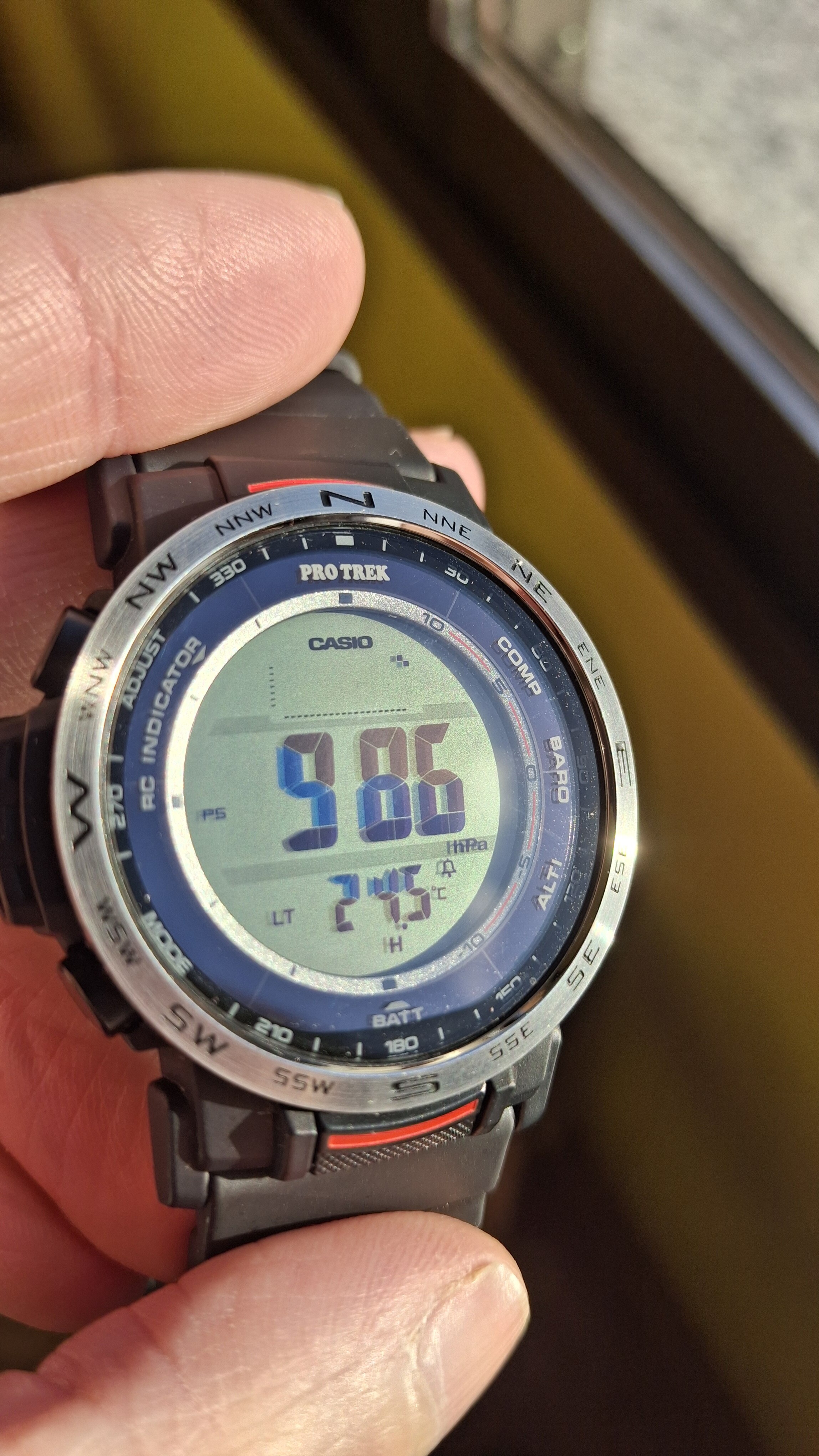Tienes las conocidas funciones de Casio (Crono, cuenta antras, alarmas…etc) más las propias de los Pro Trek (Brújula, altímetro, barómetro, termómetro, salida y puesta de sol…etc) con varias subfunciones.