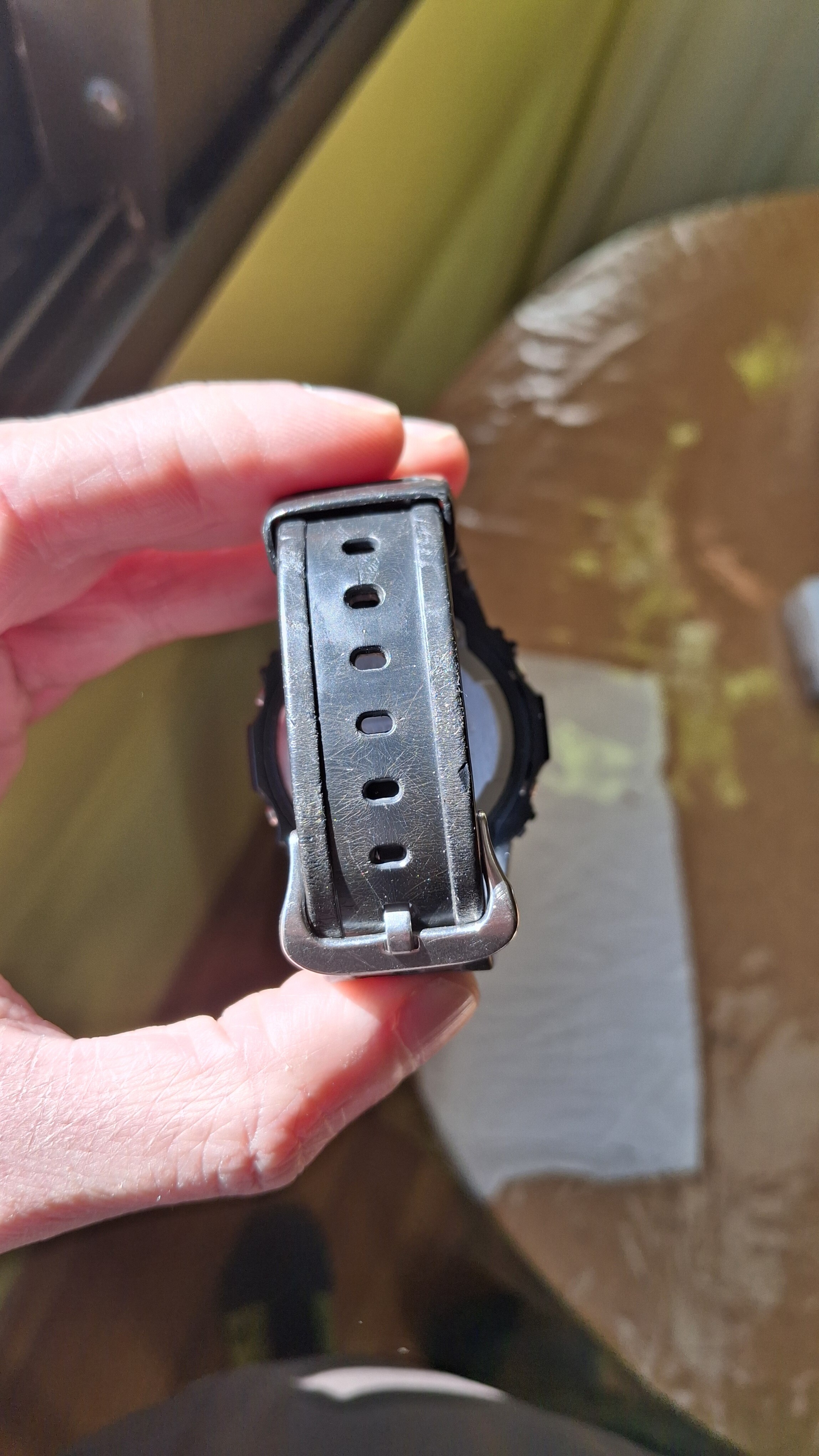 Vendo por no usar y prácticamente de reestreno (apenas dos o tres puestas desde 2024, aunque siempre expuesto a la luz para que cargue). No tiene marcas visibles en caja o bisel, salvo las manchas de la correa.