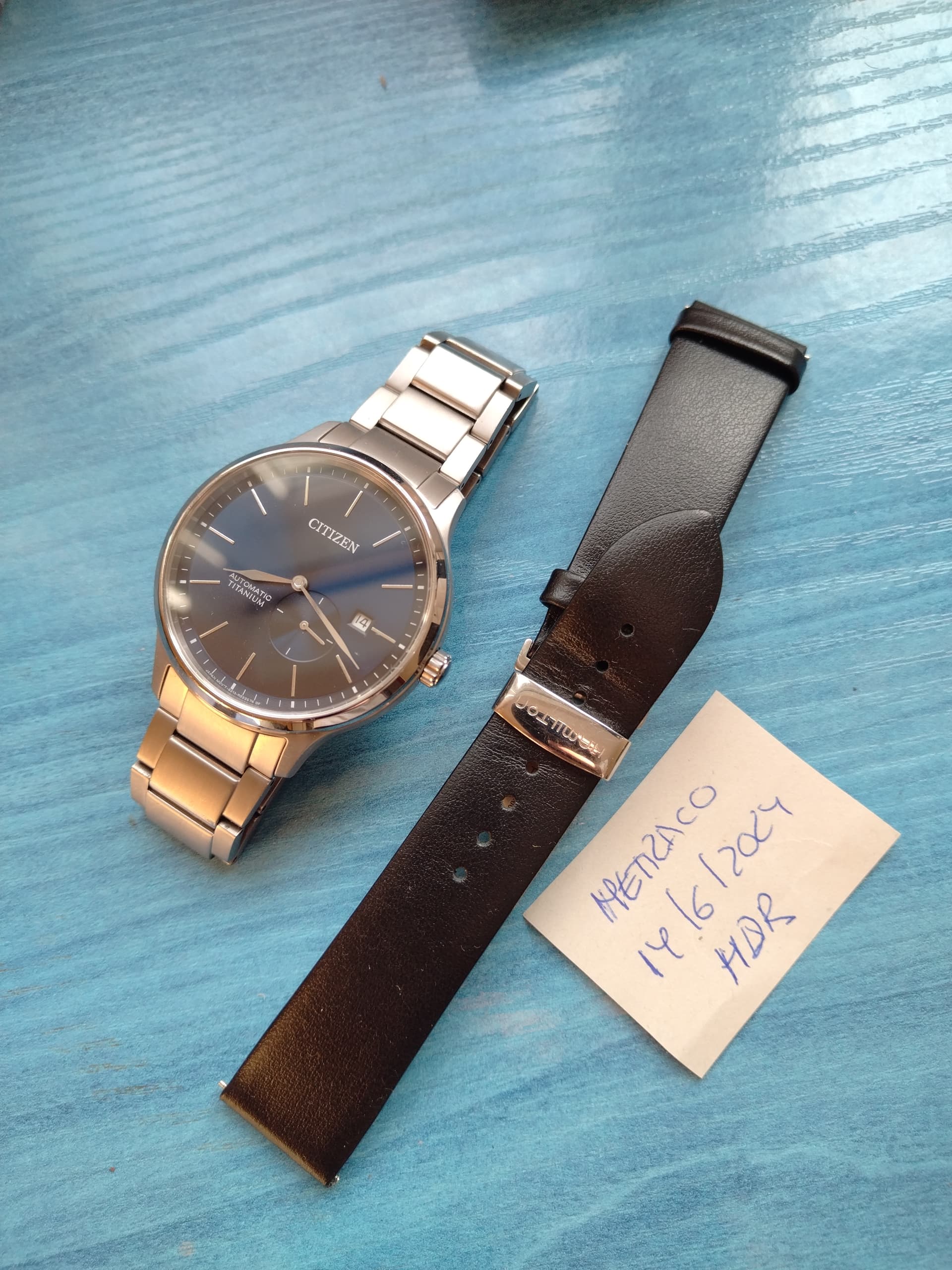 Sólo se entrega reloj con armis completo y una correa hirstch con deployante Hamilton que le queda genial. Su dial es de un azul tornasolado que varía según incide la luz…una preciosidad.