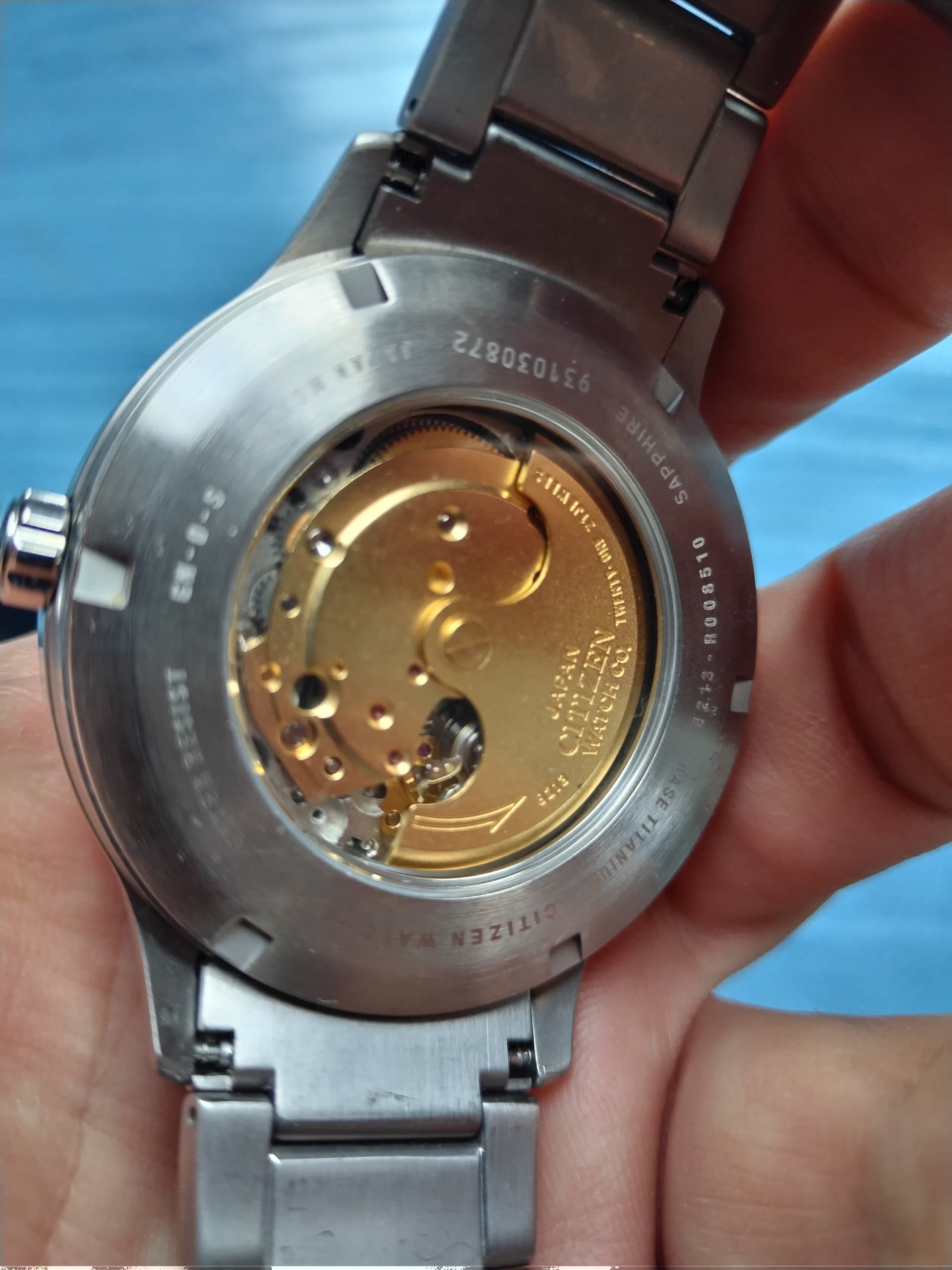 Lleve cristal de zafiro con fondo visto,está construido en super Titanium de citizen mecho más resistente y monta una máquina citizen 8213. Su tamaño es de 42mm.