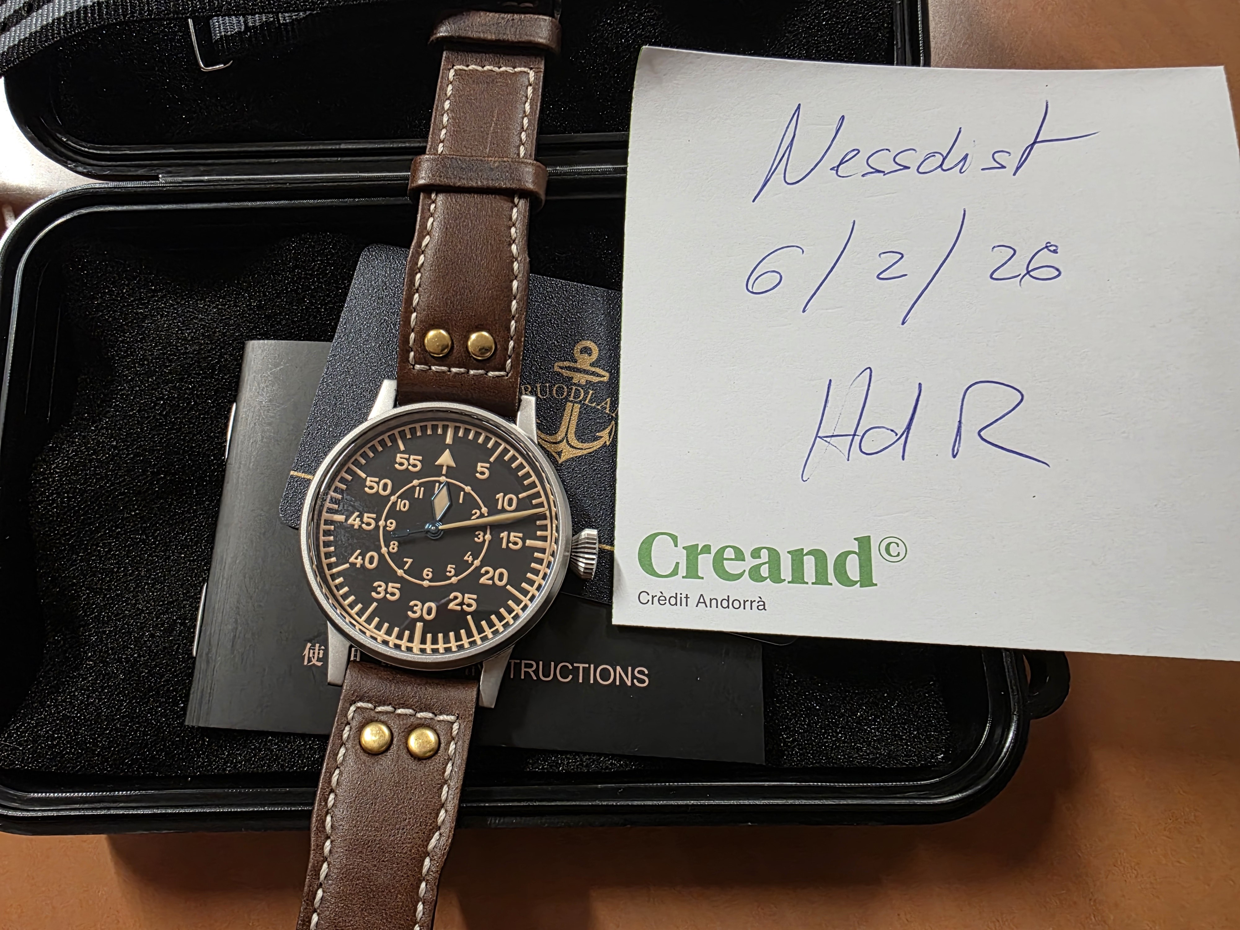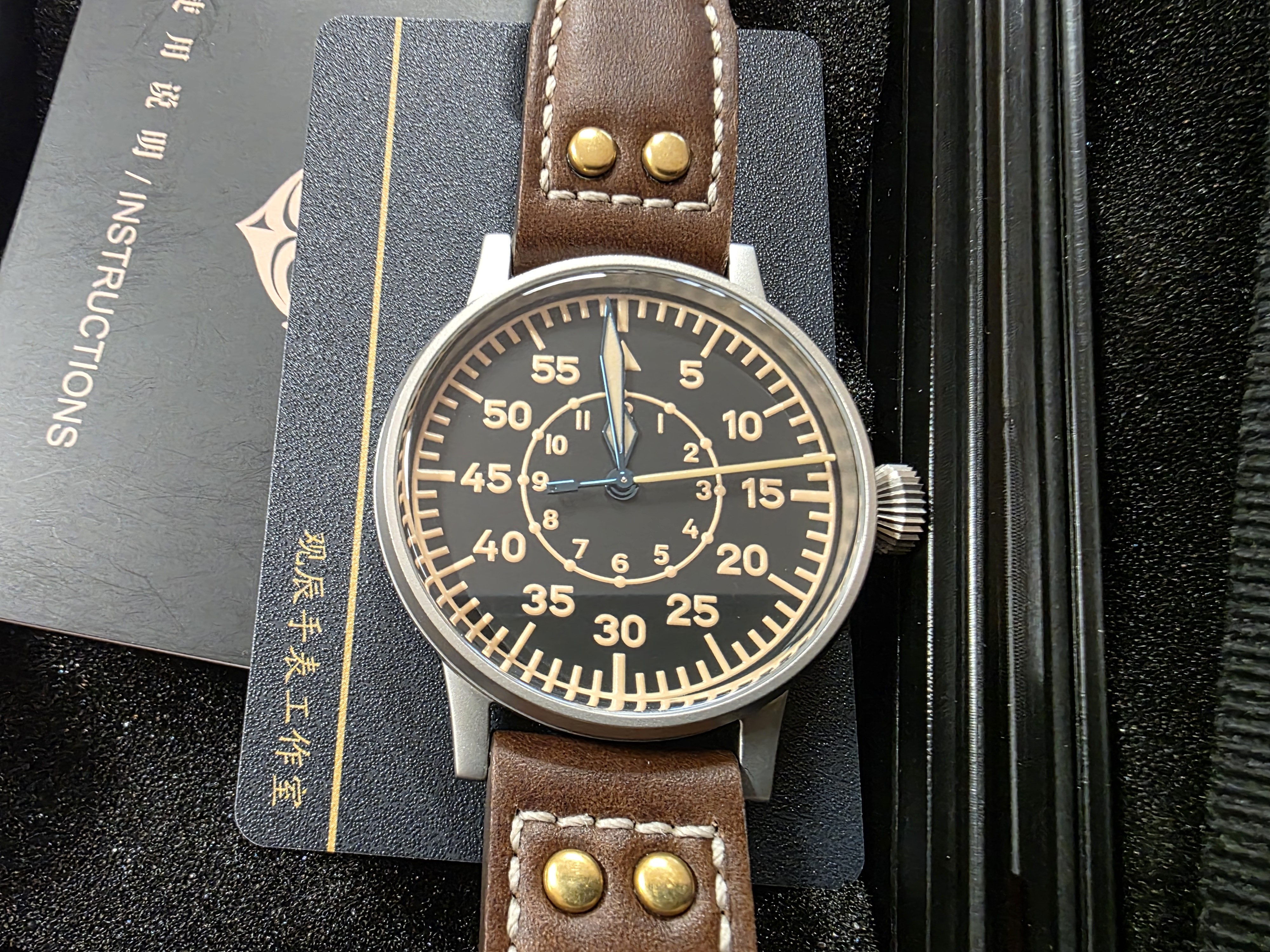 A la venta este flieger B con muy poco uso, que “homenajea " a los Laco Original de 42mm. Tiene tres puestas mal contadas y está en muy buen estsdo. Son 42 mm sin corona, zafiro bueno, lumen tremendo, caja arenada muy bien acabada y movimiento PT5000 que anda fantástico