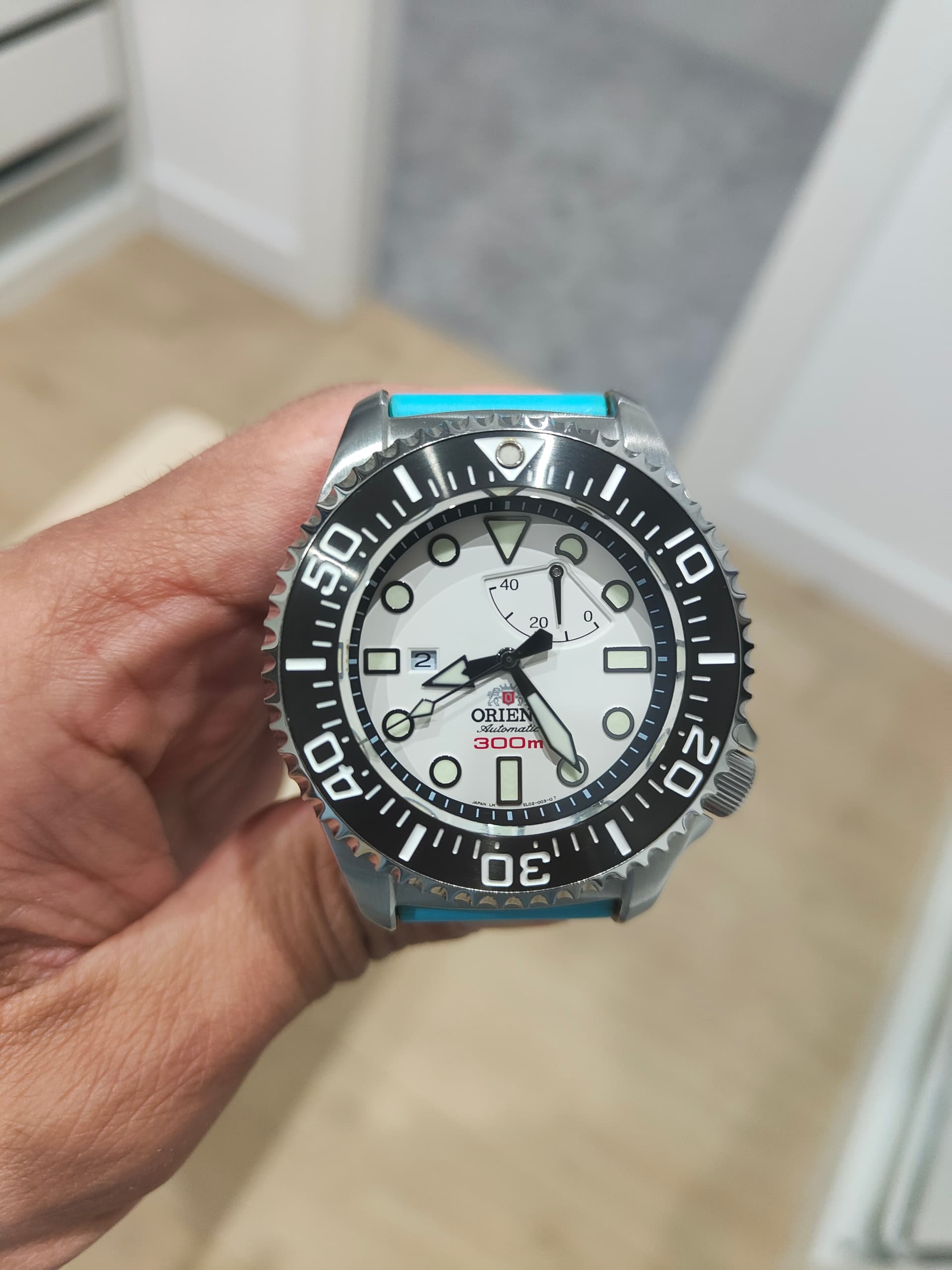 Incluye Brazalete original Armys acero con extensión de buceo y ajuste micrométrico, correa negra original Orient y una blanca extra (la azul que aparece en las fotos no se incluye).