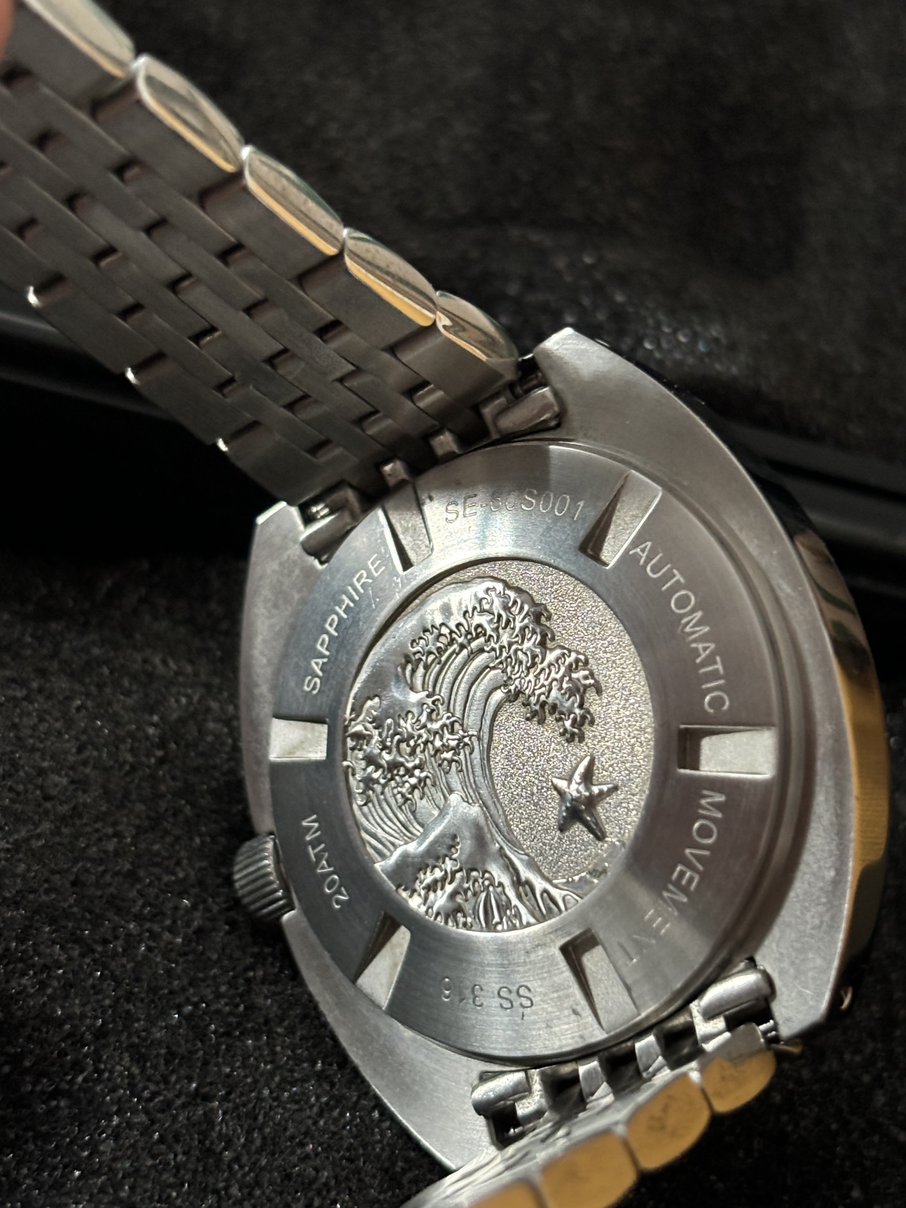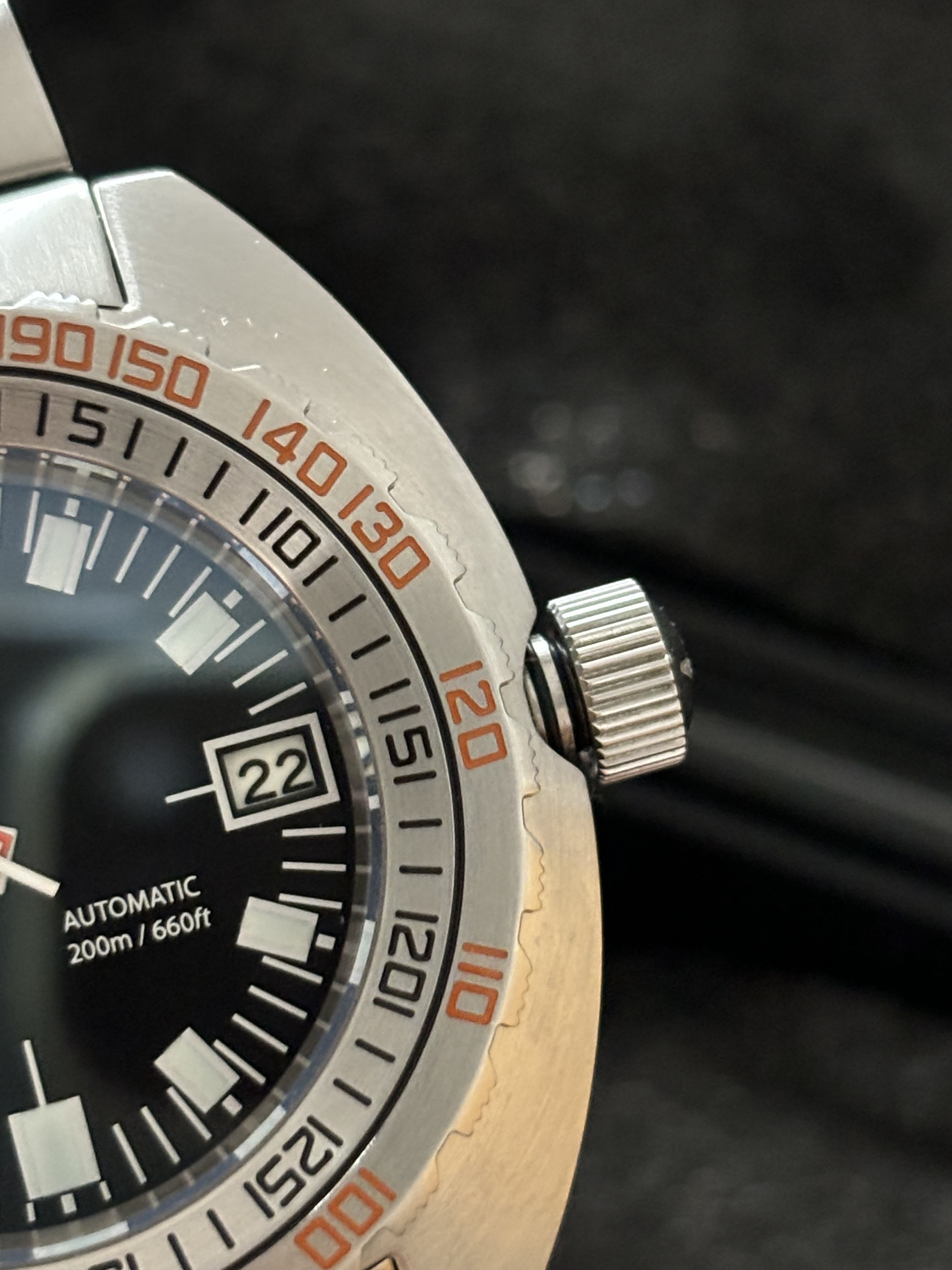 - Bisel giratorio unidireccional con 120 clicks, sin holgura y bien alineado.