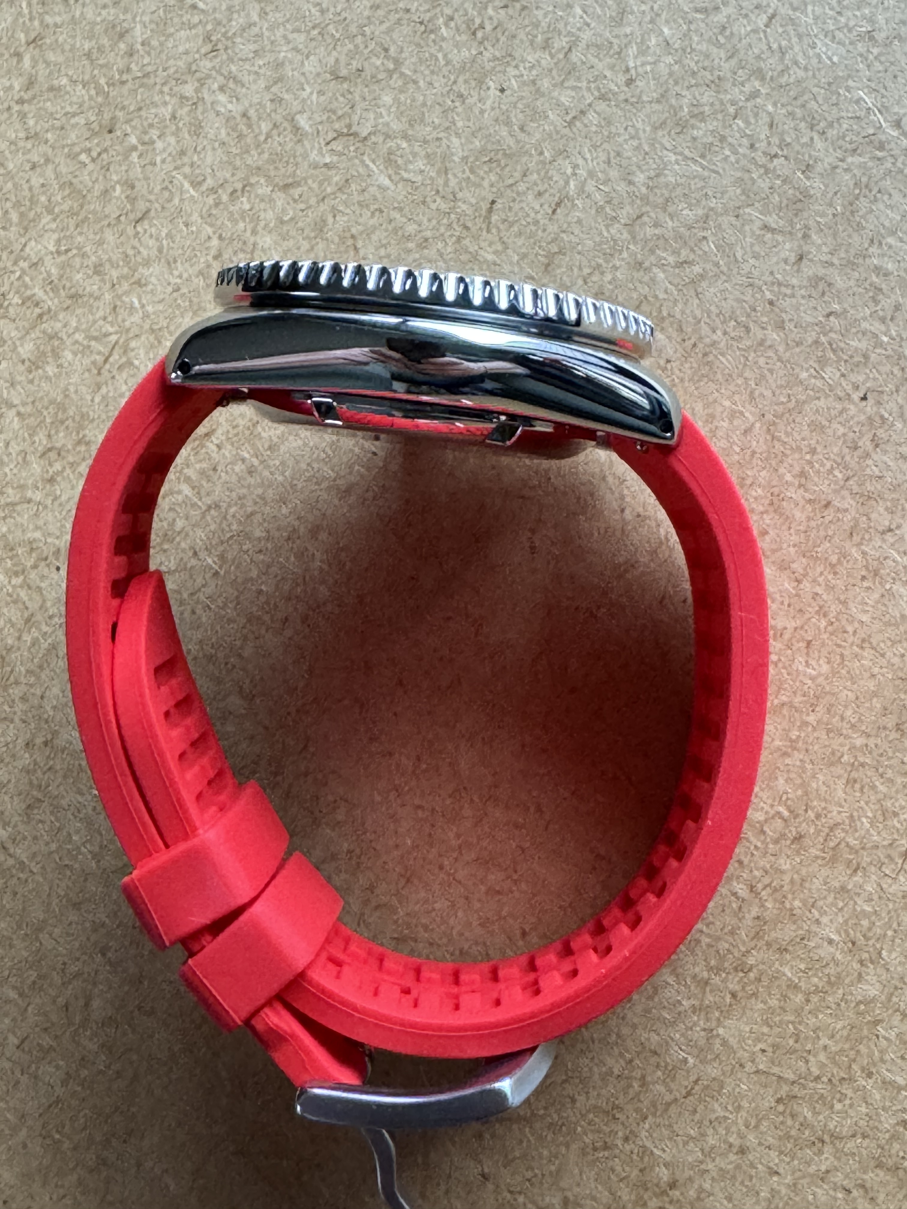Vendo reloj mod montado por mi con las siguientes características: dial y agujas con lumen C3, cristal de zafiro, bisel tipo Coín edge, insert cerámico, caja de acero tipo SKX con corona a las 3:00, corona y trasera roscadas y engrasadas, movimiento automático nh36, probada su inmersión no más allá de una baño en la piscina.