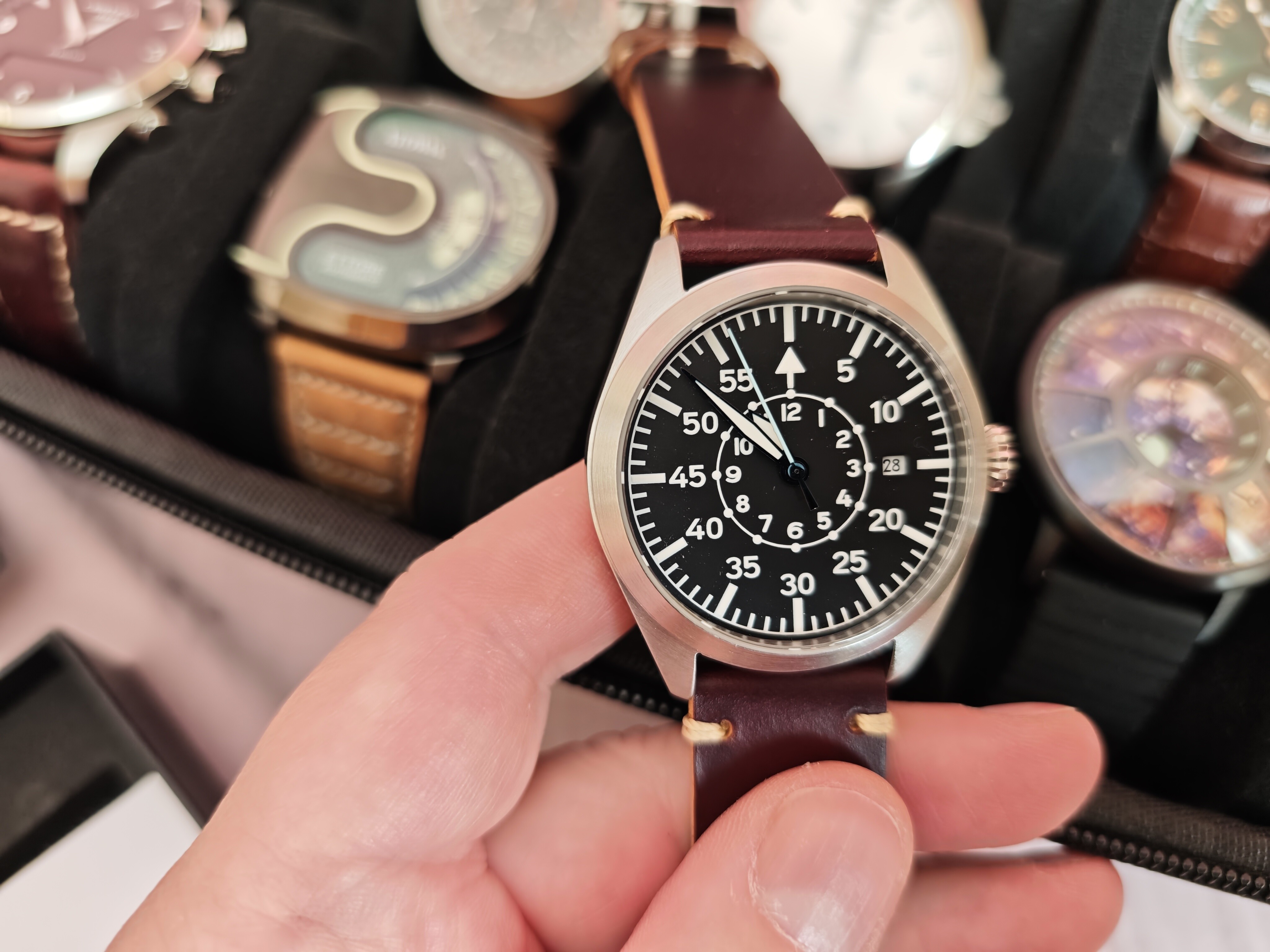 Dalkomm homenaje a Xeric: Una pieza muy peculiar con movimiento Seiko, cristal de zafiro abombado y en la que el lumen es verdaderamente impresionante. 42mm de diámetro por lo que no resulta aparatoso en muñeca. Incluye correa original de goma negra. Comprado el pasado verano.
