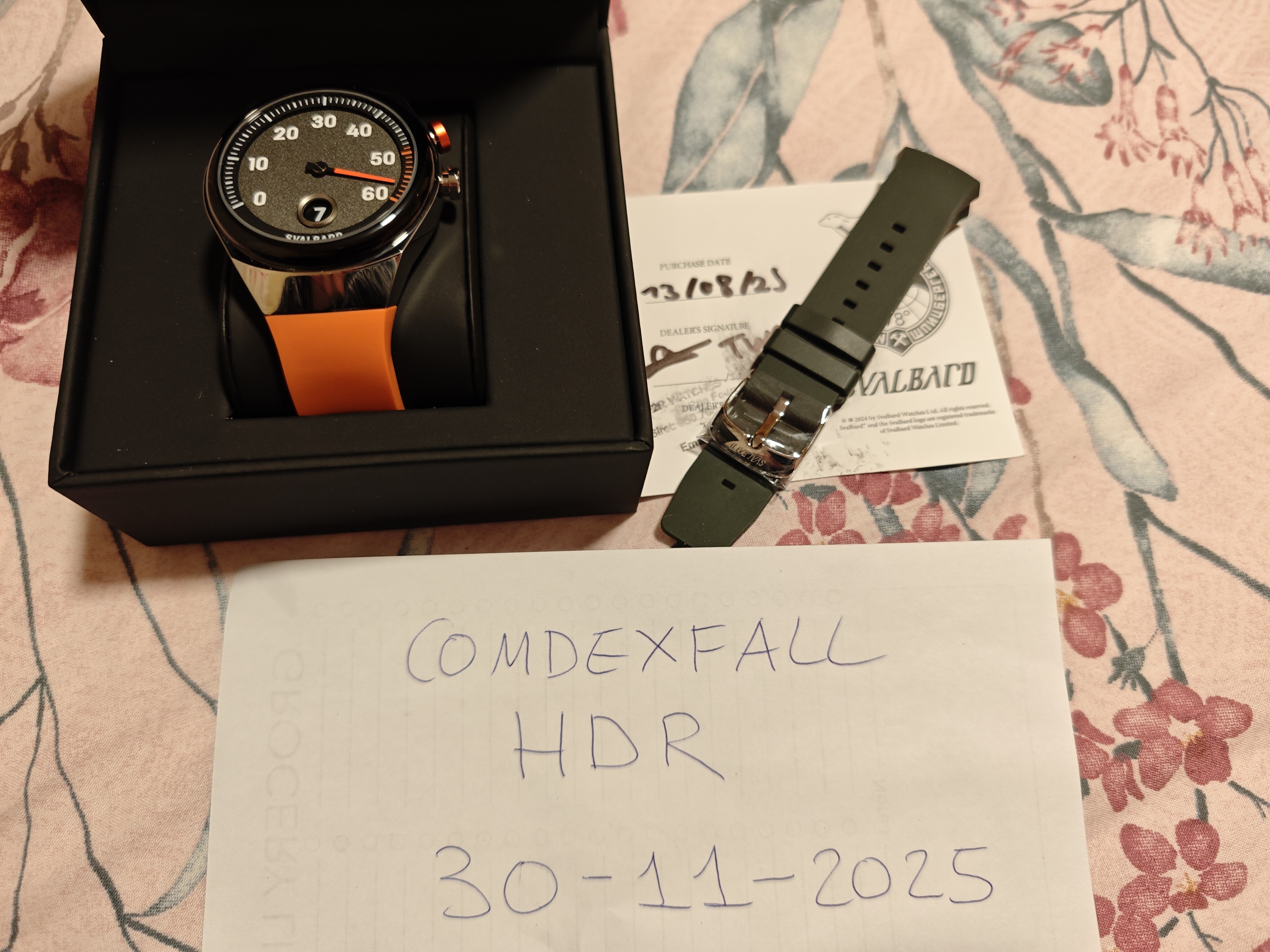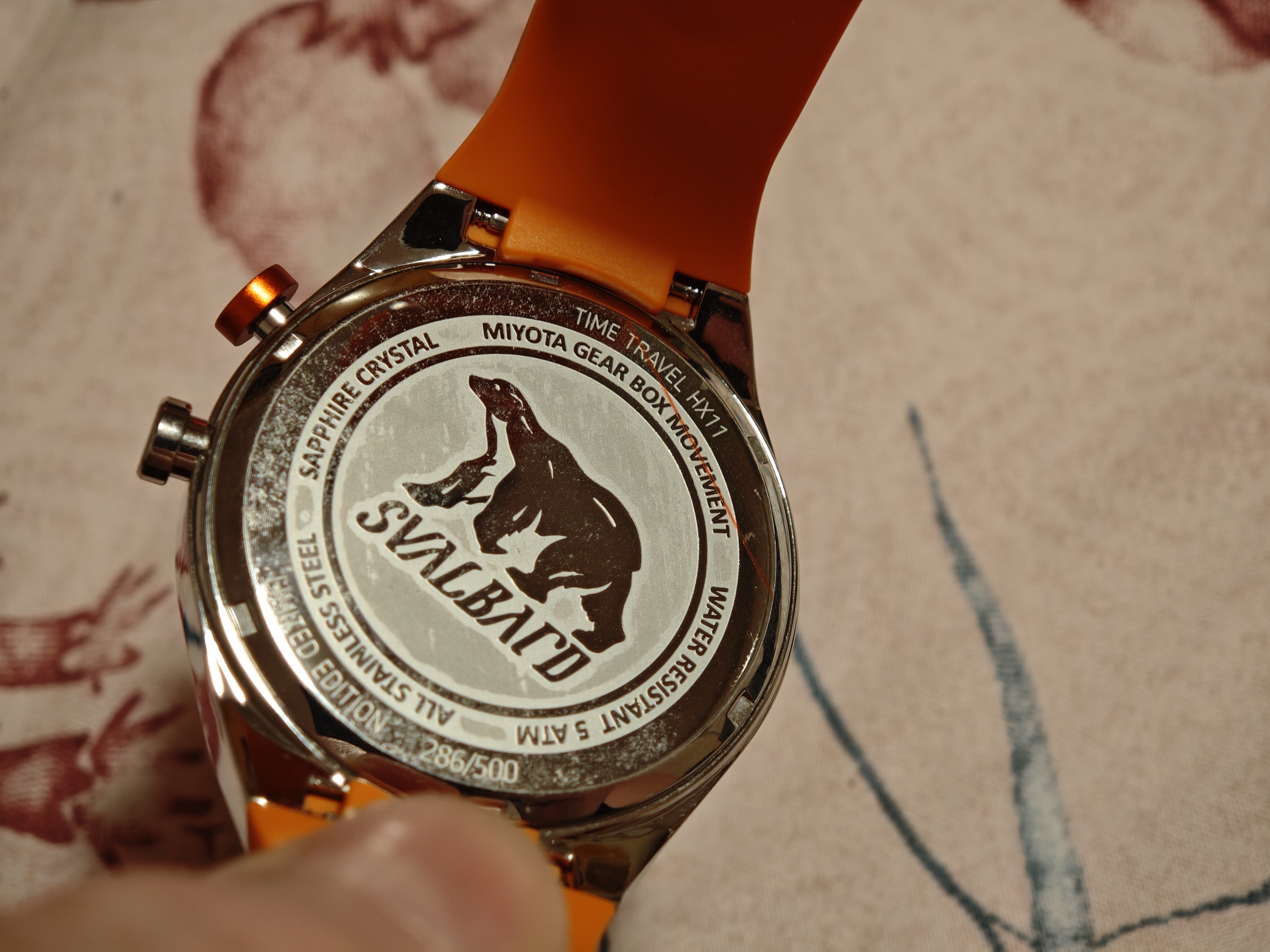 Svalvard con horas saltantes y minutero retrógrado: Un peculiar reloj de cuarzo que, a pesar de su llamativo sistema de leer la hora, destaca por su buena legibilidad. Evoca el cuenta km de cualquier coche deportivo. Caja de 44 mm y cristal de zafiro. Comprado el pasado verano, lo comento porque supongo que la batería estará aún con mucha vida por delante. Incluyo una segunda correa oficial, gris, valorada en 20 €, para darle un aspecto más sobrio si así se desea.