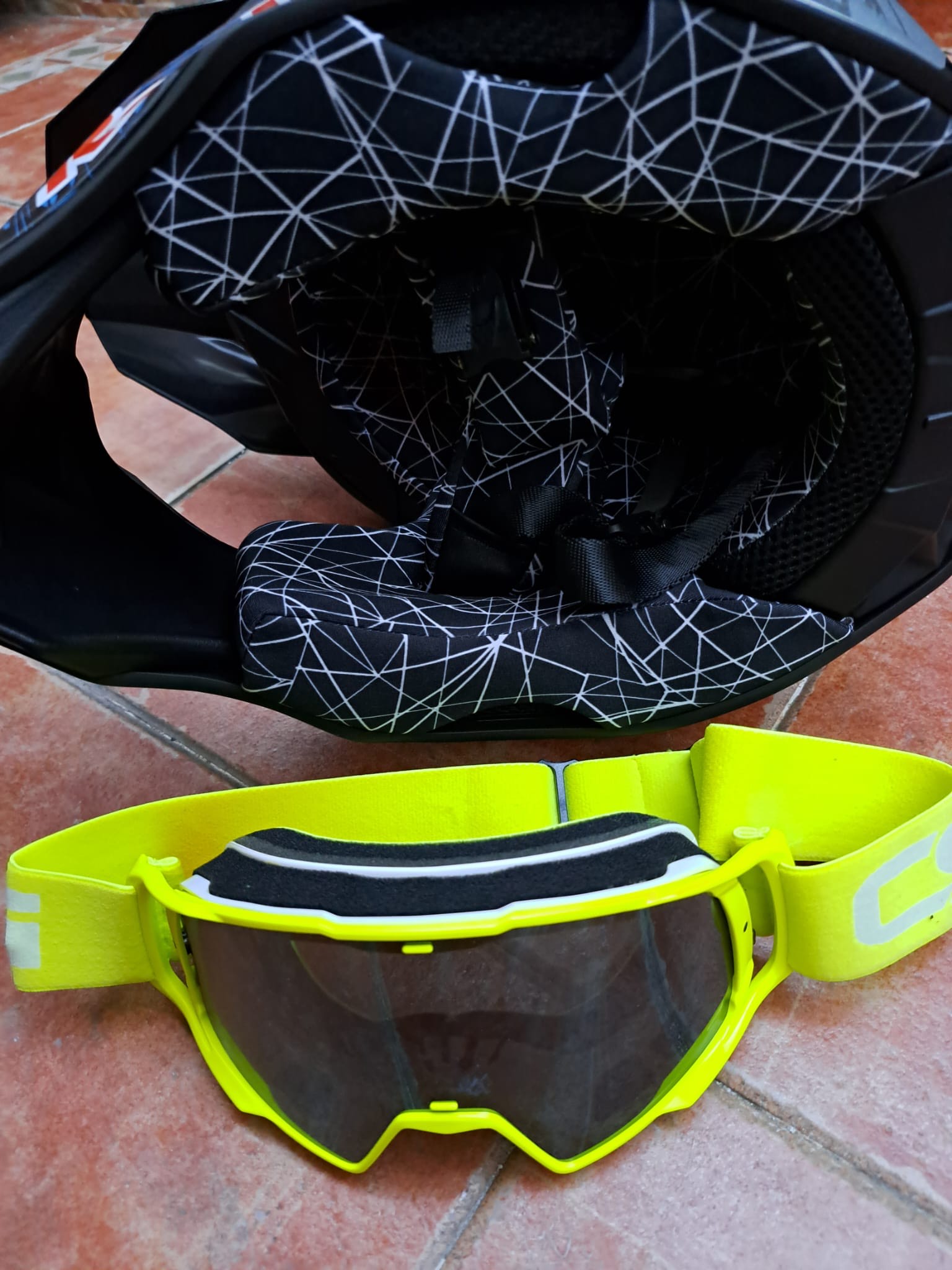 Regalo Casco KTM con los colores oficiales del equipo Red Bull y gafas a estrenar sin un solo uso. Kit de herrajes para maletas laterales sin uso. Alargador de guardabarros delantero.