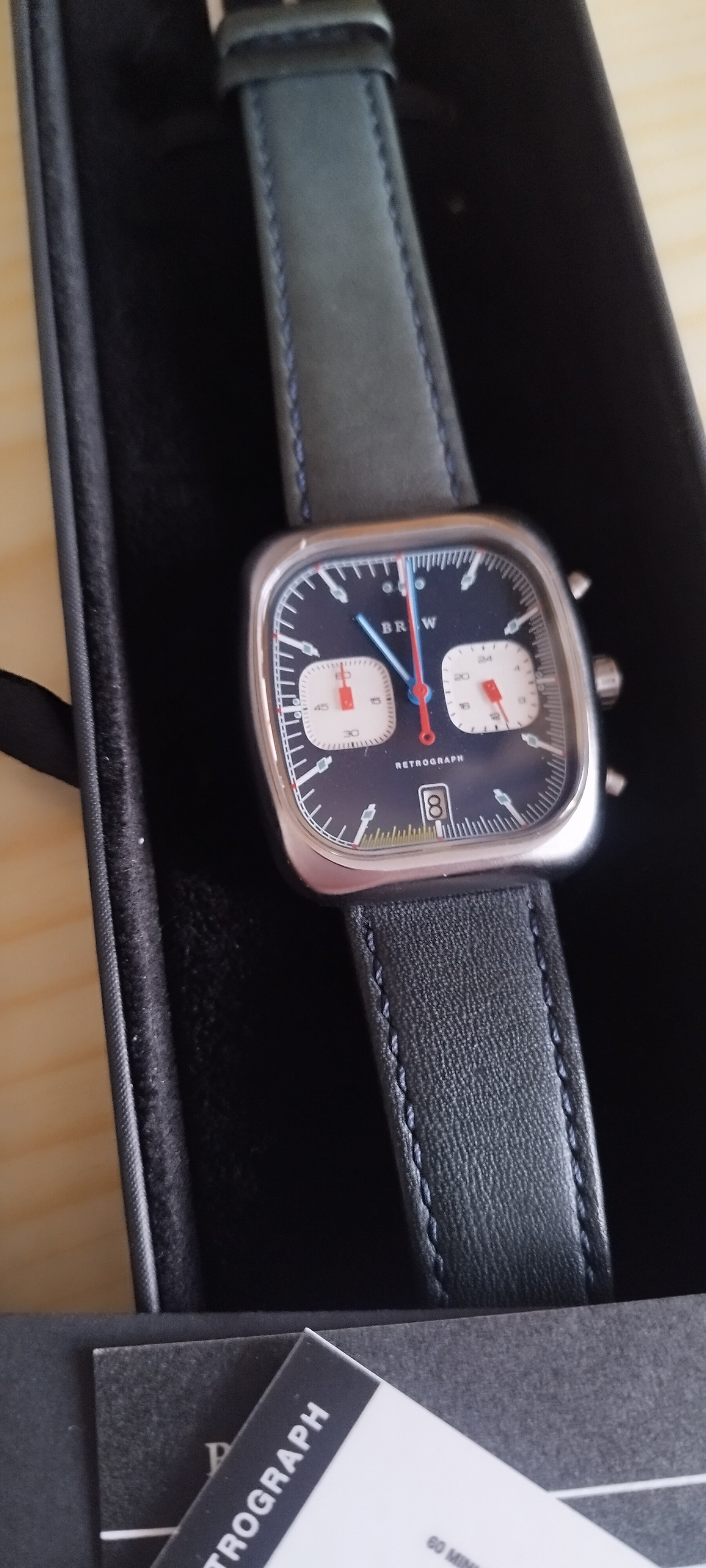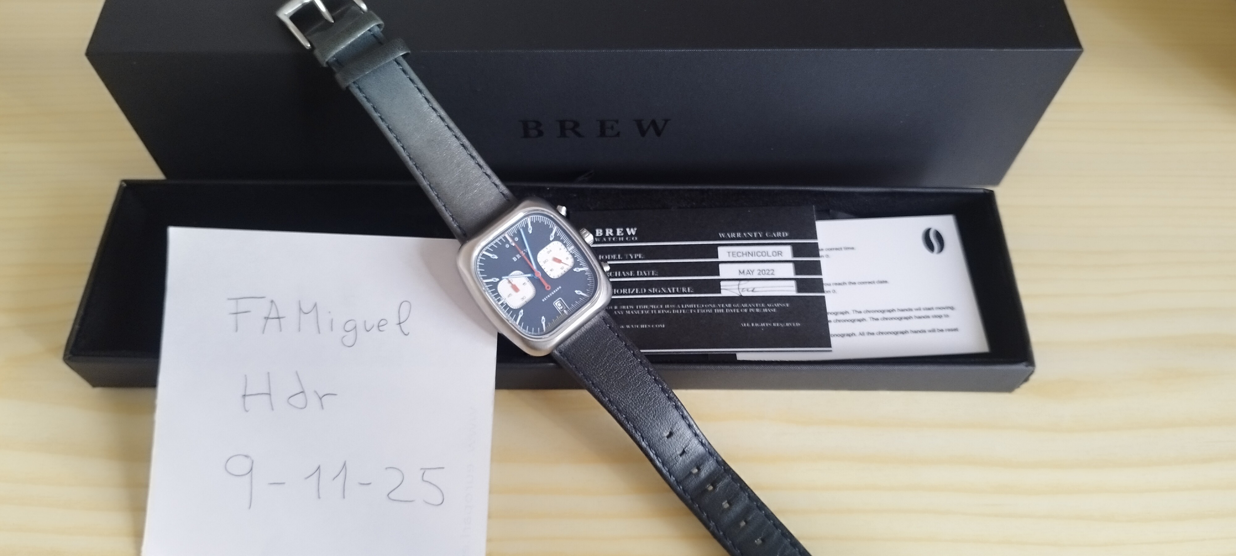 Bueno pues como siempre alguno tiene que irse hoy le ha tocado a este Brew retrograph technicolor, un reloj diferente no apto para todos, muy buen estado, full set, del año 2022.con su crono mecanico que va perfecto.