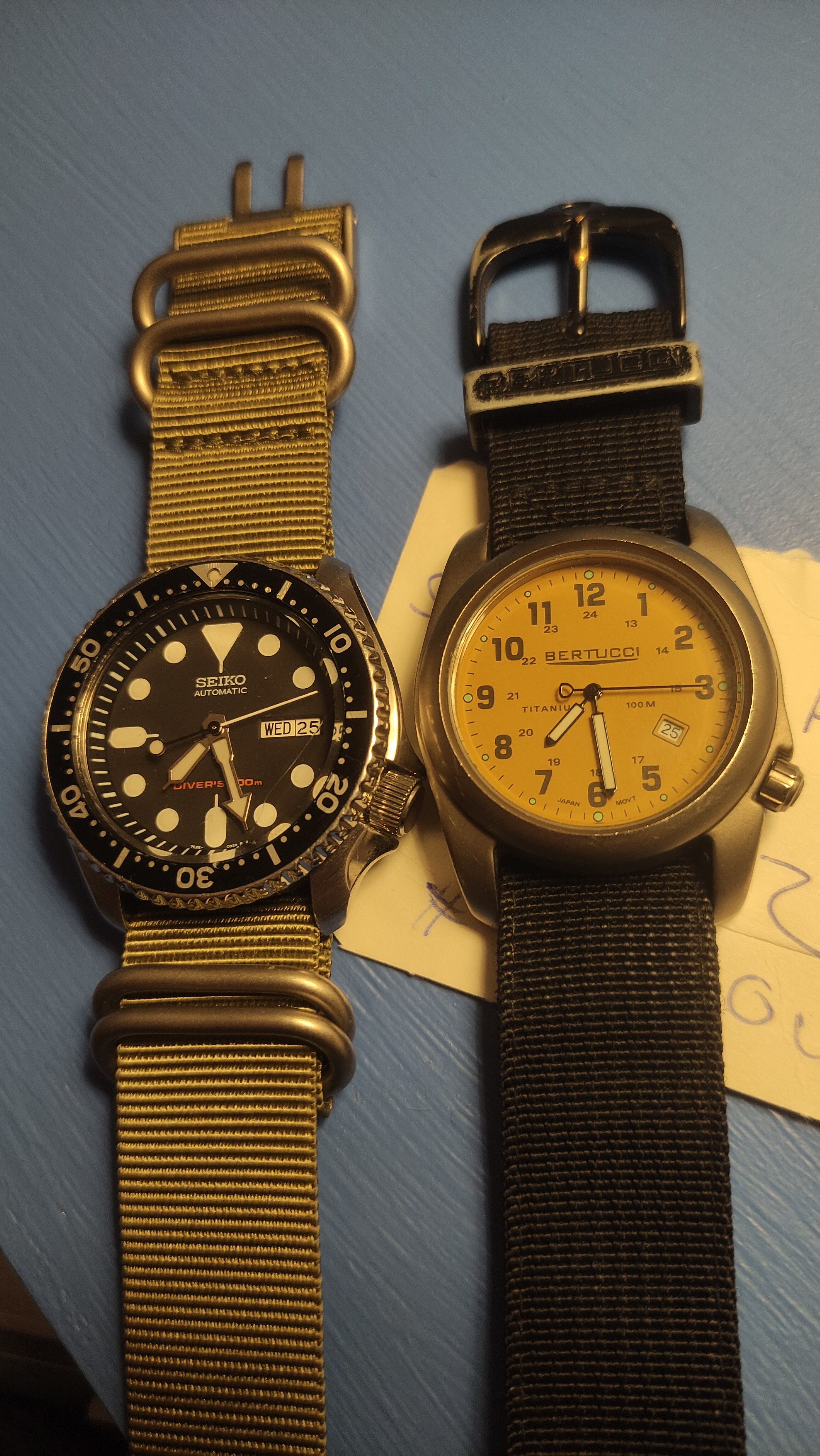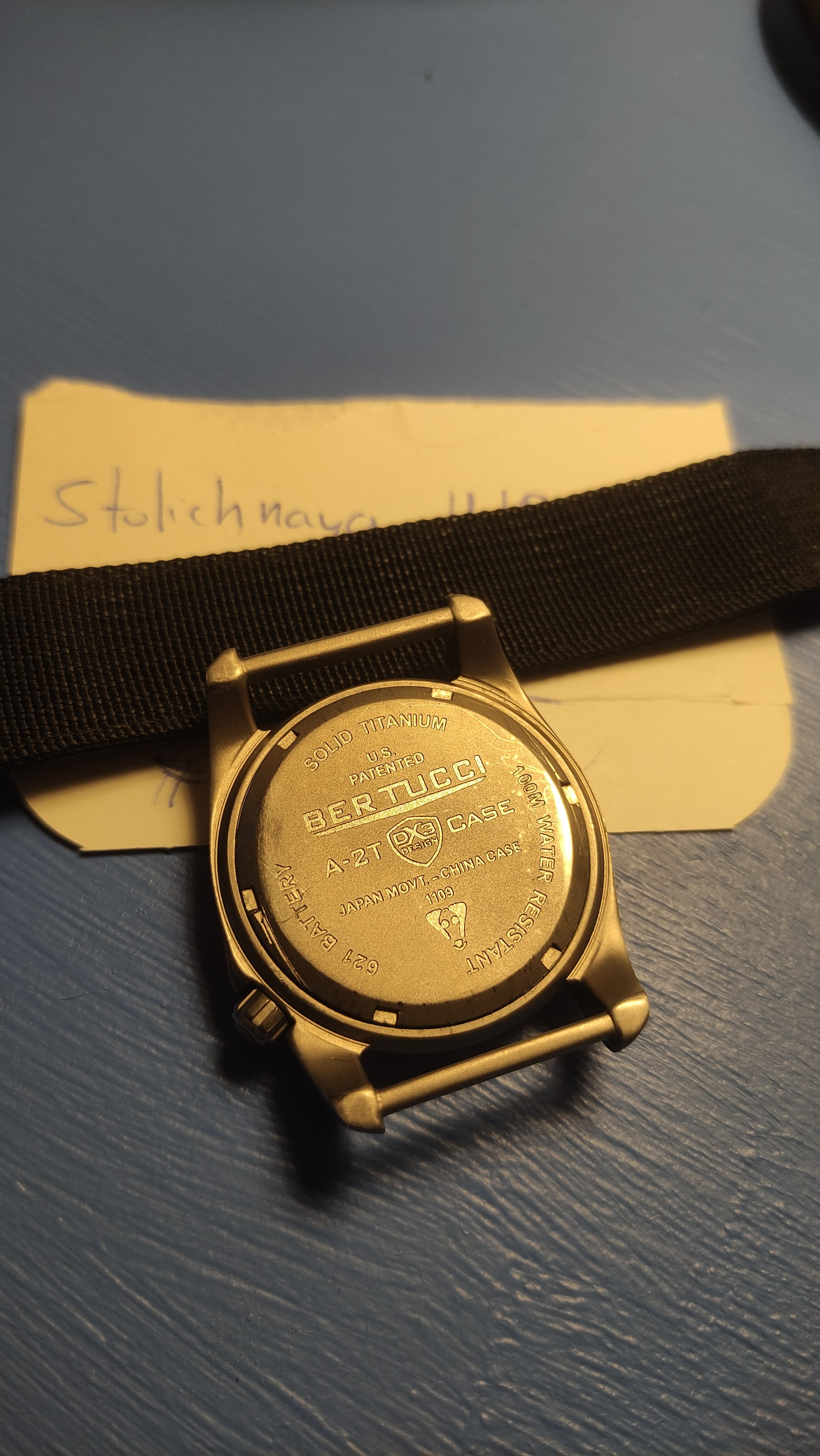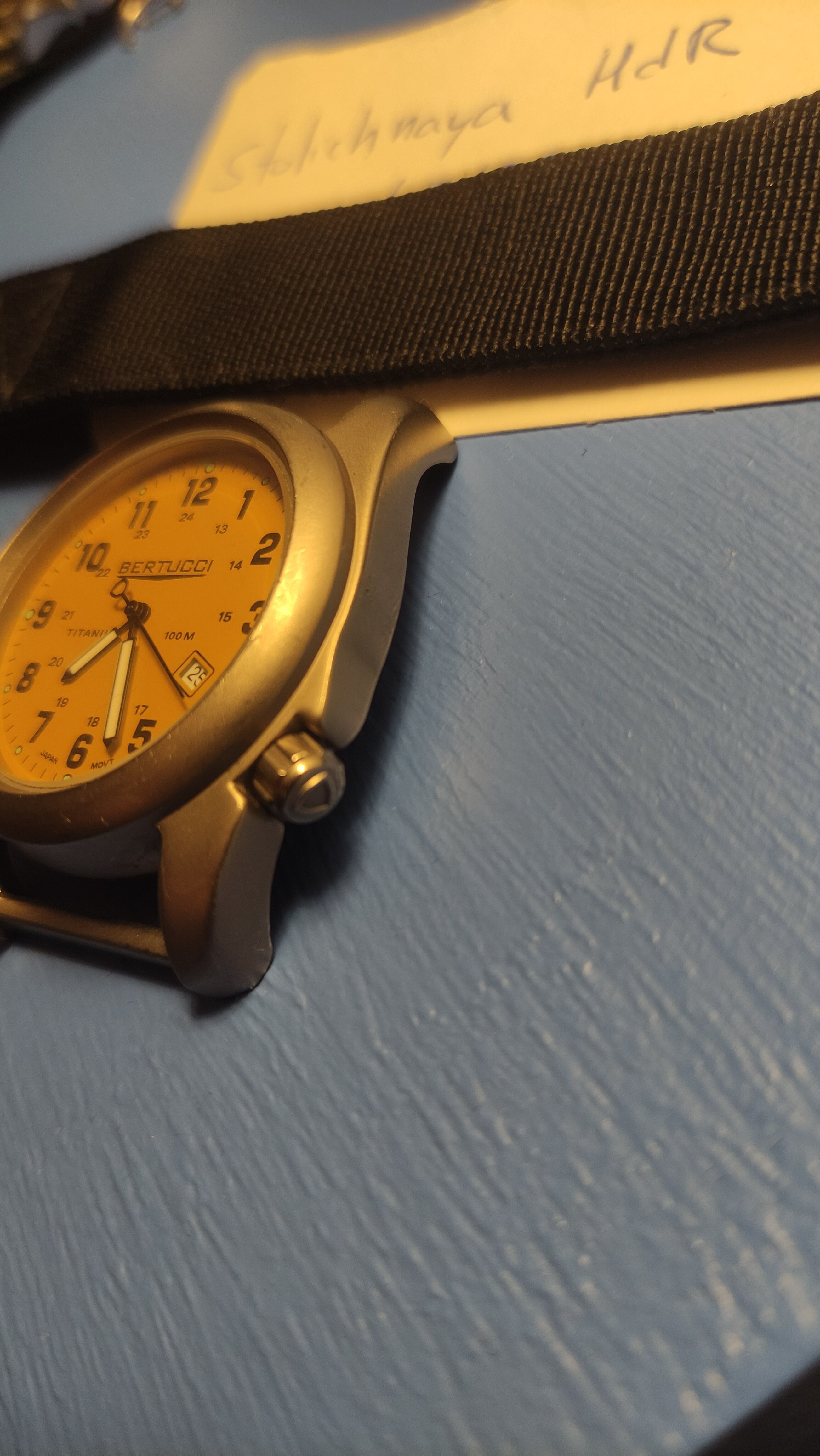 Saco a la venta este Bertucci con caja de titanio, un reloj de campo (field watch) muy cómodo gracias a su ligereza y a la posición de la corona a las 4.