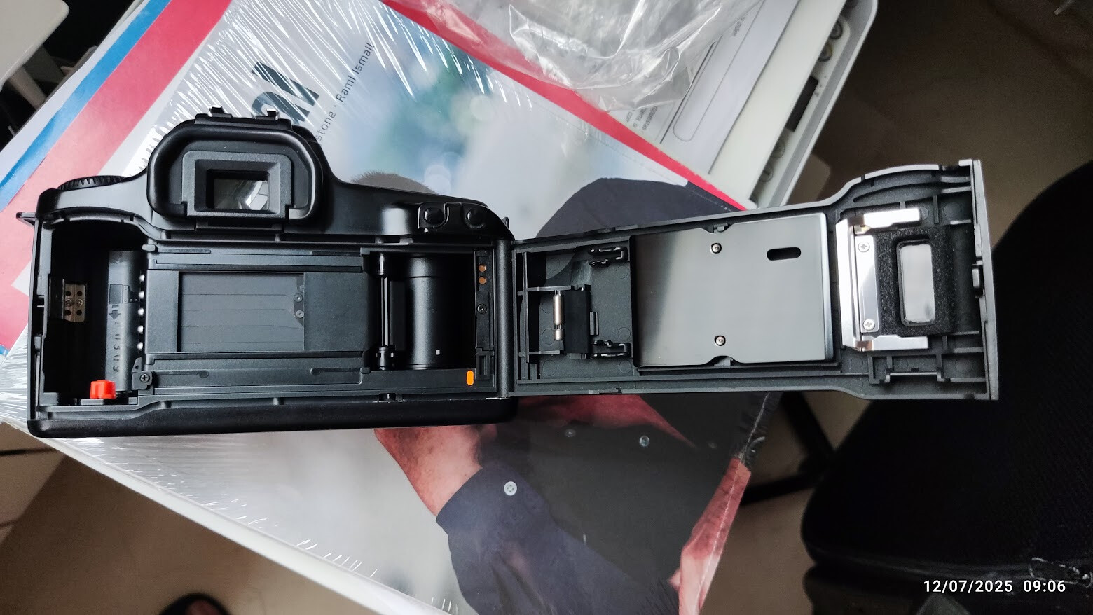 Canon 1000F Eos lanzada en los 90 del siglo pasado (madre mía que viejos somos) y que me ha llegado en perfectas condiciones, revisada y funcionando.