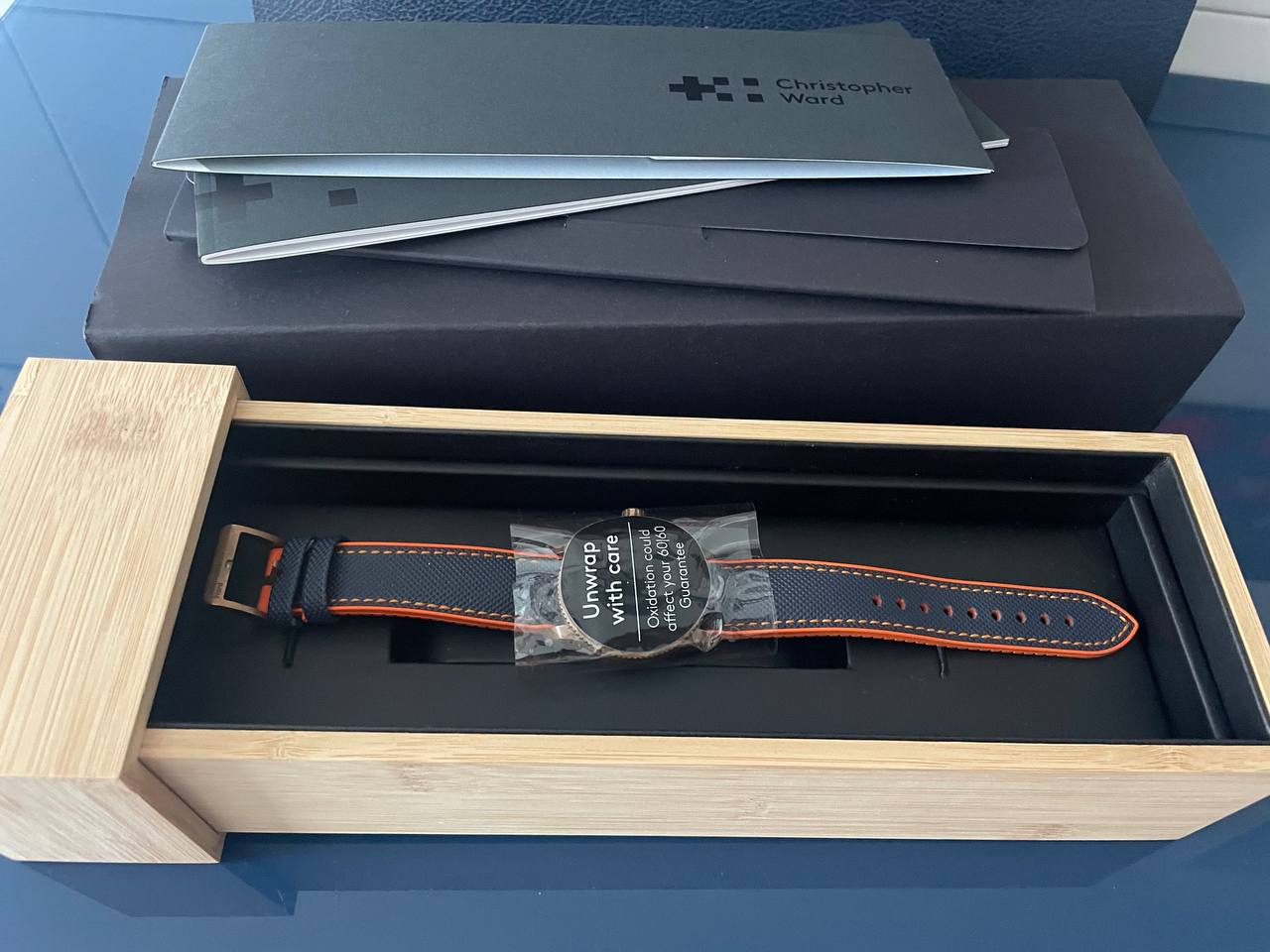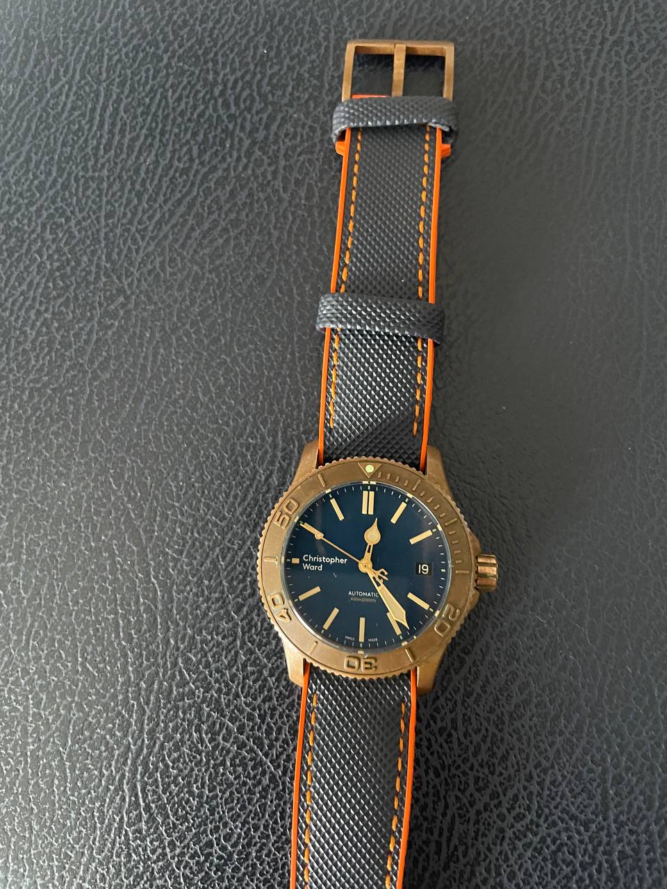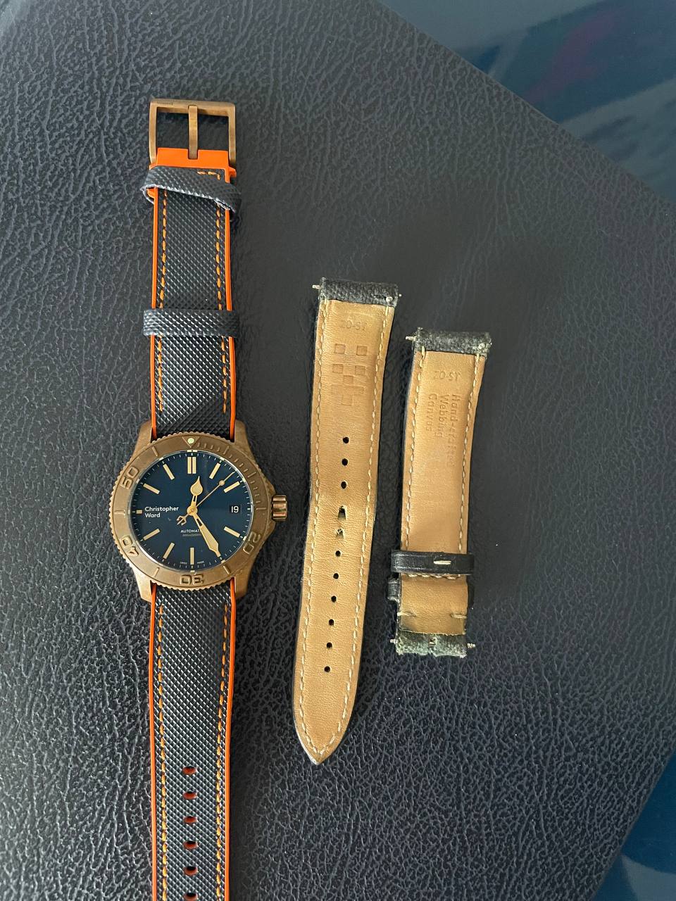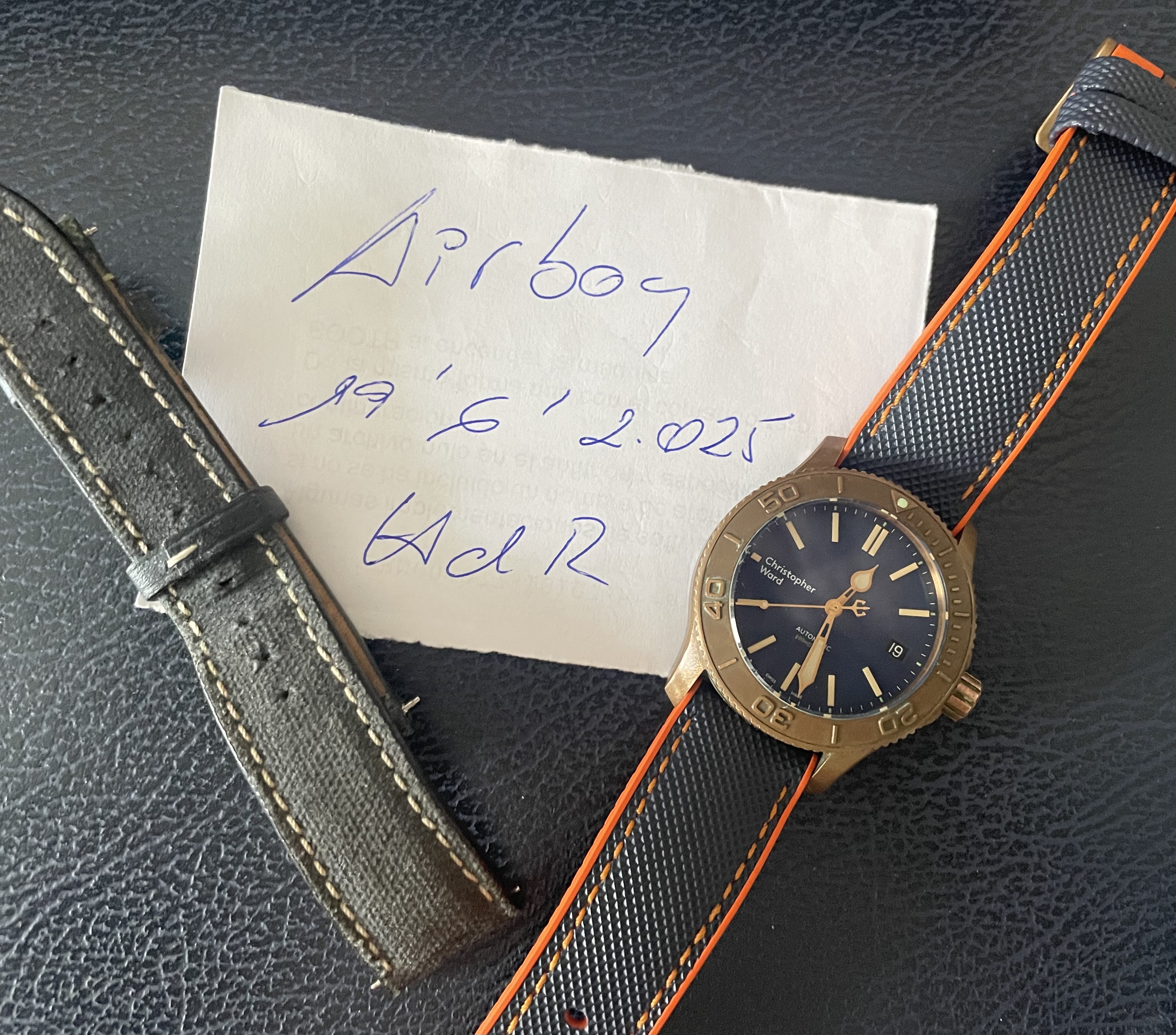 Todo un objeto de culto al ser de los bronces de la primera época de la marca, que entrego con dos correas: La original, bastante trallada pero recién limpia e higienizada y una que le he puesto hace un año que le va mejor que la que traía, a la que le he añadido el cierre firmado Christopher Ward que traía la original.