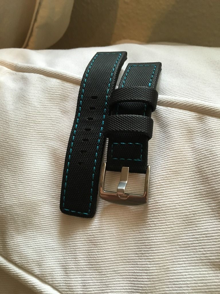 - Correa simil tela de barco 22mm. Con pespunte turquesa. 23€ envio incluido.