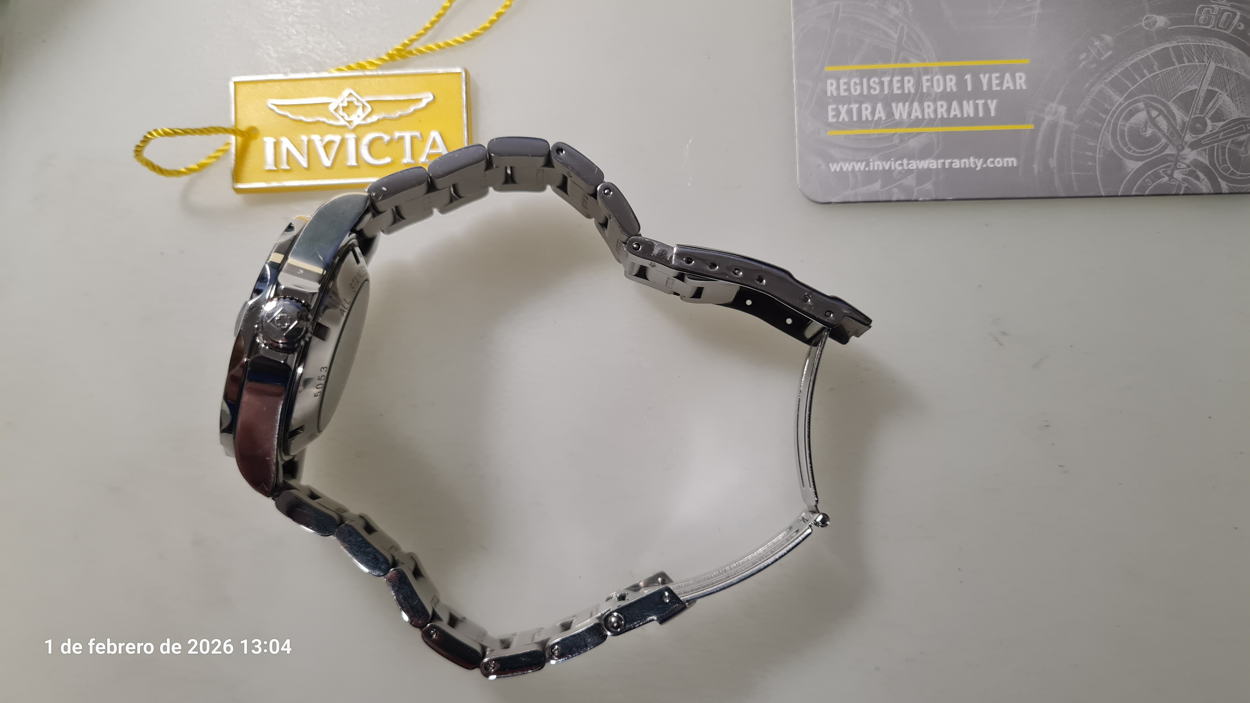 - El Invicta 5053 tiene una caja de acero inoxidable de 40 millimetros con una esfera azul