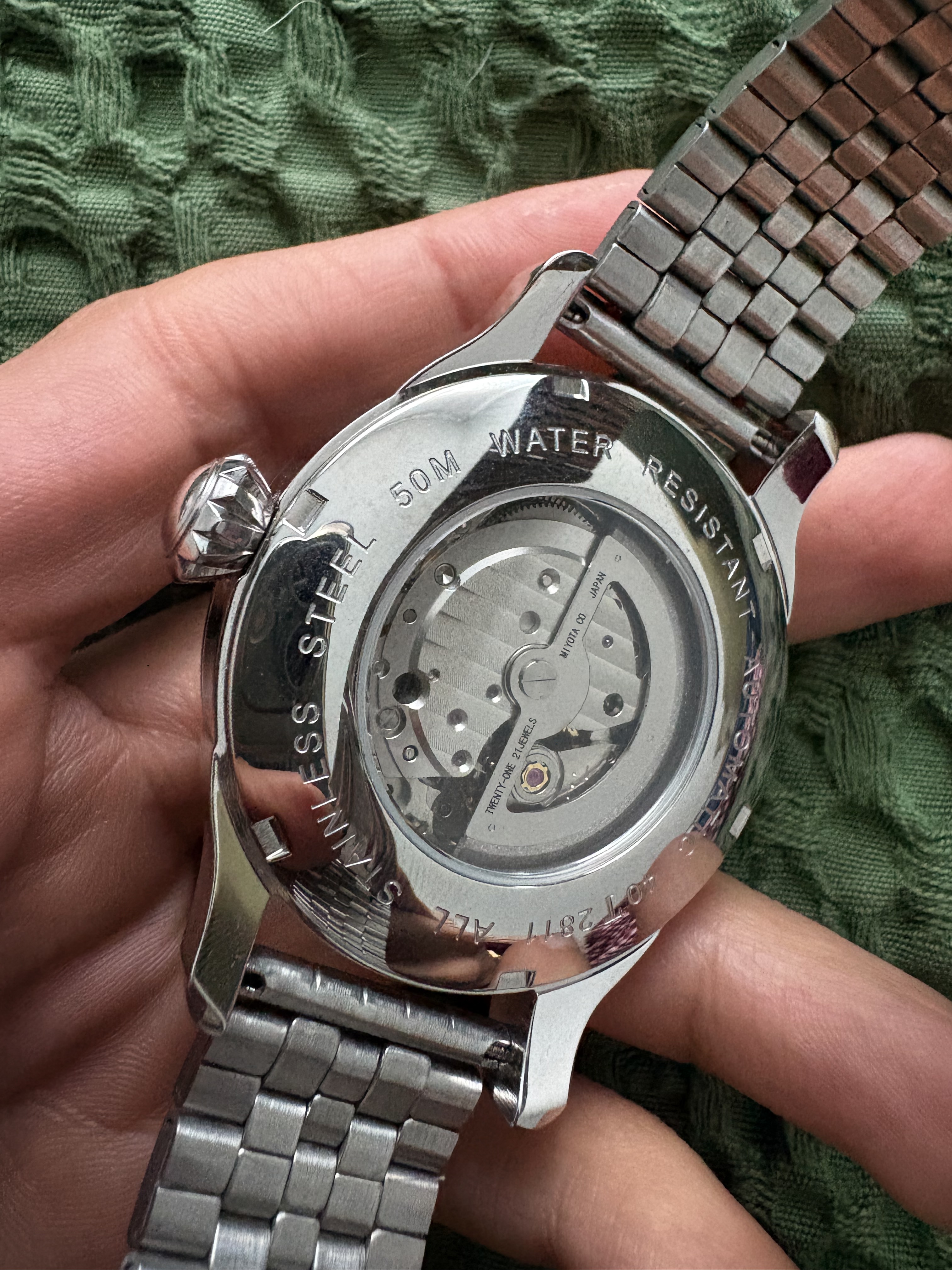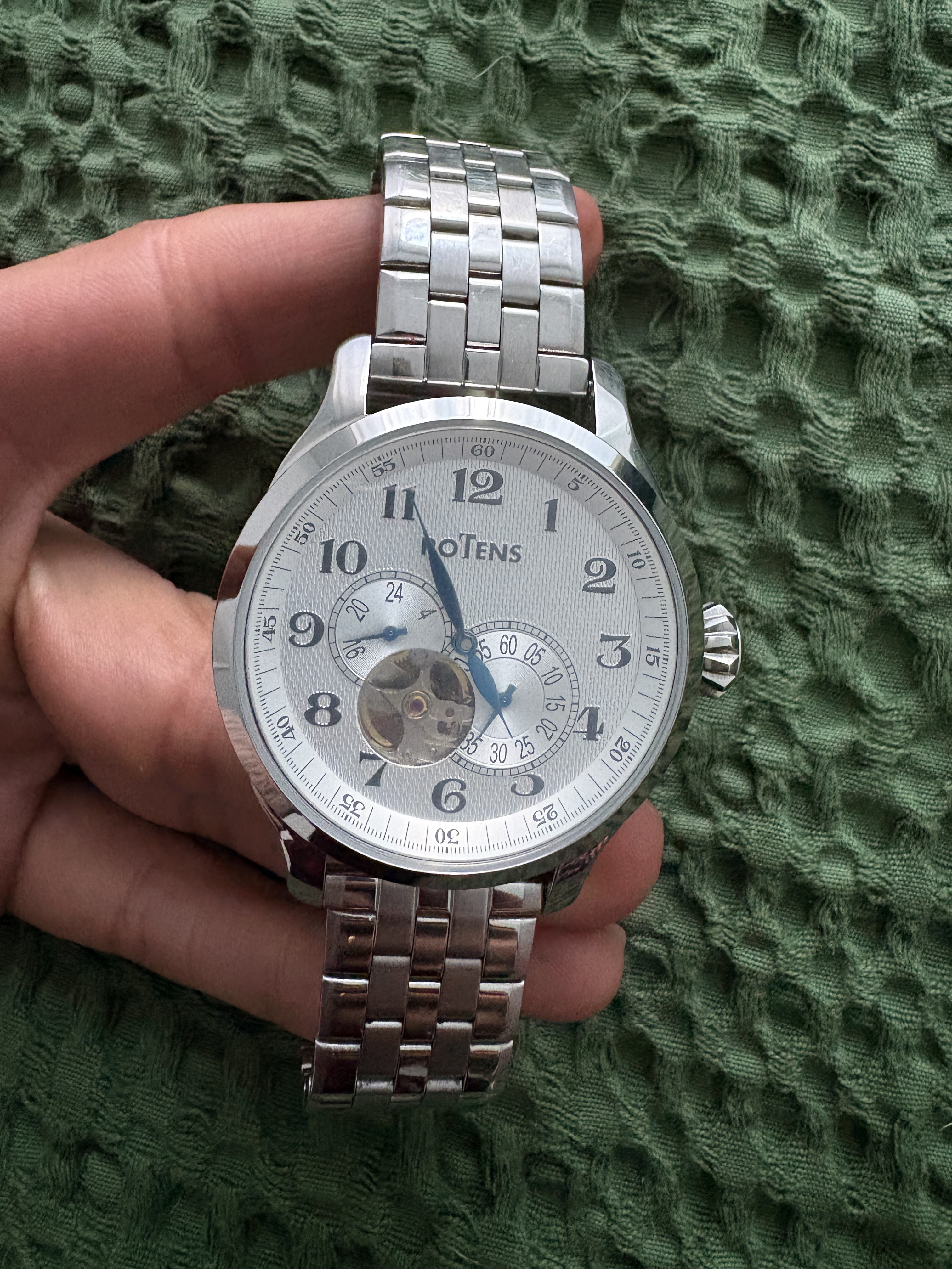 Por otra parte el último en llegar que no me ha convencido por tamaño (42mm) y por repetir color en mi colección. Potens semiskeleton (ref 40-2811-0-1). Movimiento miyota, corona tipo aviador. Se puede entregar con el armis de la foto o una correa de piel genuina en marron (a elegir). Caja original pero sin papeles ni garantía.