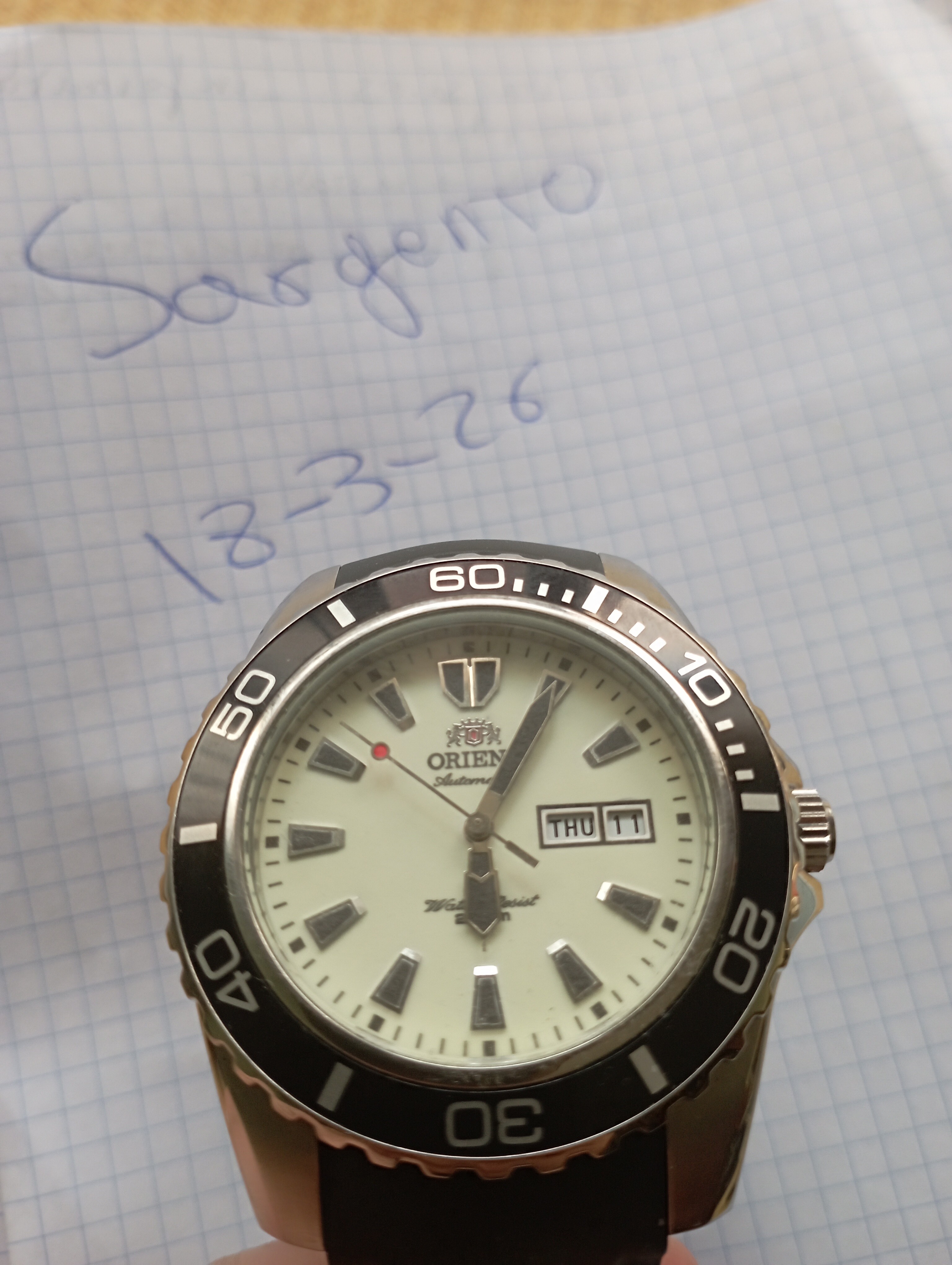 Tiene la peculiaridad de que para mejorar la visibilidad, se le ha añadido lumen con superluminova Phantom, por parte de el maestro Angelo, a agujas e índices.