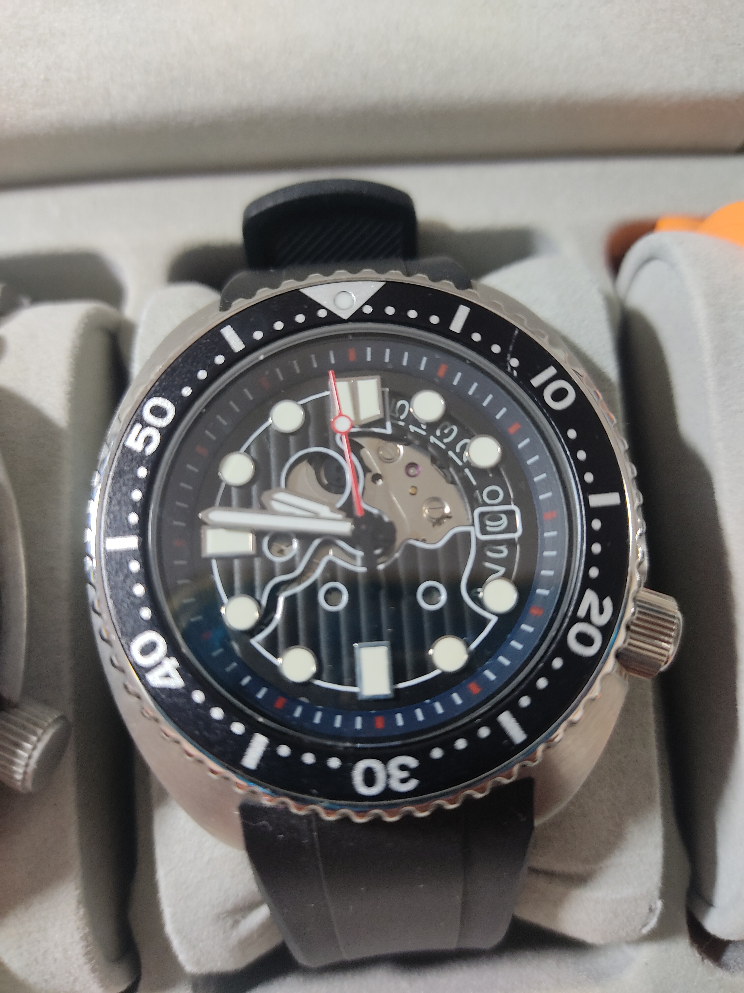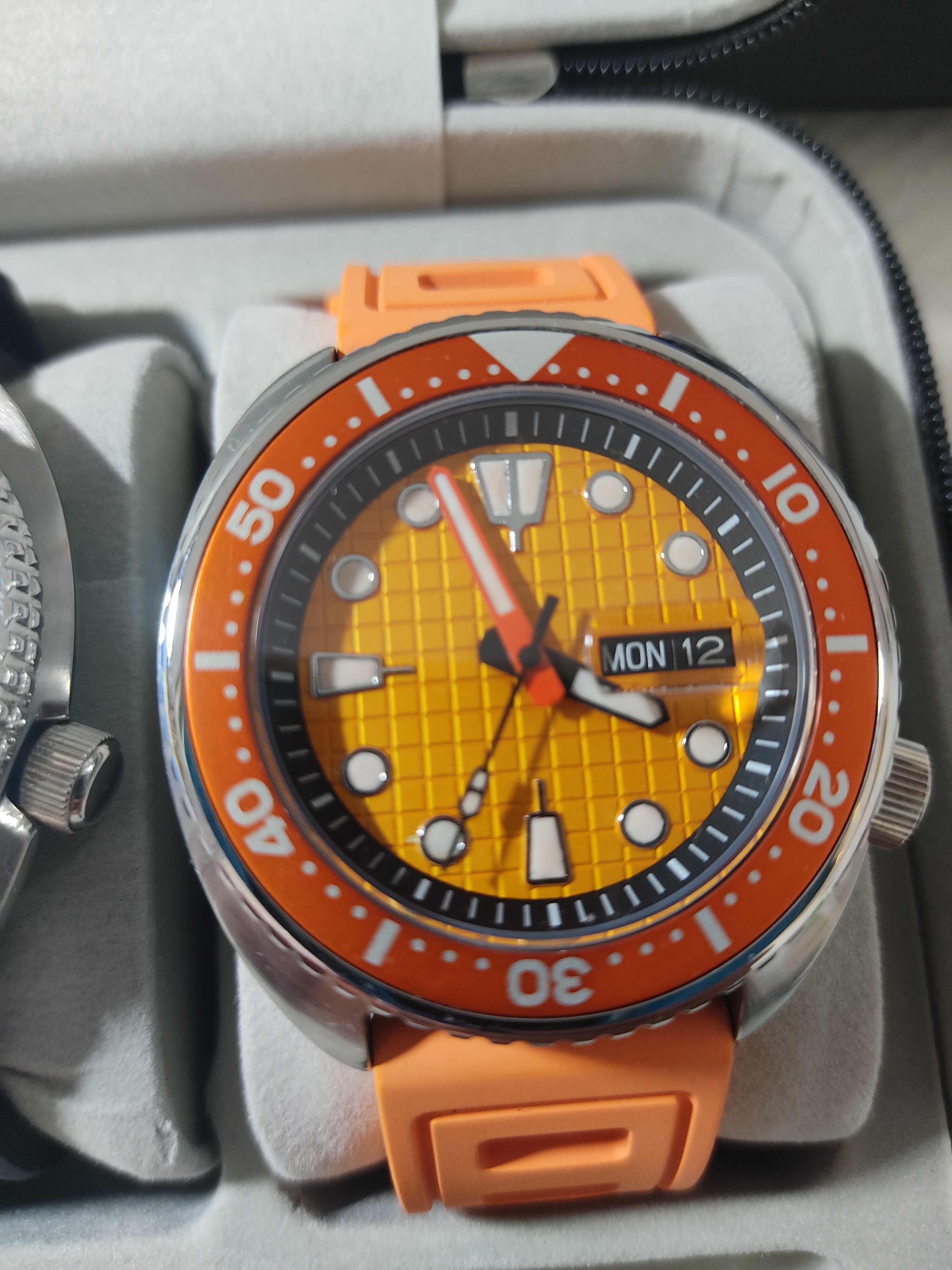 Caja tipo SRP tortuga calibre nh36 se le ha cambiado inserto agujas y lupa.Precio 125€ envio certificado inc.