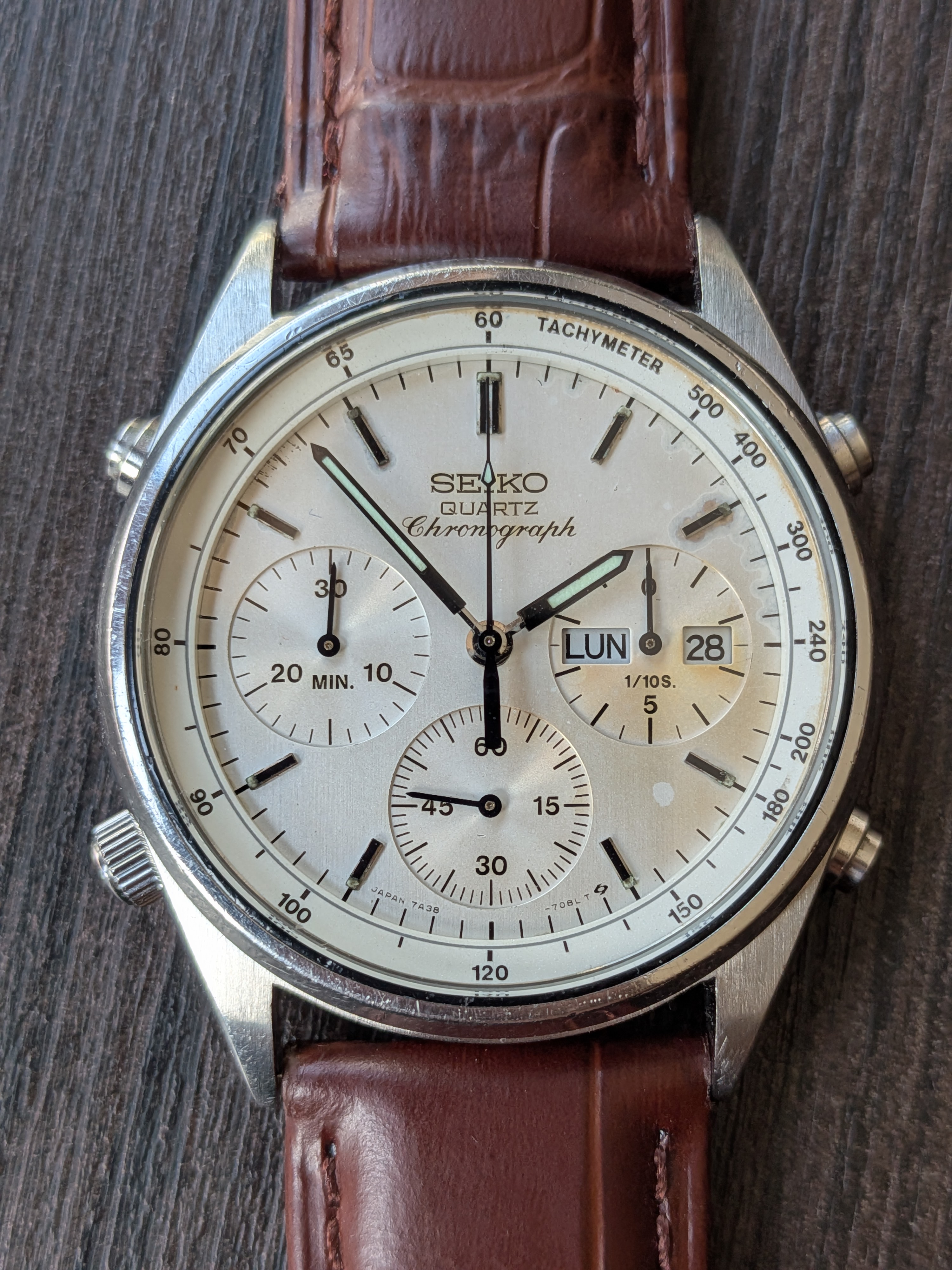 EL primer cronógrafo analógico de cuarzo de la historia. Con el bestial calibre 7A38 (de esos que ya no se hacen hoy en día).