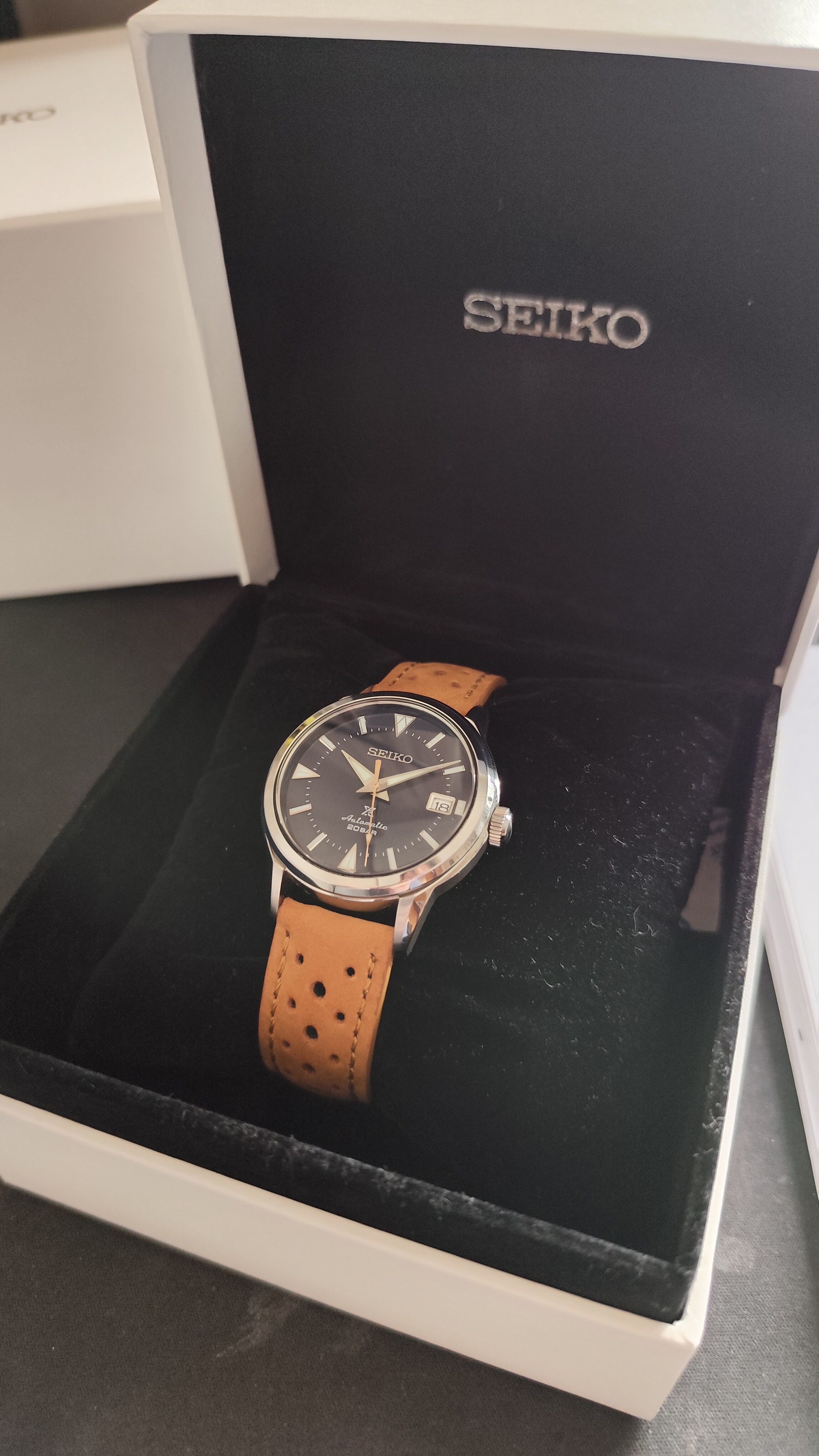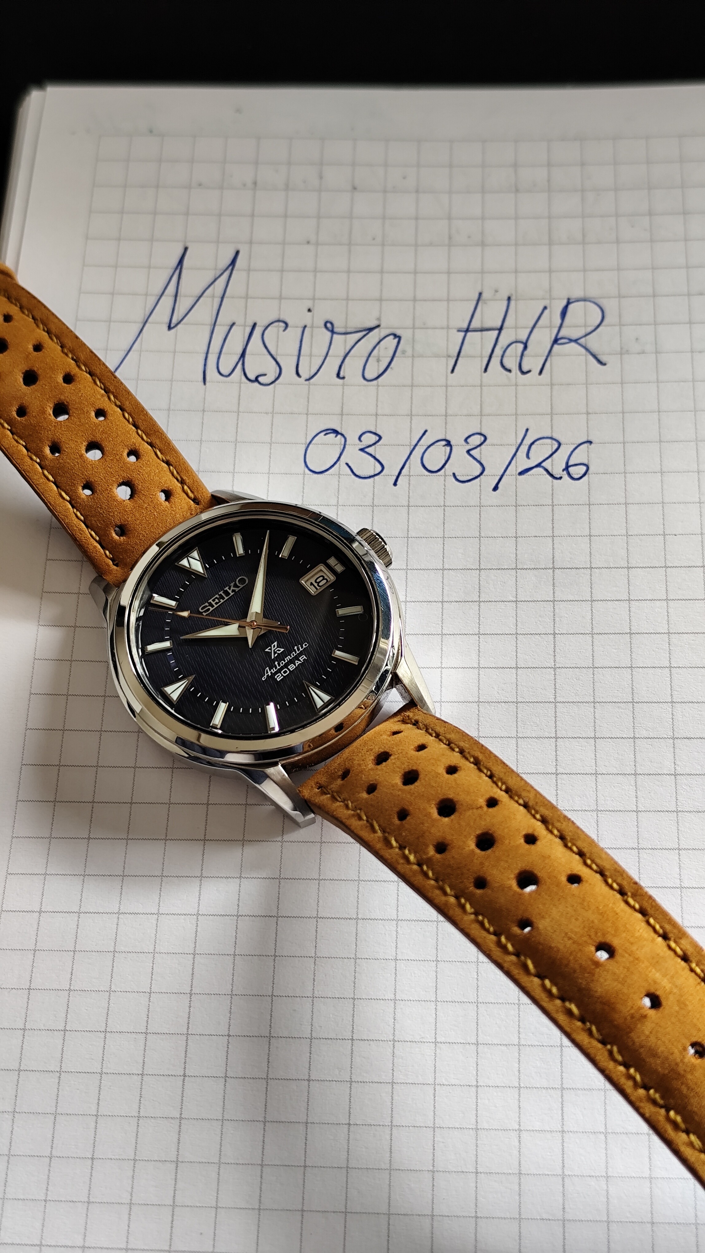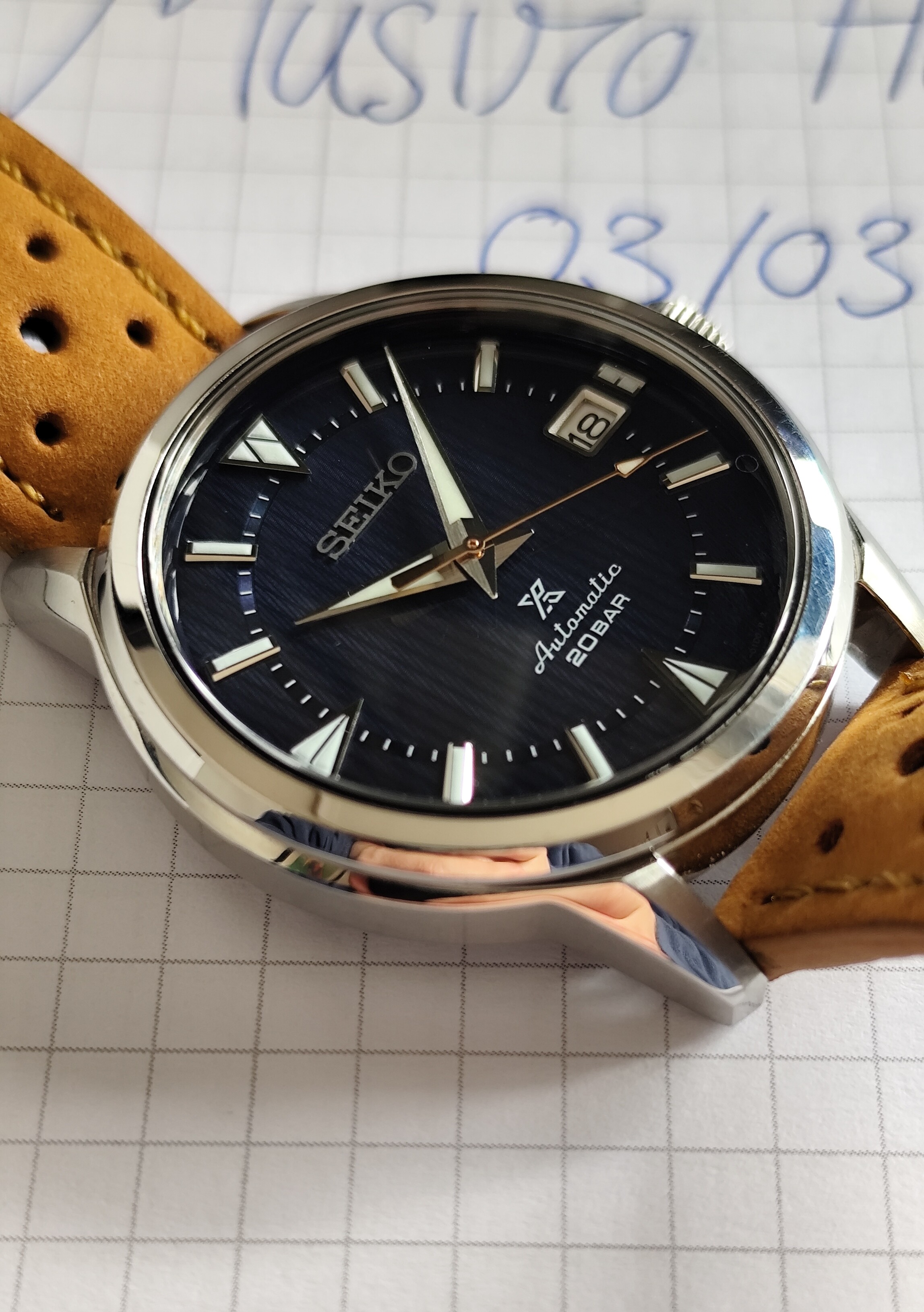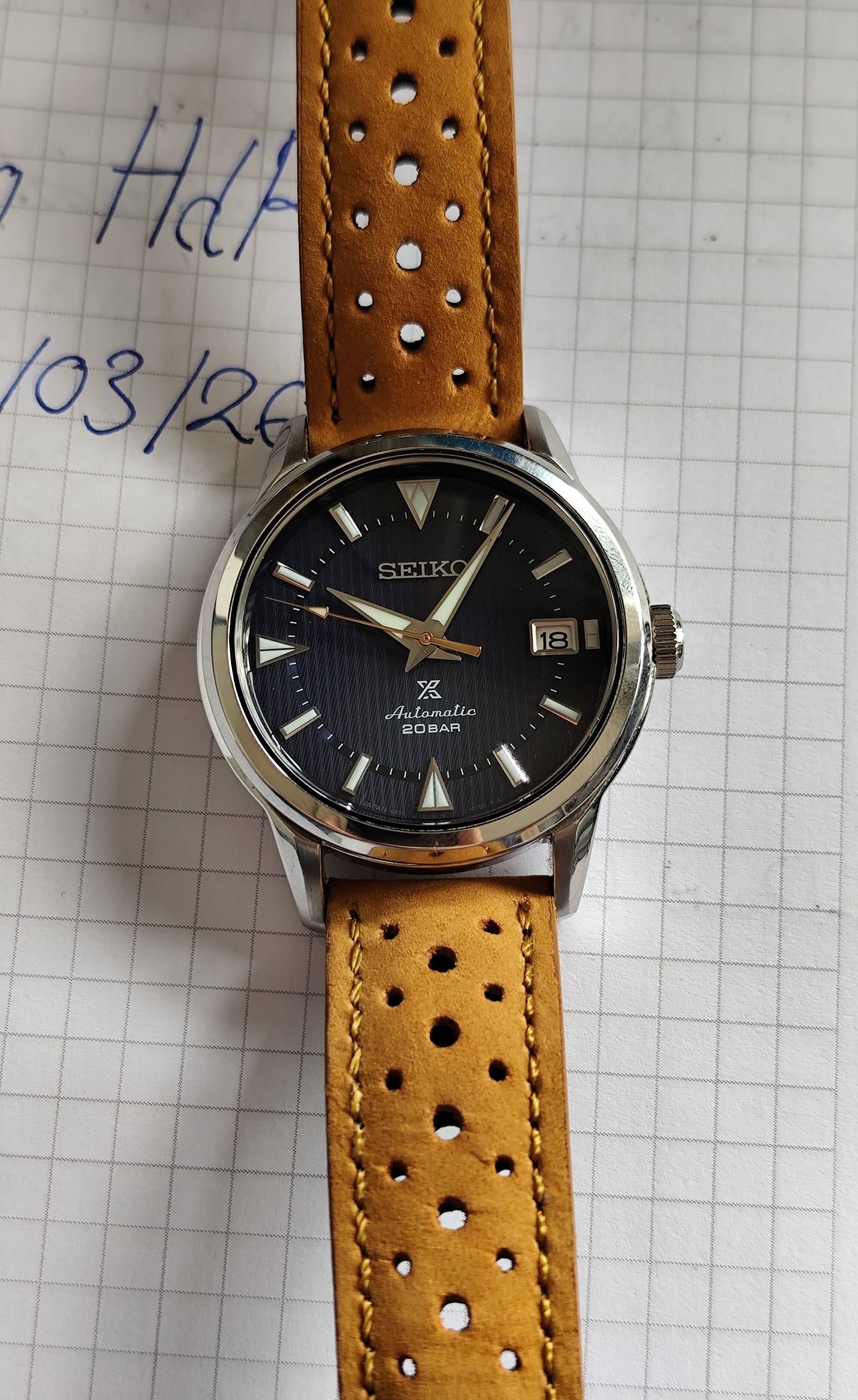Seiko Alpinist, made in Japan, recreación del original de 1959, esta versión azul es conocida como Deep Lake y tiene un dial con patrón de sutiles lazos/nudos verticales.