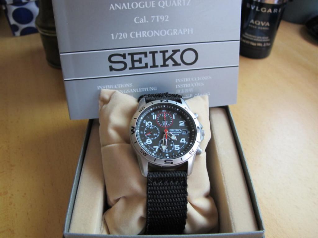 Tengo un Seiko igual, también conocido como Eurofighter o Daytona, y pienso que es un reloj estupendo, que está muy bien terminado, y que vale hasta el último euro de los que pide antuan. Como curiosidad, la subesfera de las '6 tiene doble aguja, y éste cronógrafo puede cronometrar intervalos de hasta 12 horas.