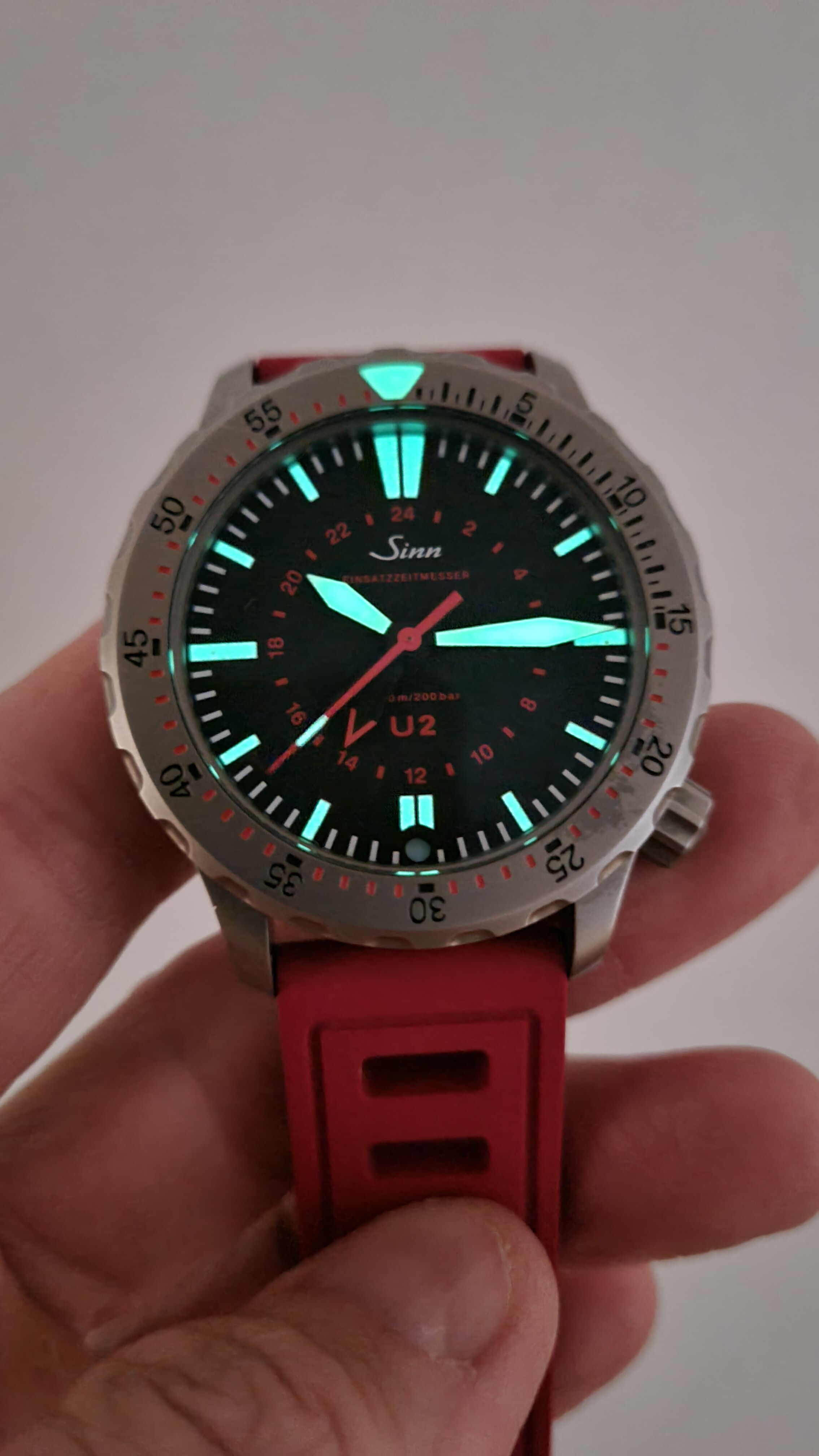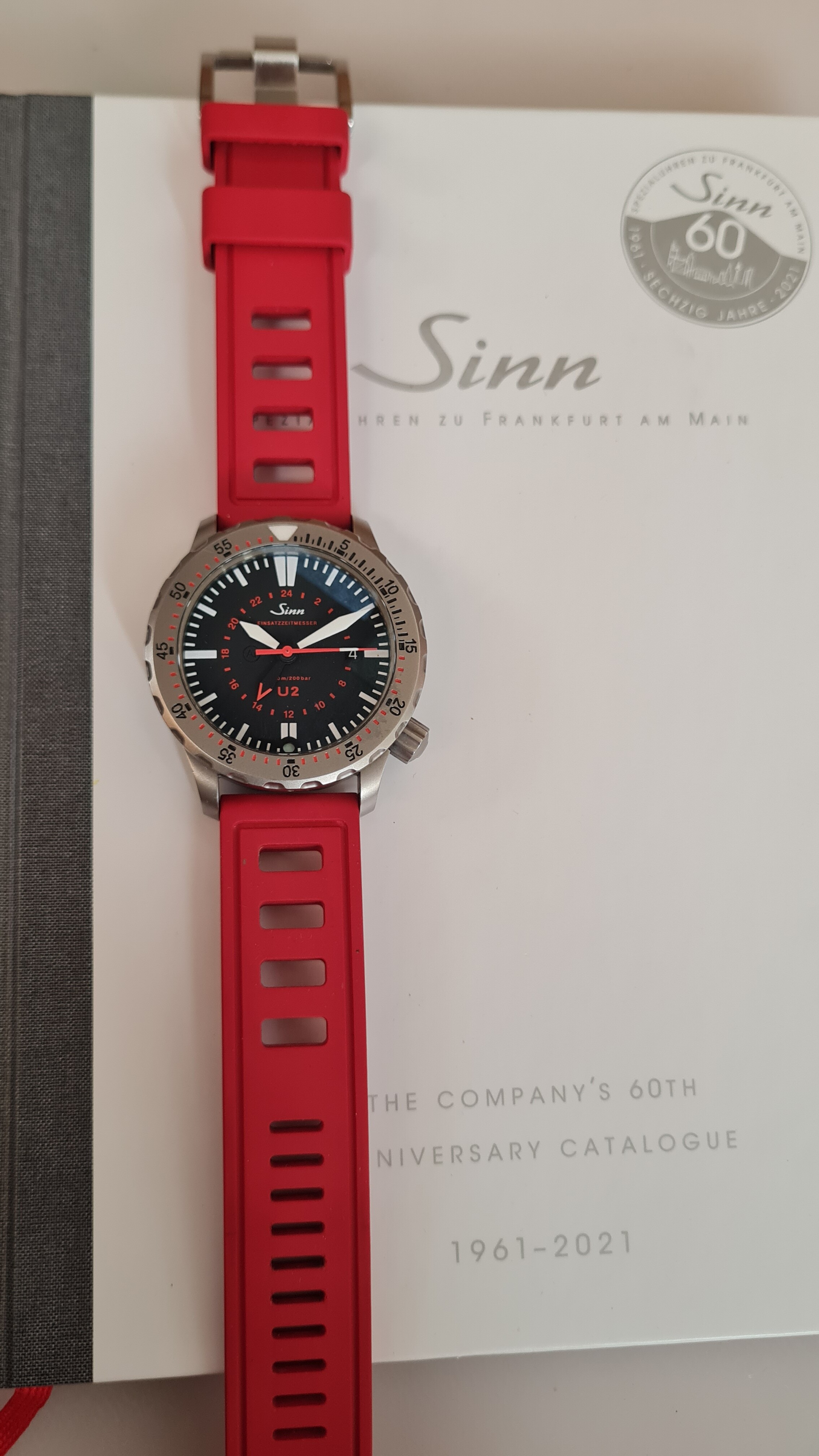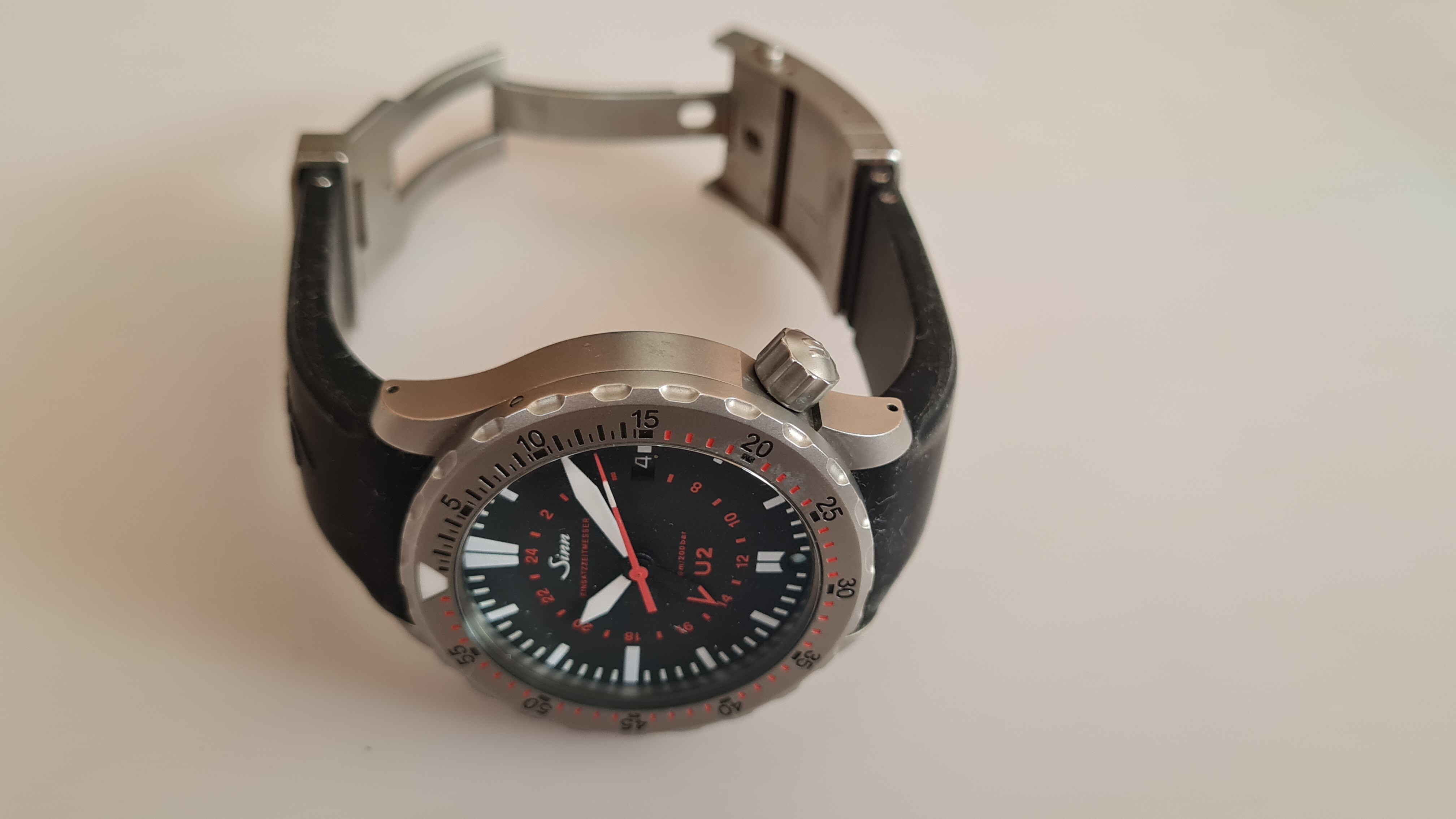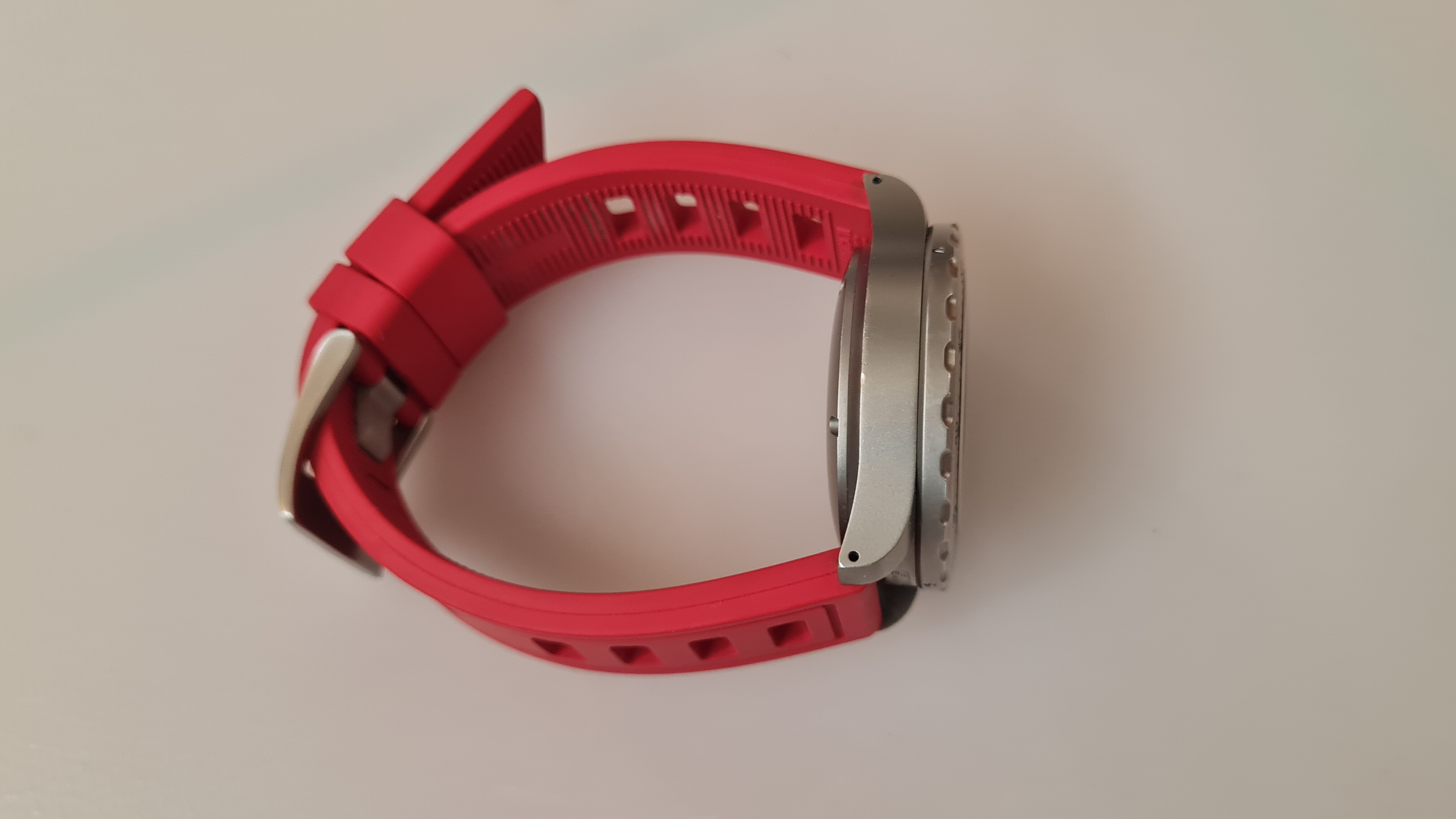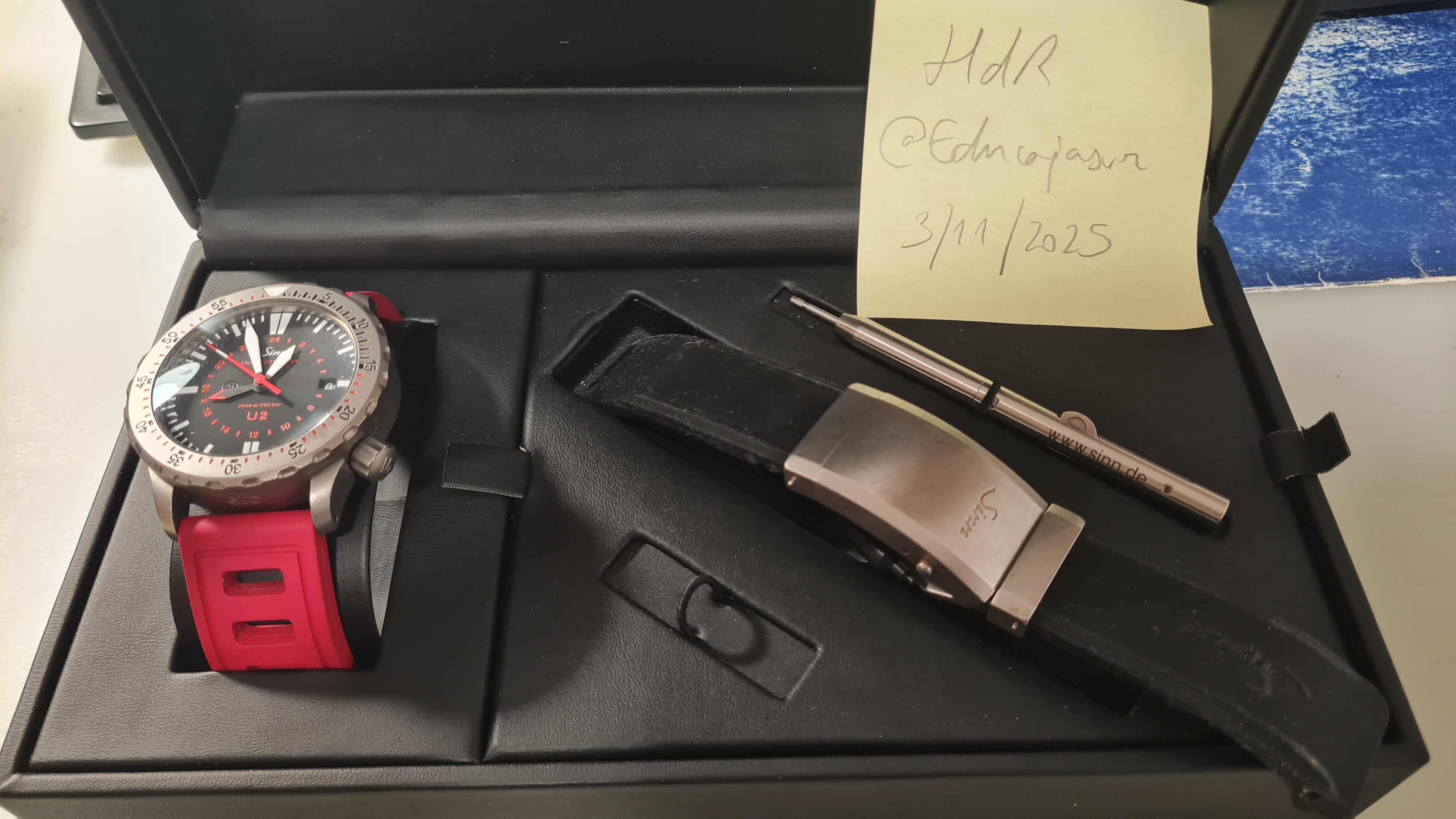 Con correa de caucho roja aftermarket. La correa original negra tiene el cierre averiado, pero nueva cuesta 90€.