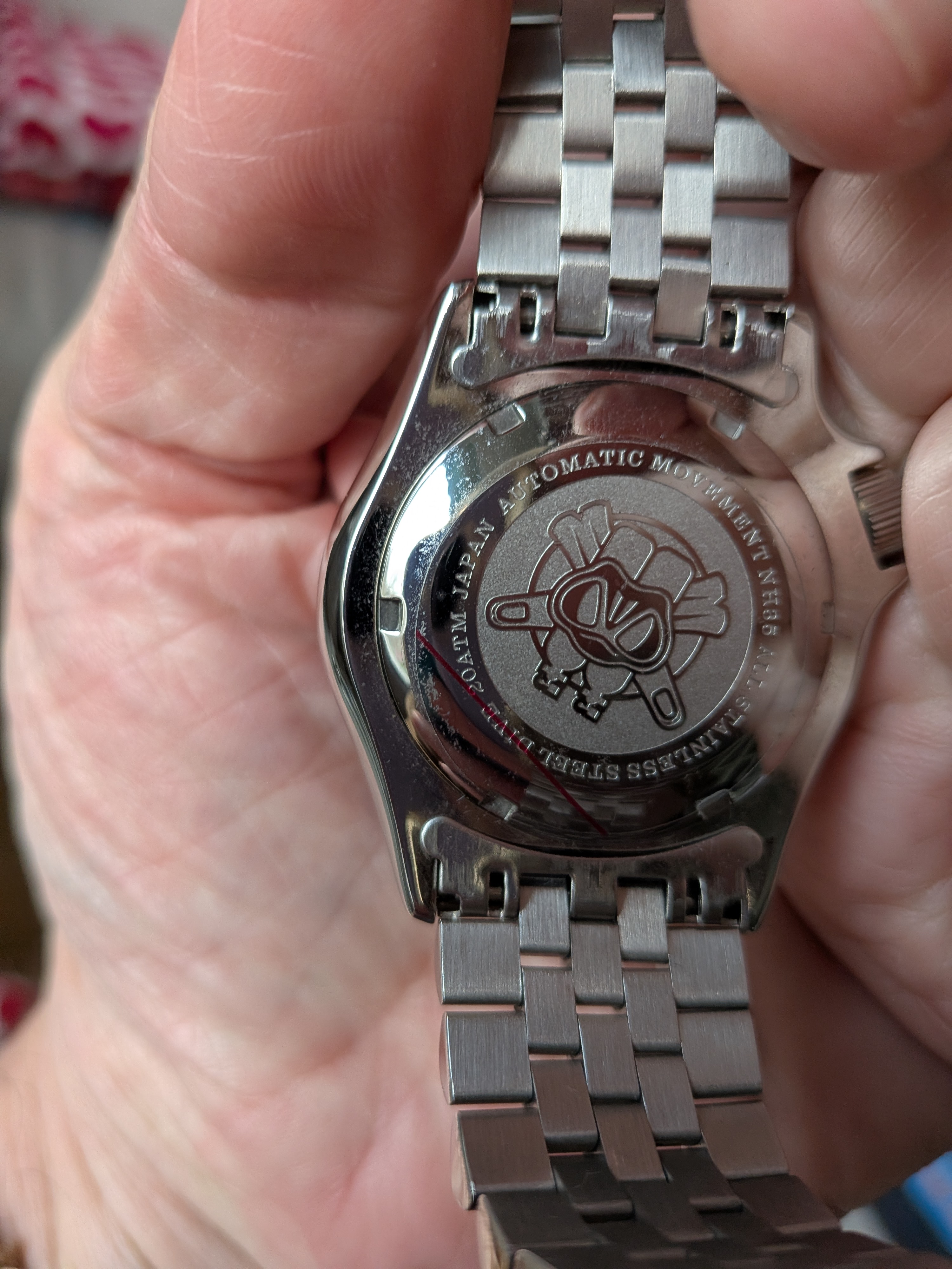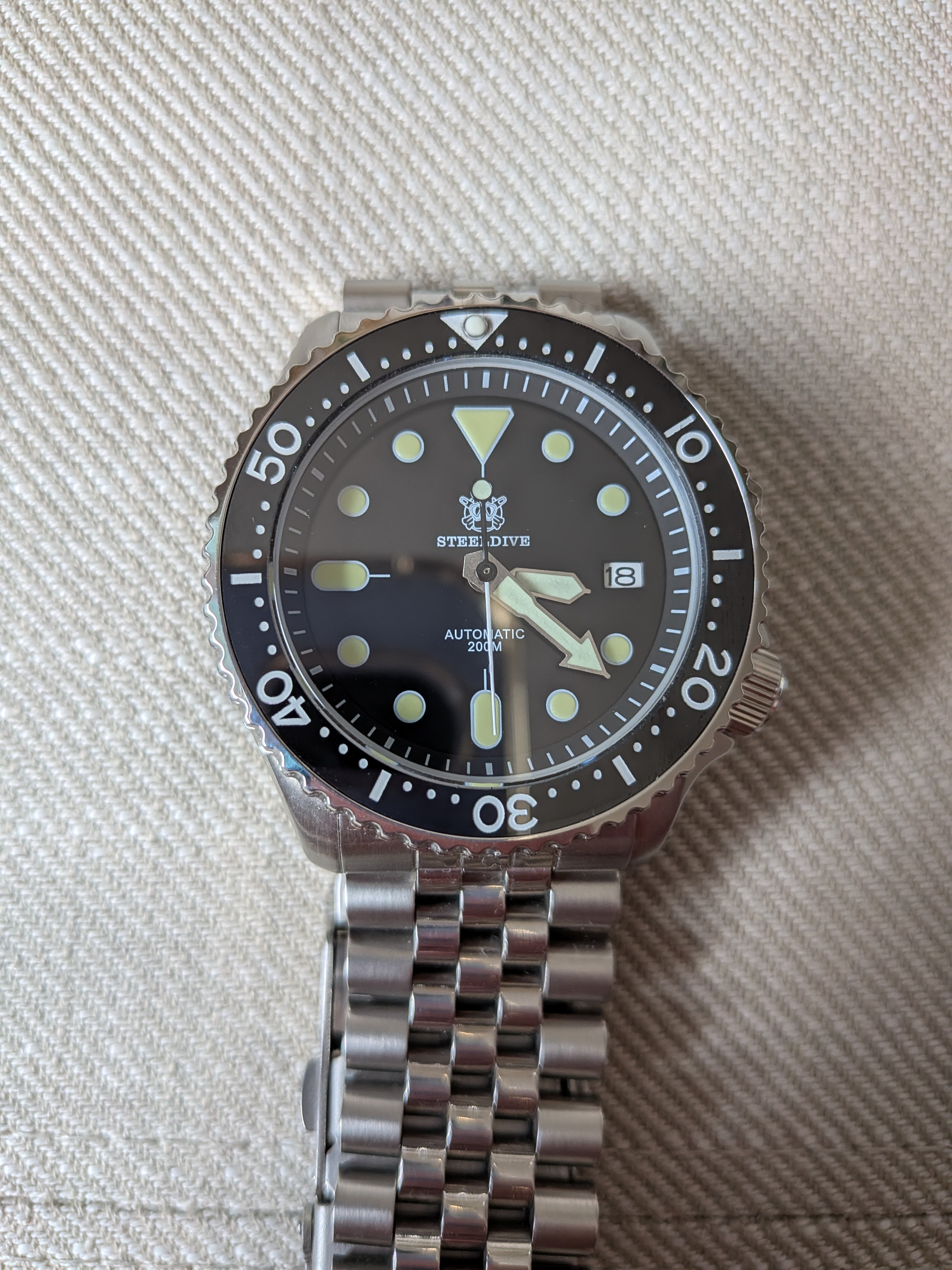 Automático. Cristal de zafiro y maquinaria Seiko Nh35. Cristal de zafiro usando prueba de la gota.