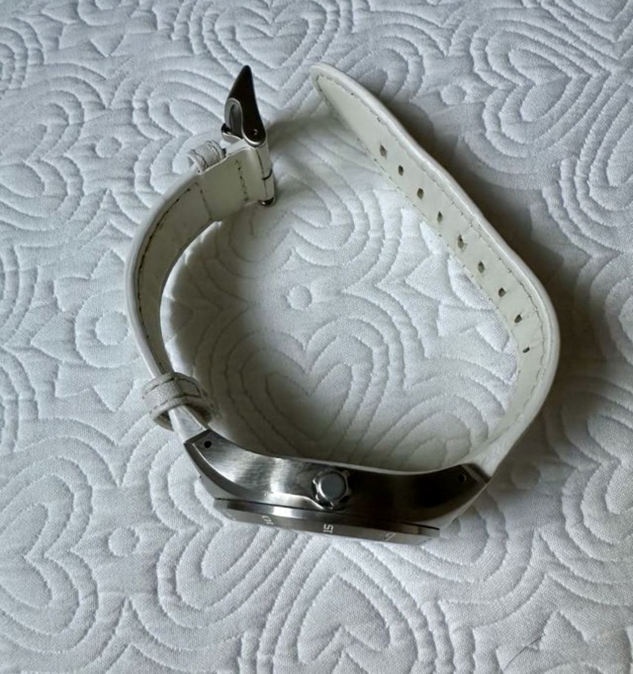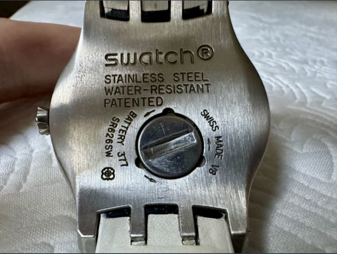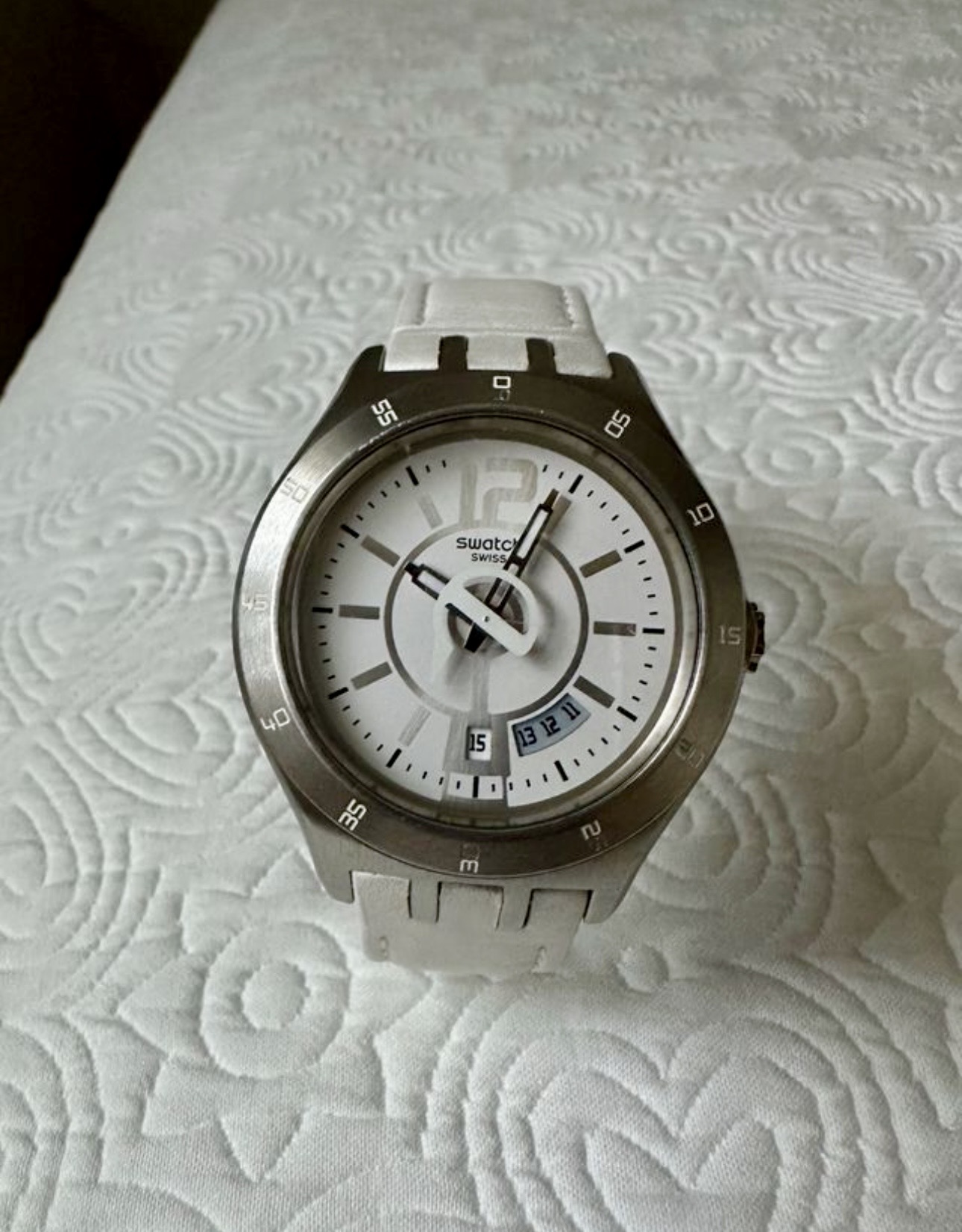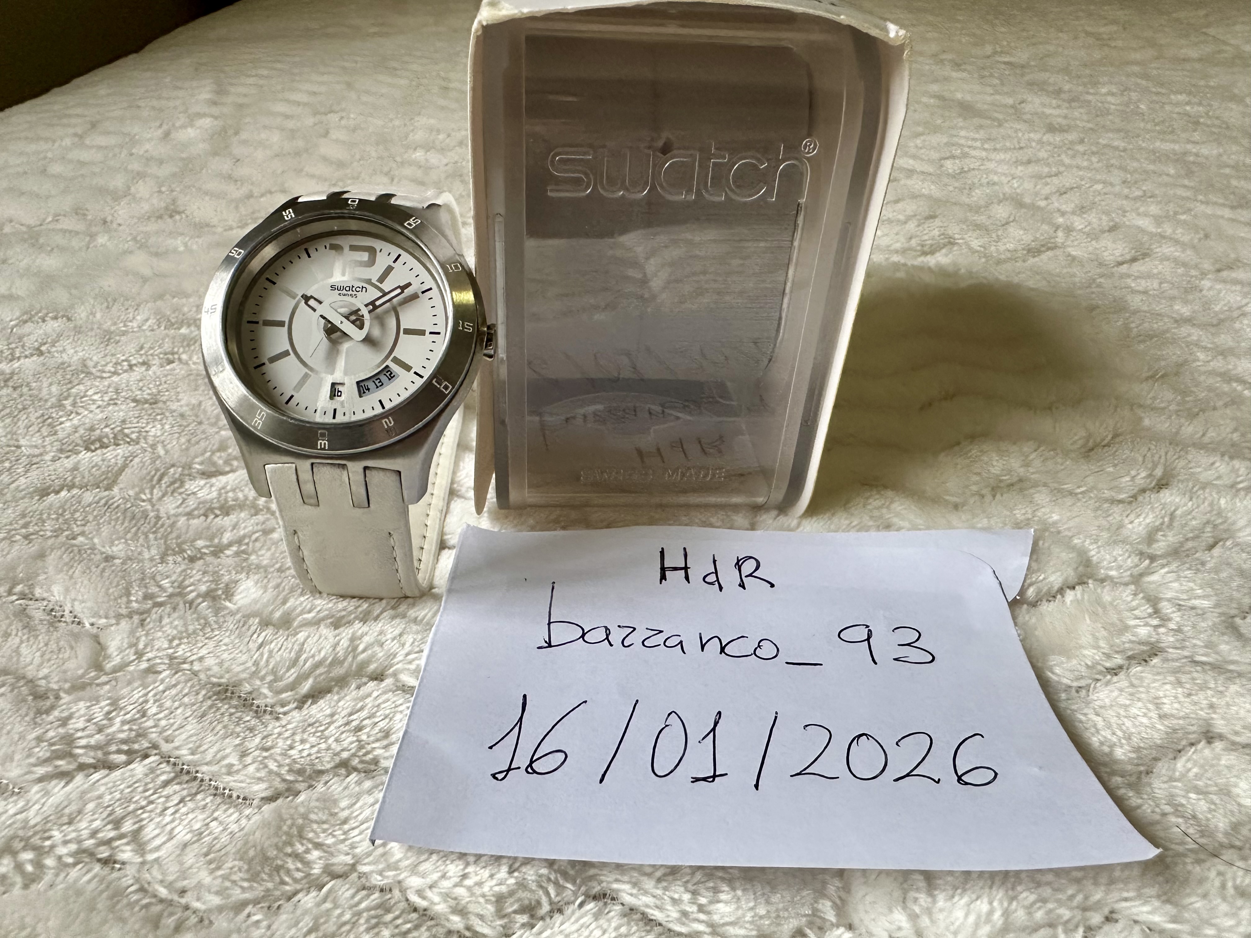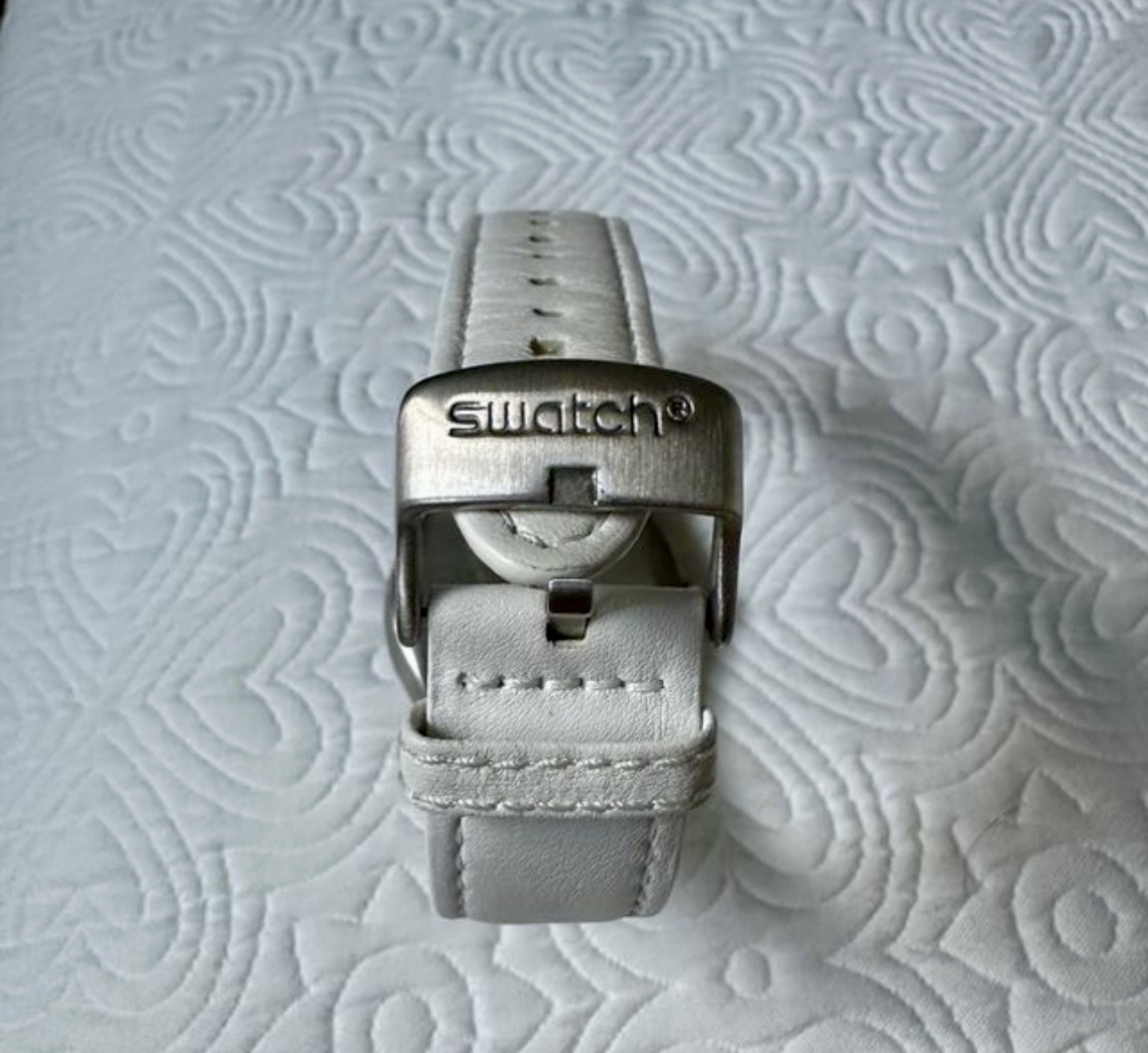 Pongo a la venta este Swatch YTS401 con correa de cuero blanca cambiada y nueva, original de Swatch.