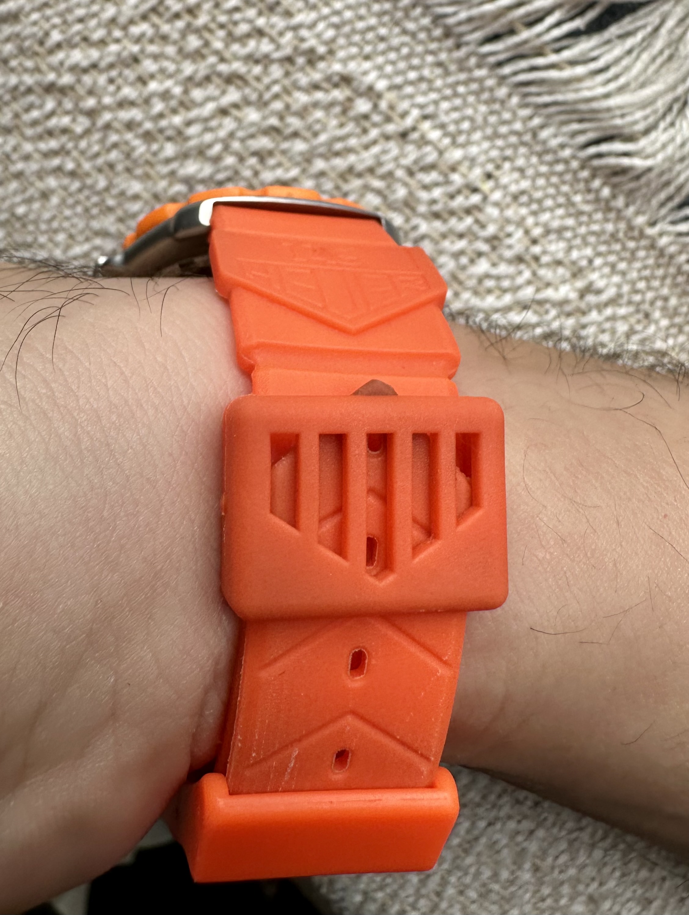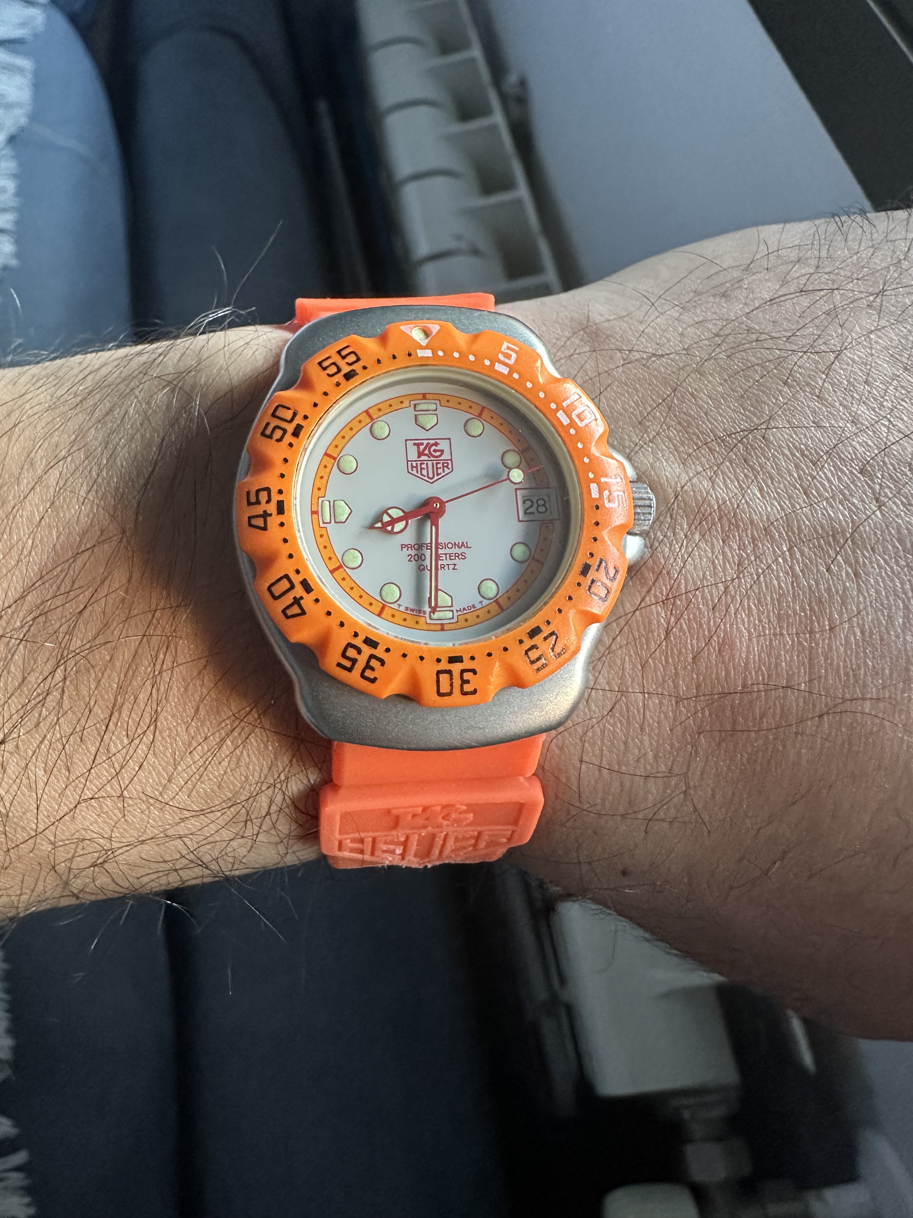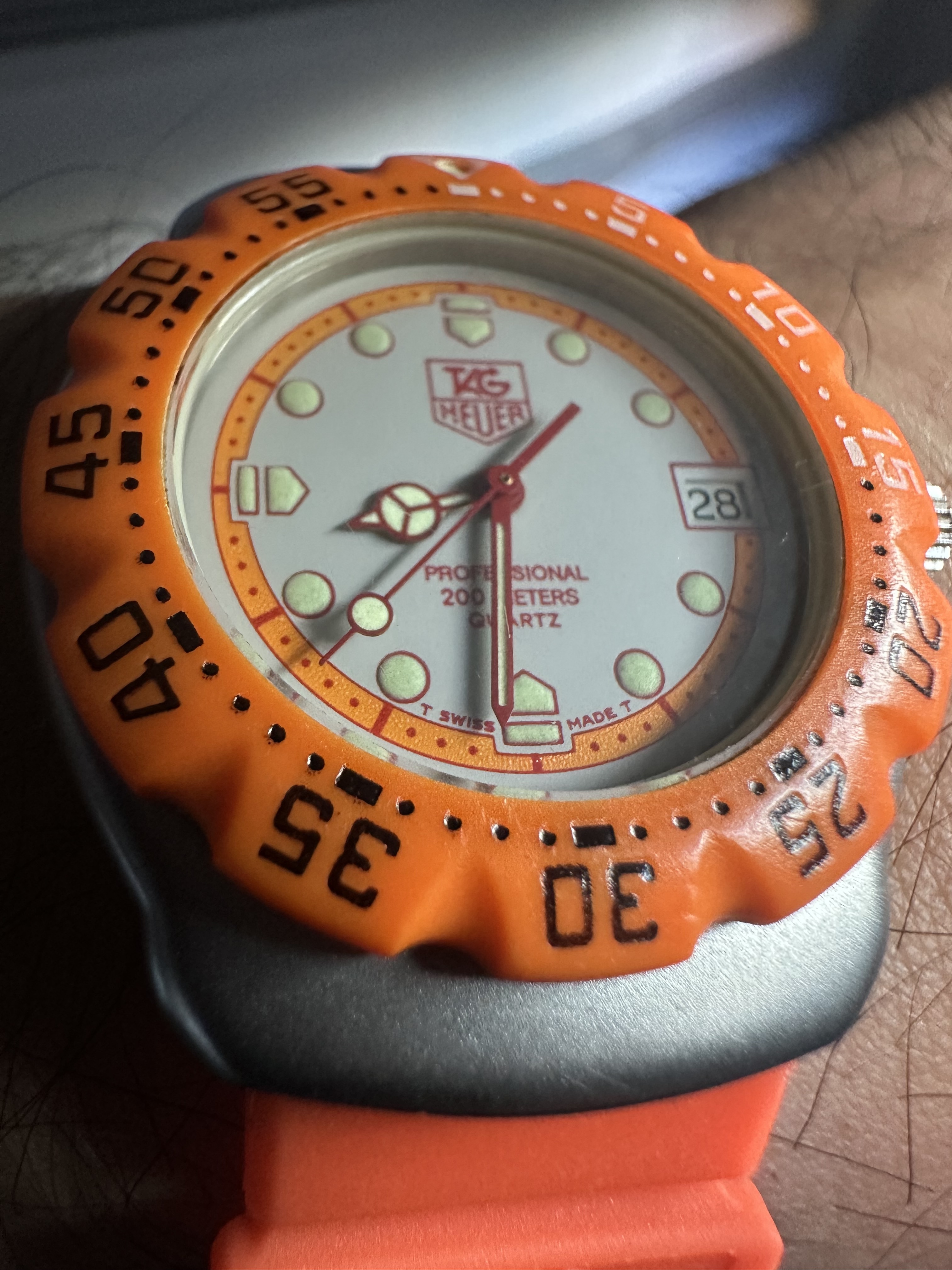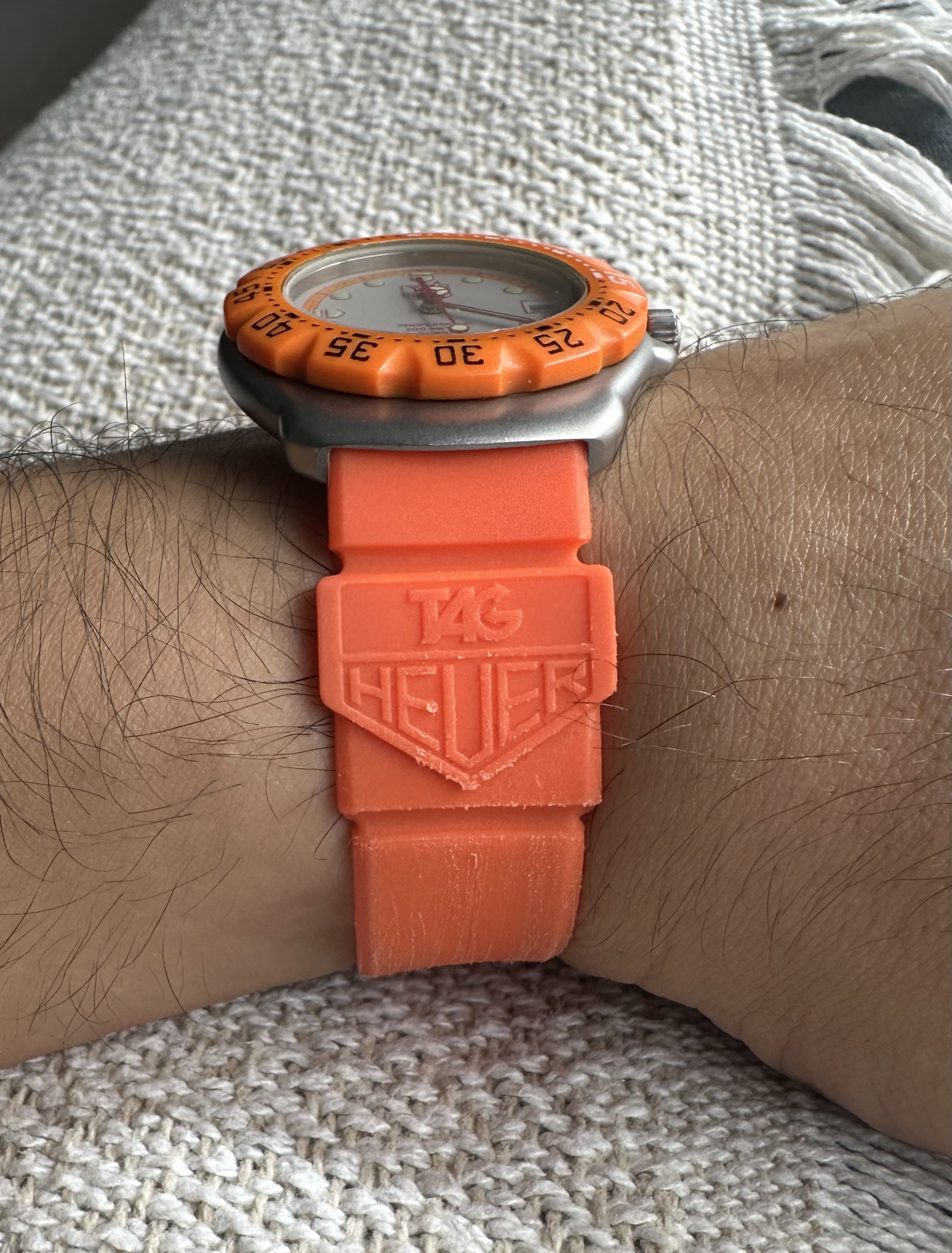 Intrahistoria aparte, se trata de un Tag Heuer 373.513 Naranja, perteneciente a la primera generación de Fórmula 1 de Tag Heuer, un reloj vintage pero que se encuentra en magníficas condiciones, incluido el bisel (que en estos modelos suele ser su punto débil de desgaste). El reloj como la correa que porta son originales.