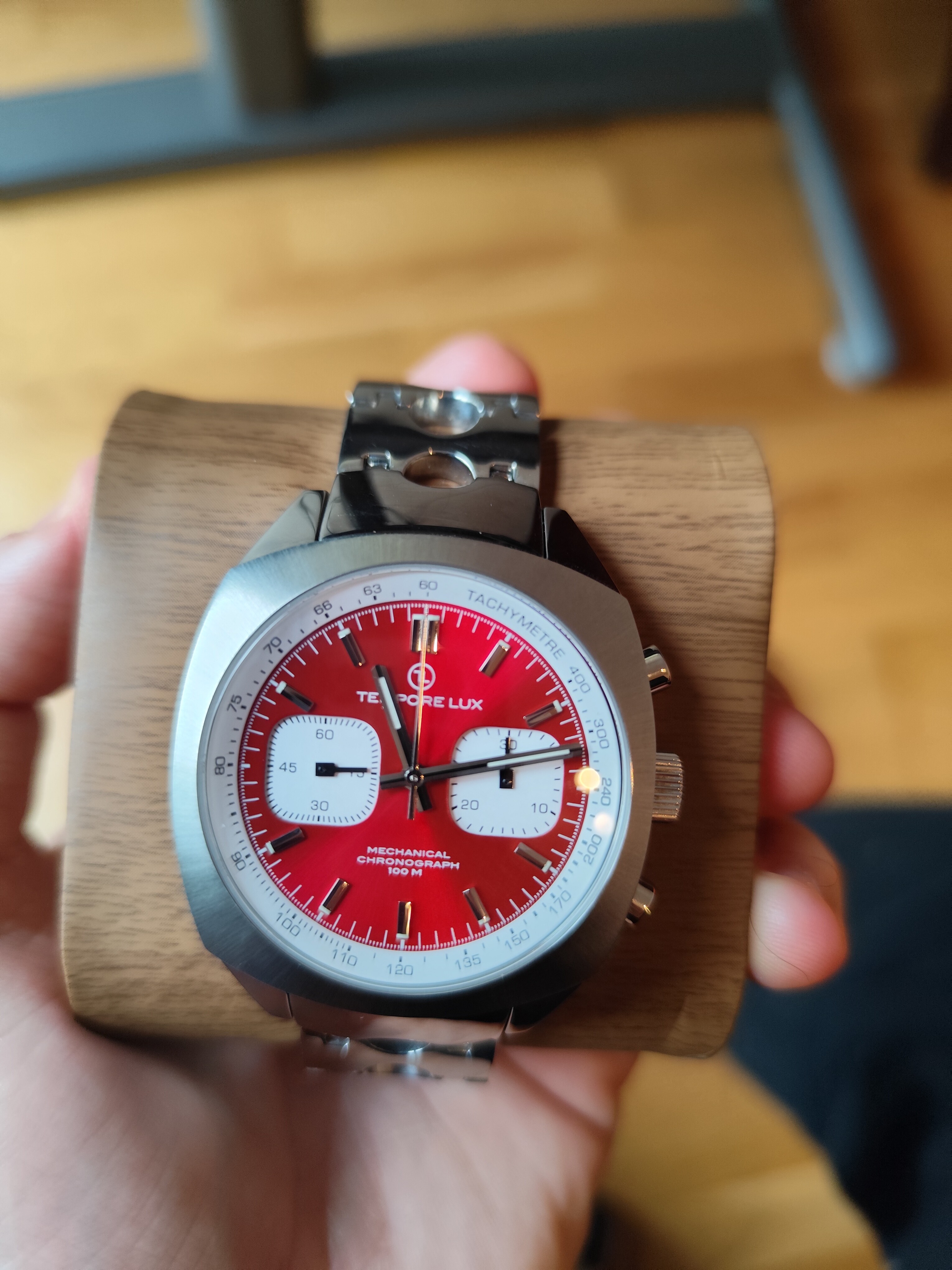 Se vende Tempore Lux Racing One Rojo versión con brazalete de finales de 2025. Está en muy buenas condiciones a excepción de algunos pelos en el brazalete y cierre que he intentado que se vean lo mejor posible en las fotos. Movimiento manual expuesto ST1901 ya conocido por todos.