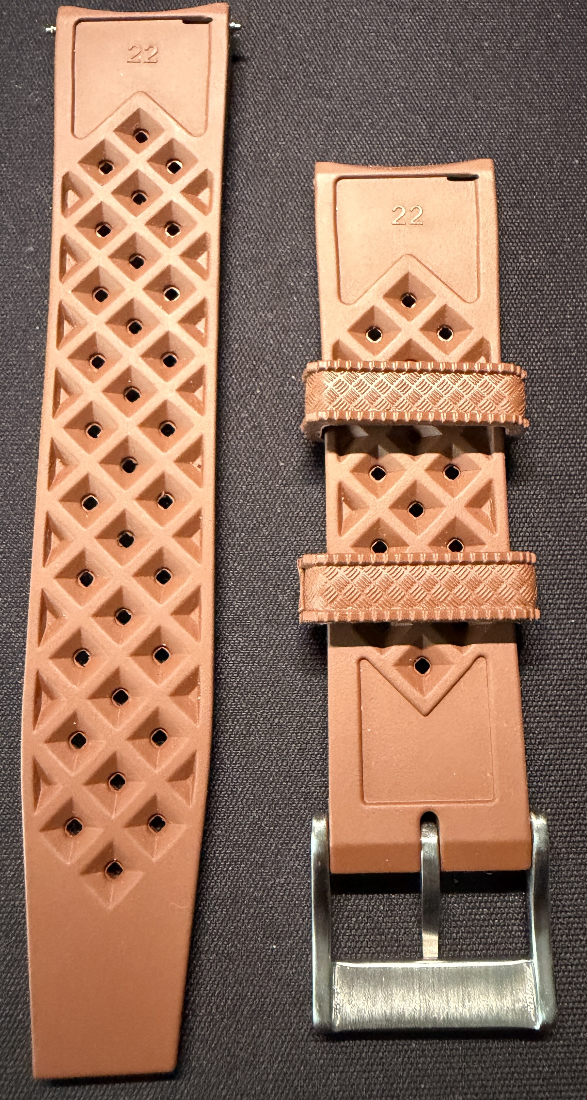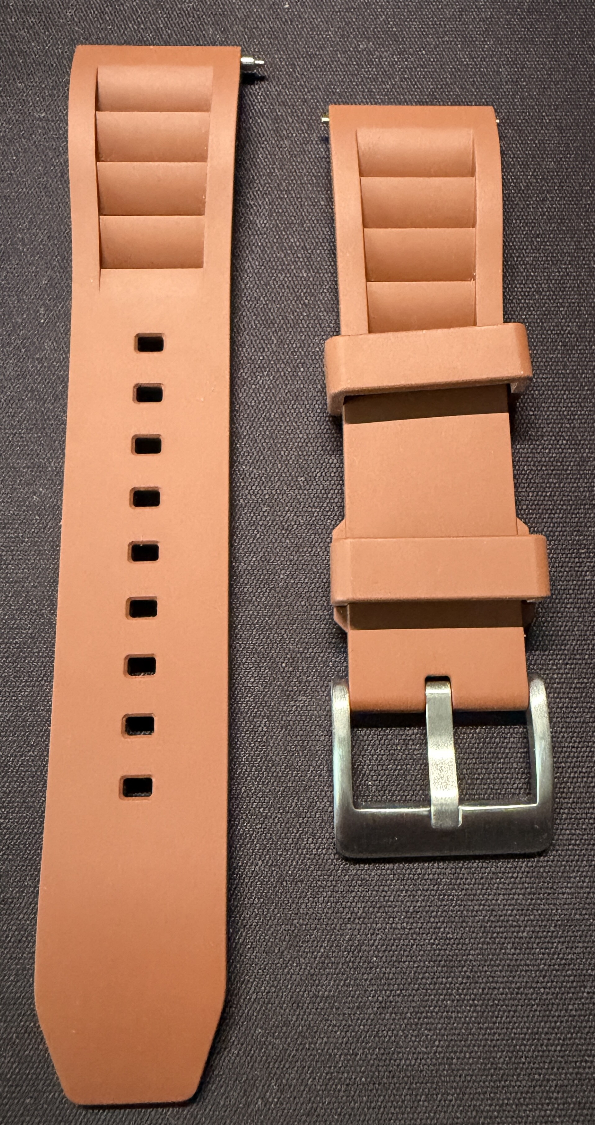 Correa de goma marrón de 22mm. Sin uso. 15€.