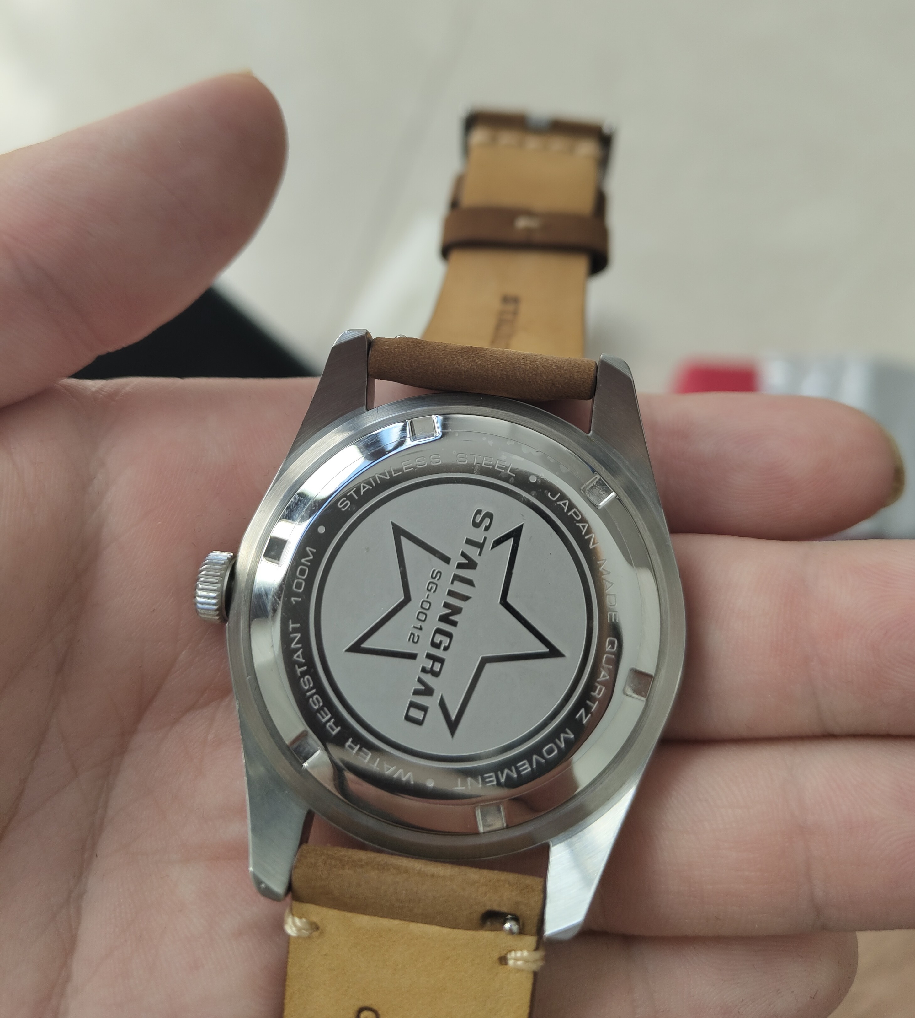Stalingrad;no tengo ni idea de cuál es el modelo porque no lo e encontrado por ningún lado el reloj es completamente de acero con correa de muy buena calidad de cuero que viene firmada.