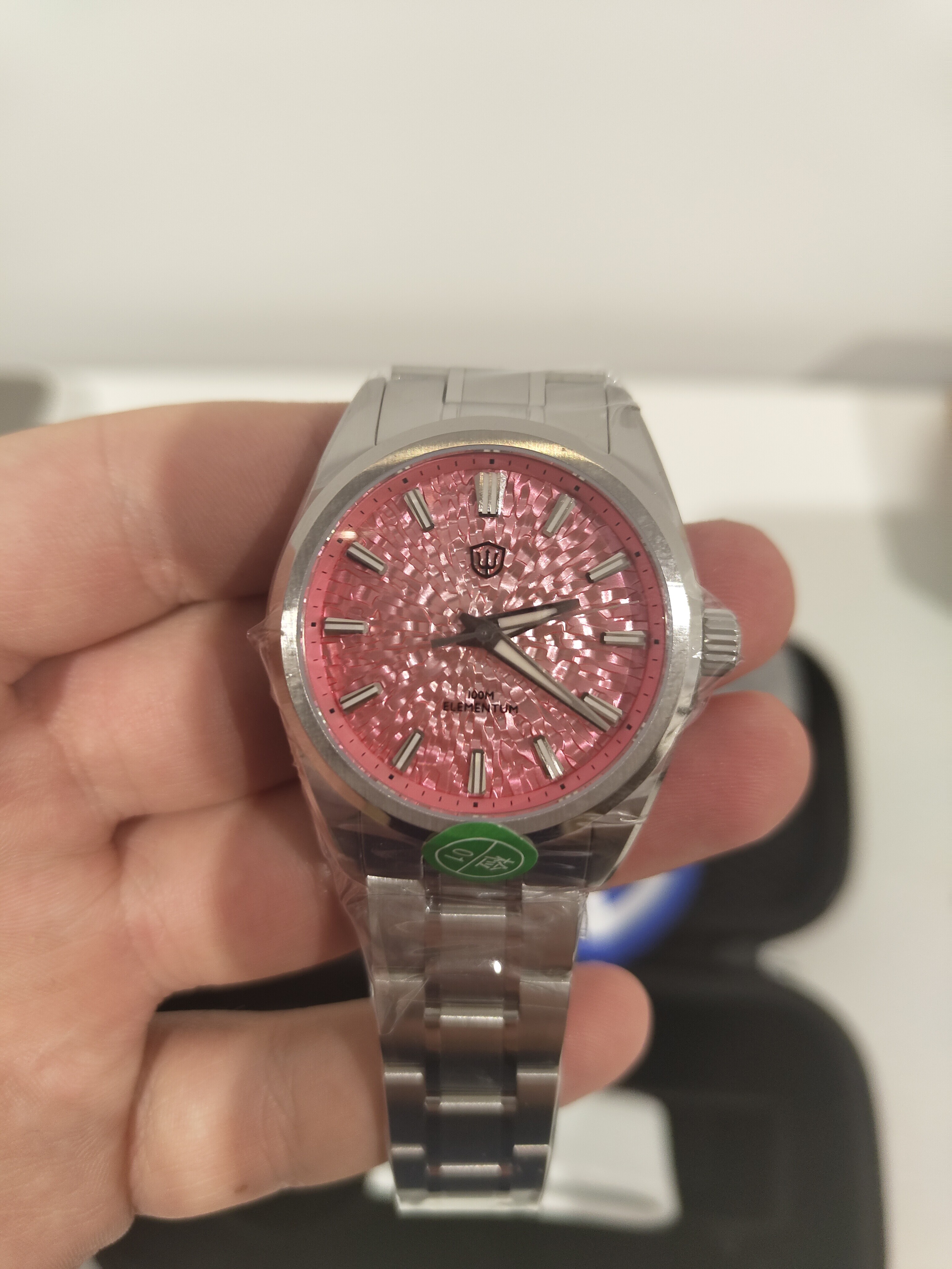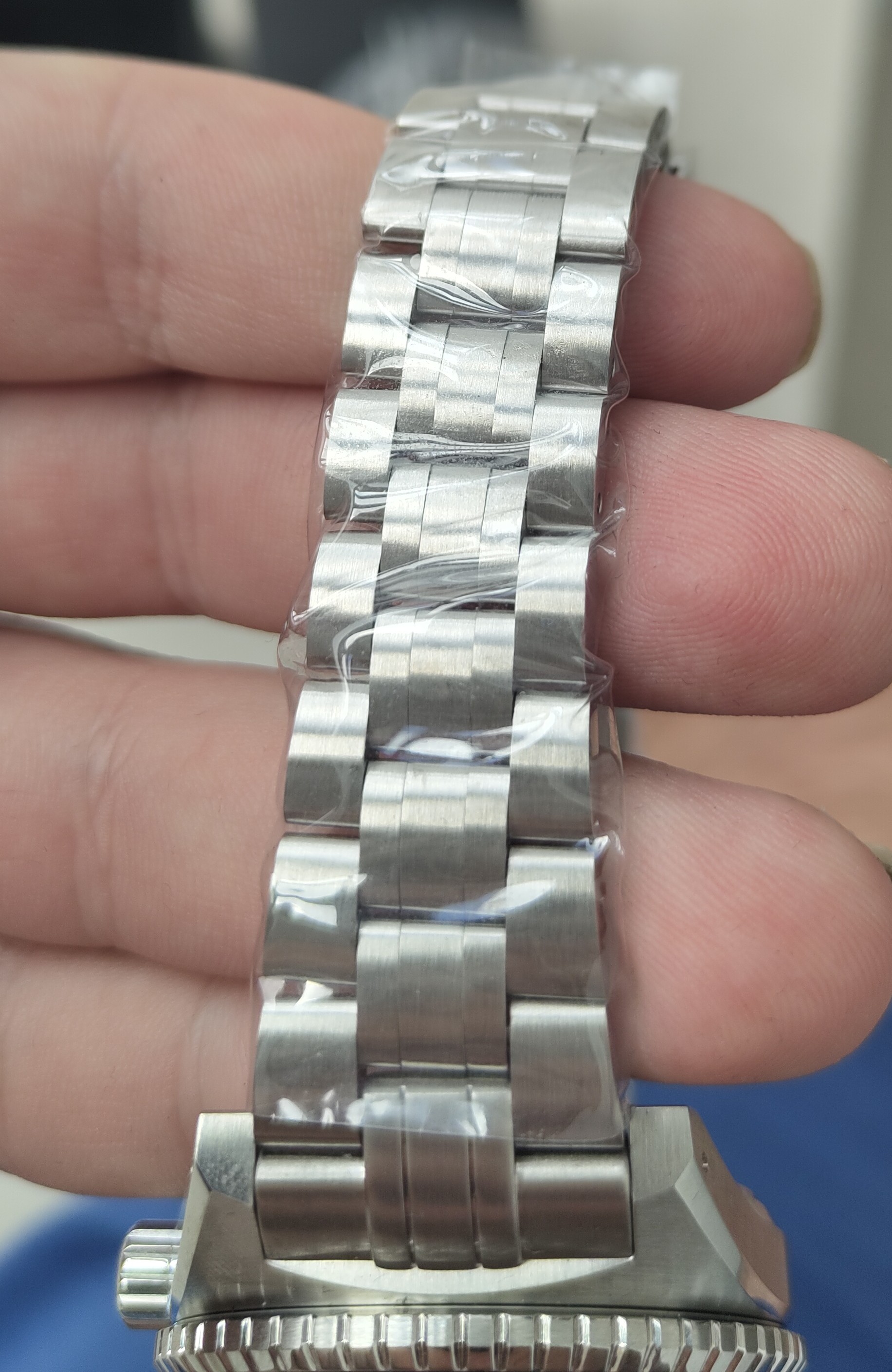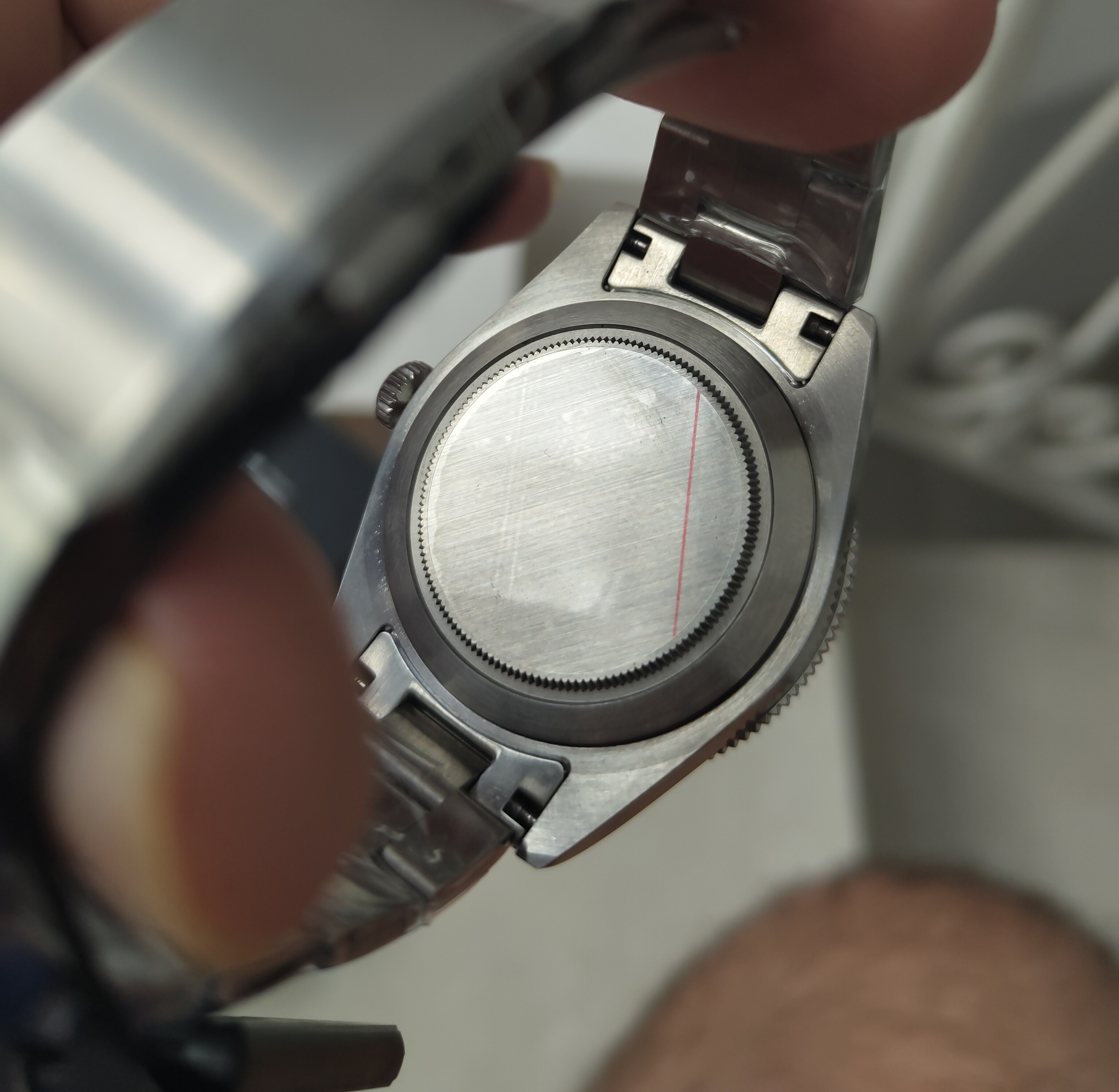 Las mismas características que el anterior solo que este lleva el fechador a las 6 y el inserto del bisel creo que es de aluminio,no estoy seguro pero tampoco sé cómo verificarlo.