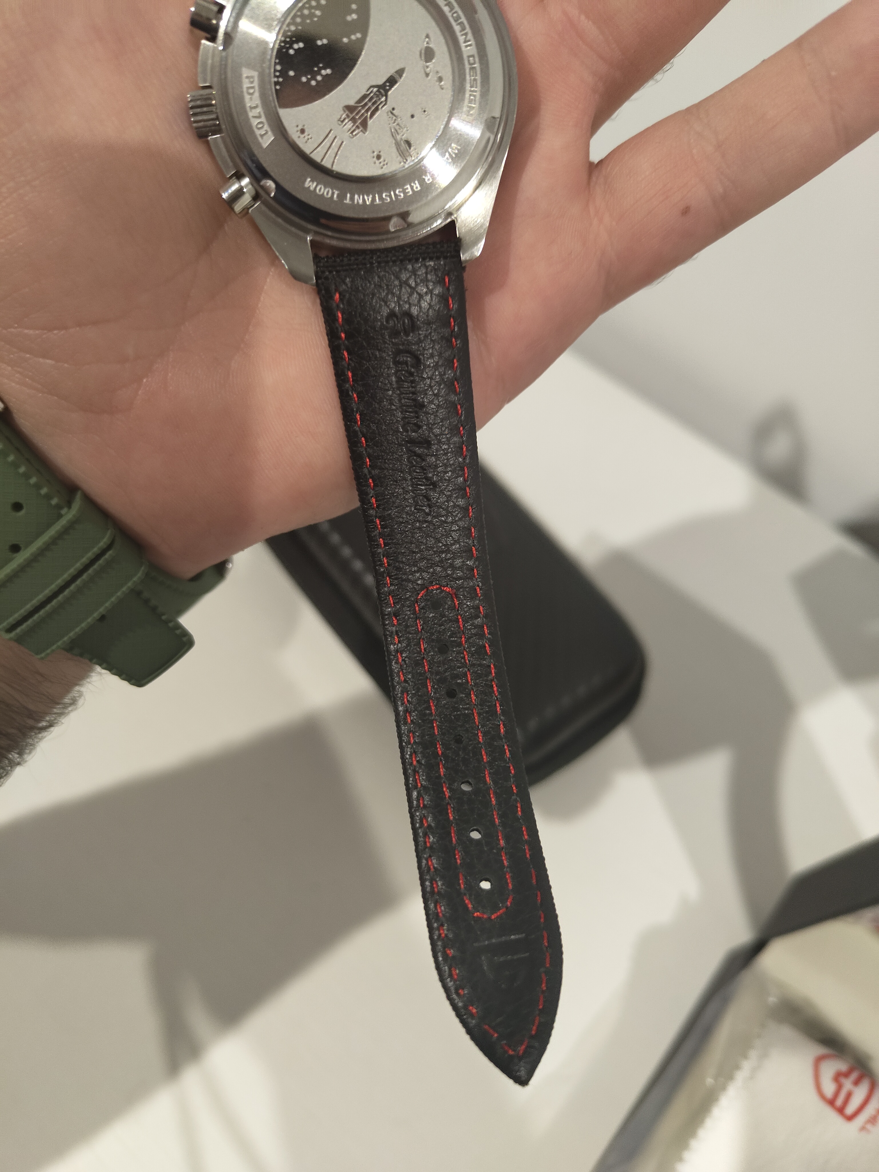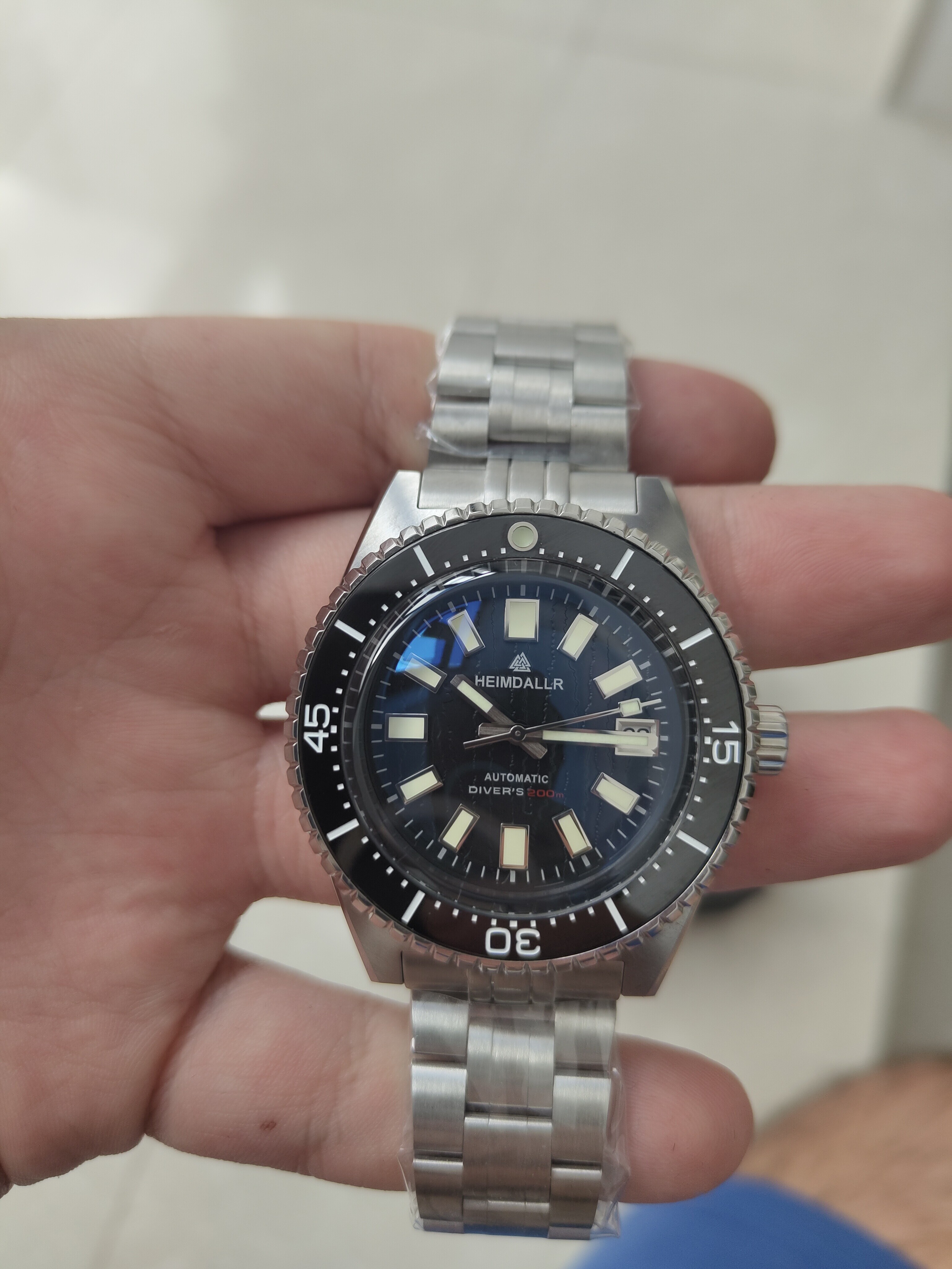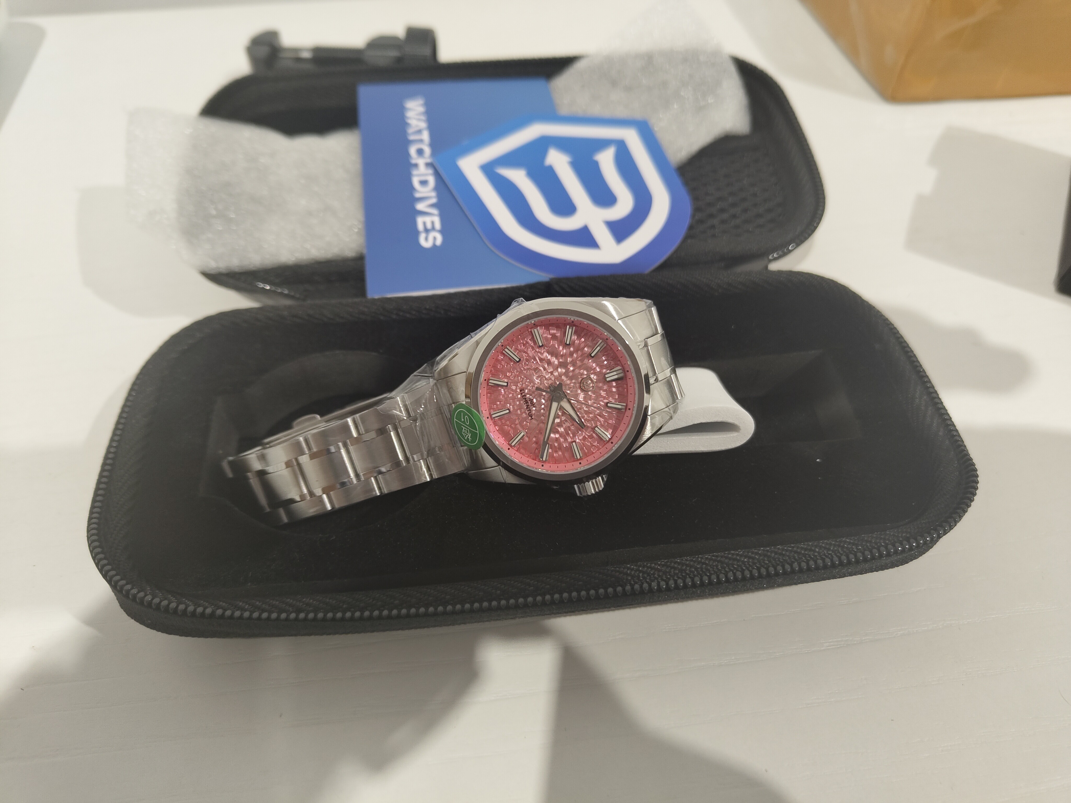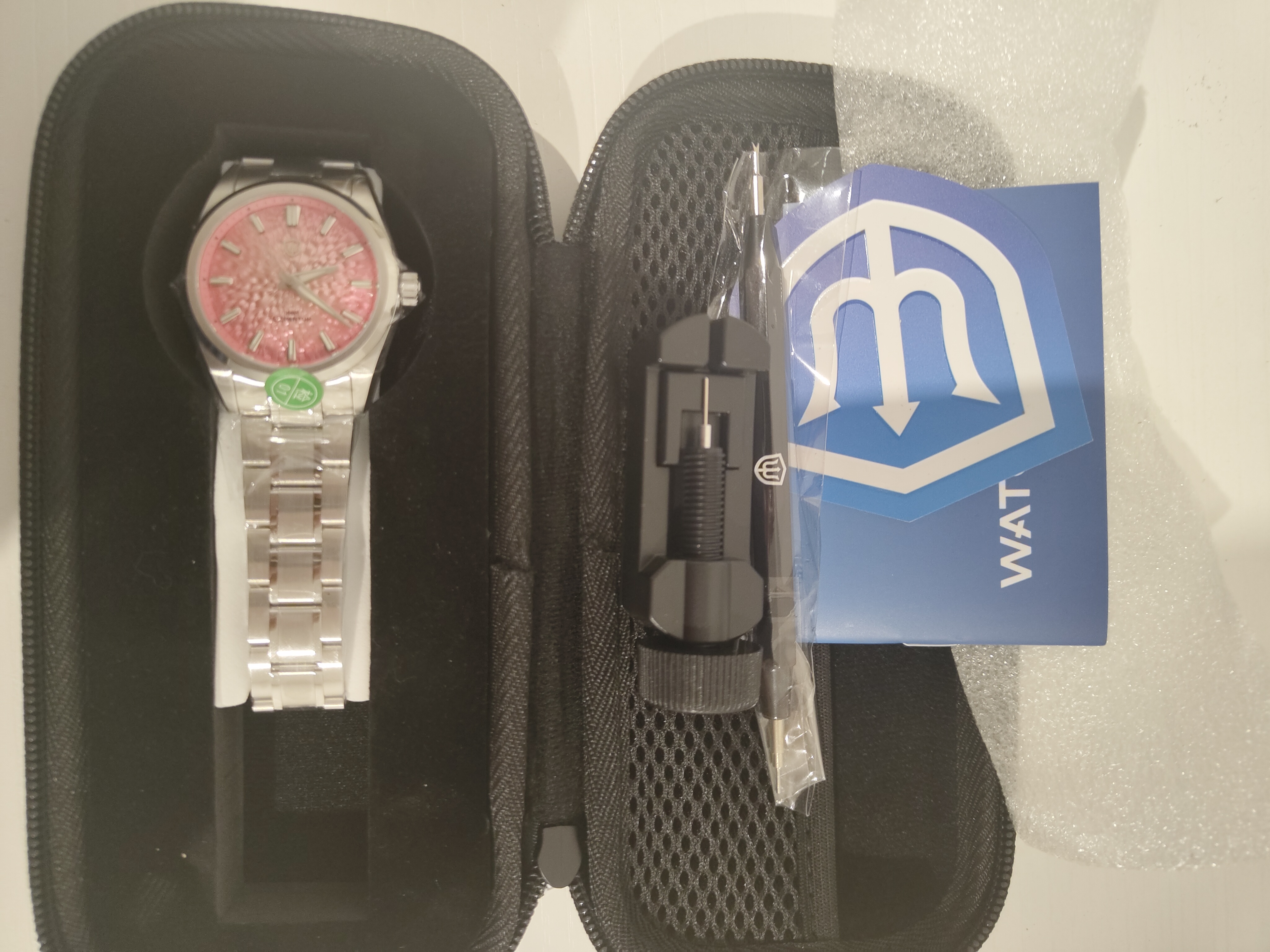 Las mismas características que el anterior solo que este lleva el fechador a las 6 y el inserto del bisel creo que es de aluminio,no estoy seguro pero tampoco sé cómo verificarlo.