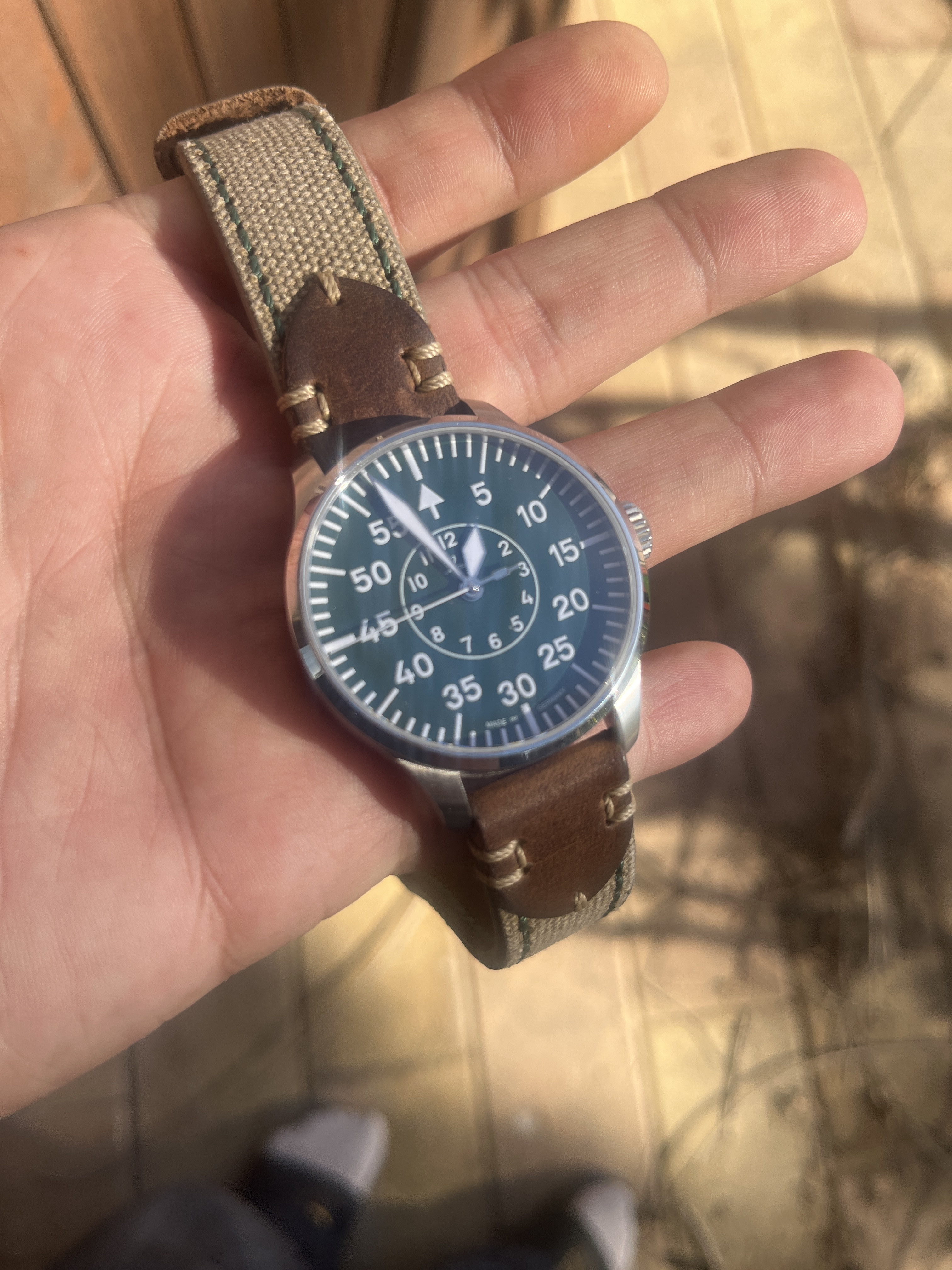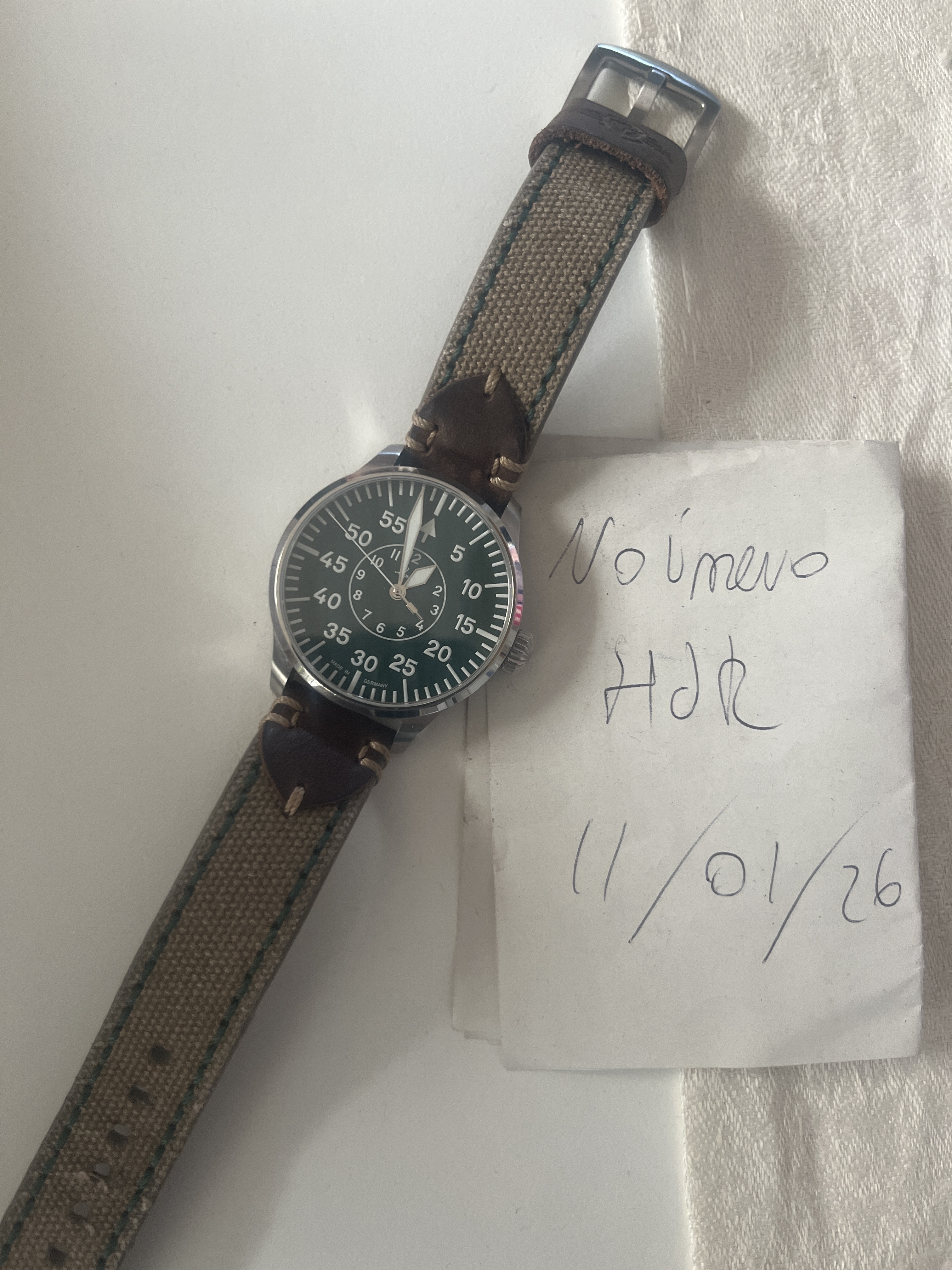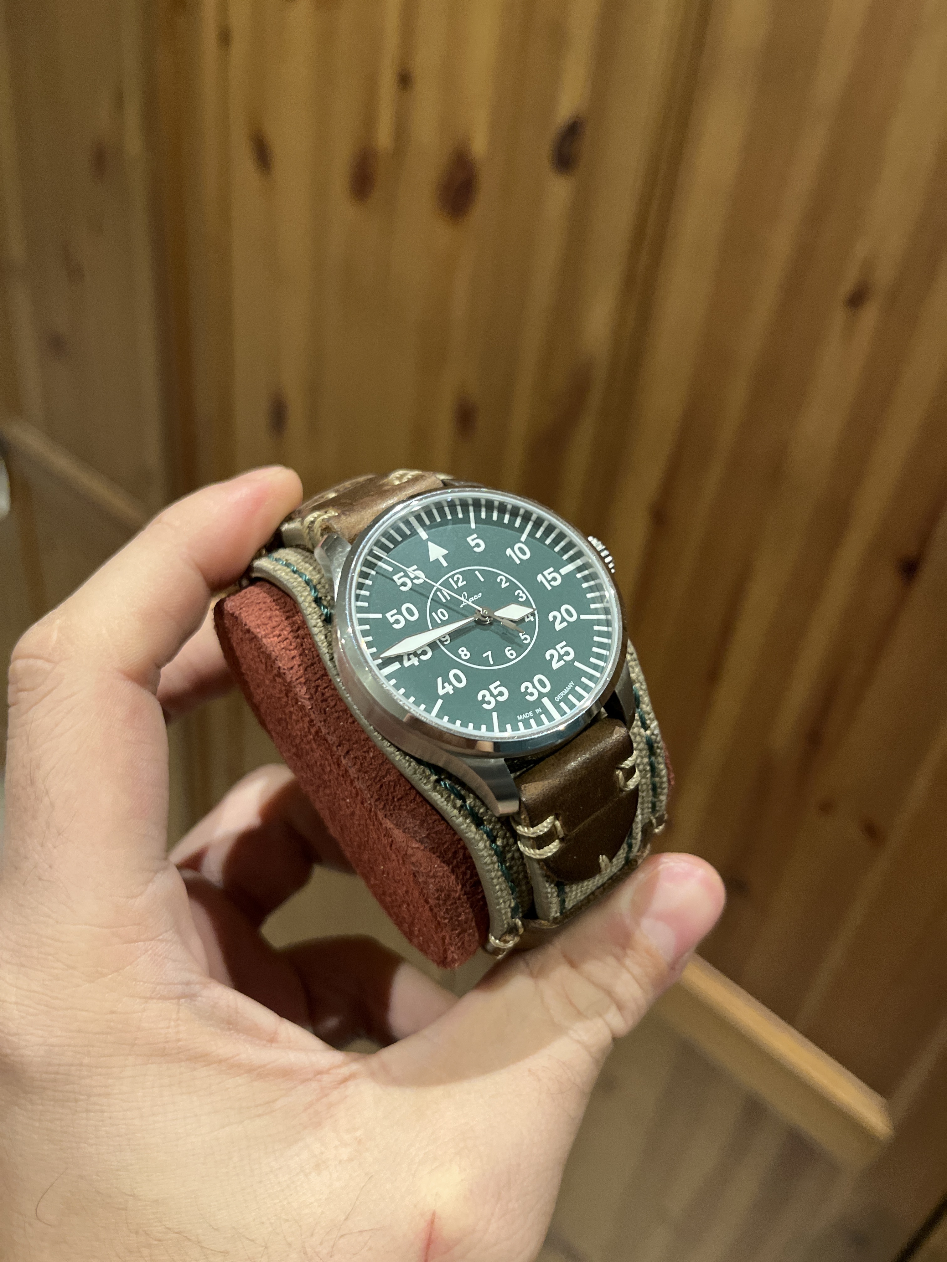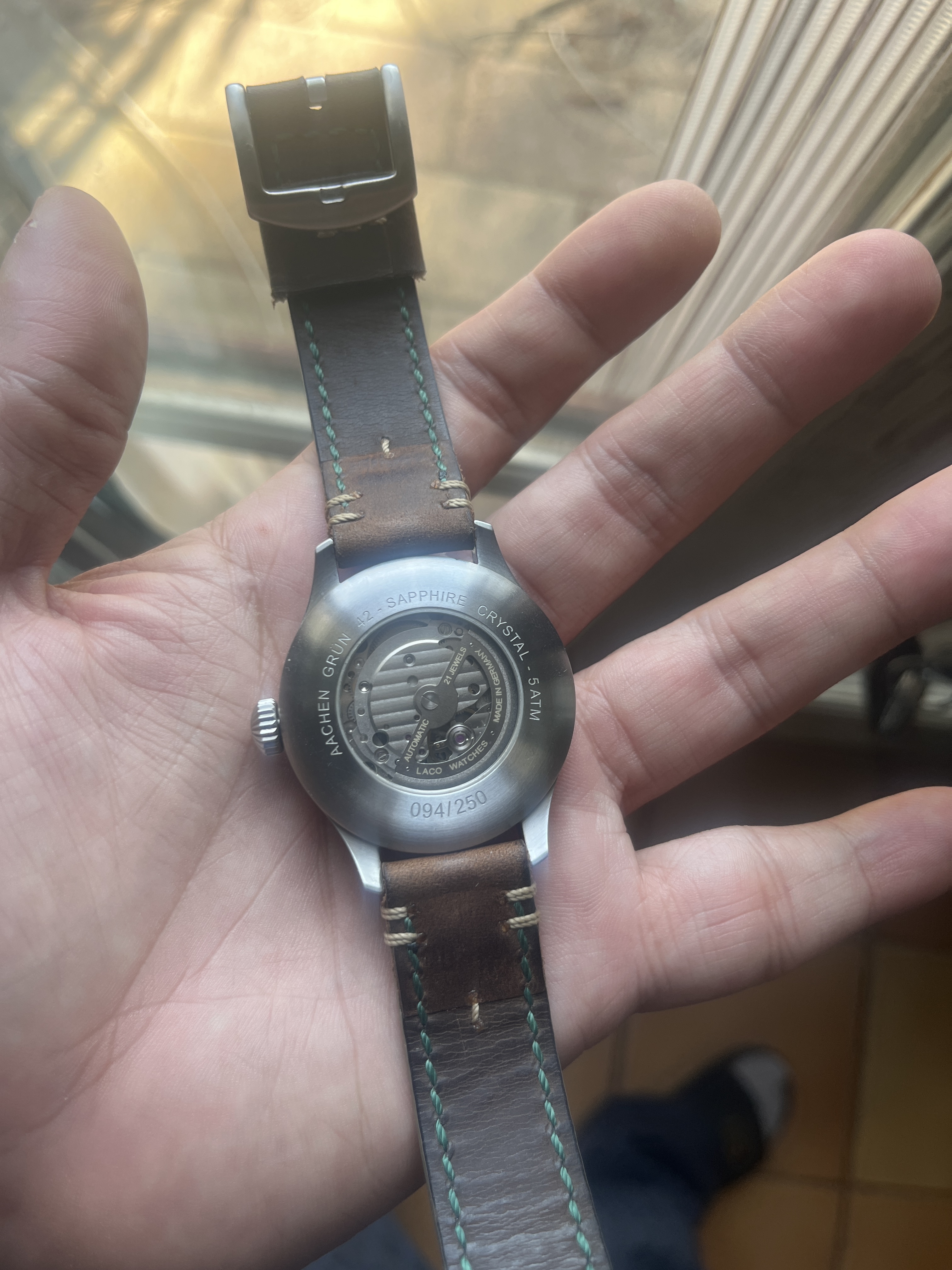 Laco Aachen Grün tipo B. Comprado hace 2 años, es una edición limitada con en el dial en un tono verdoso. Se encuentra fuera de stock.