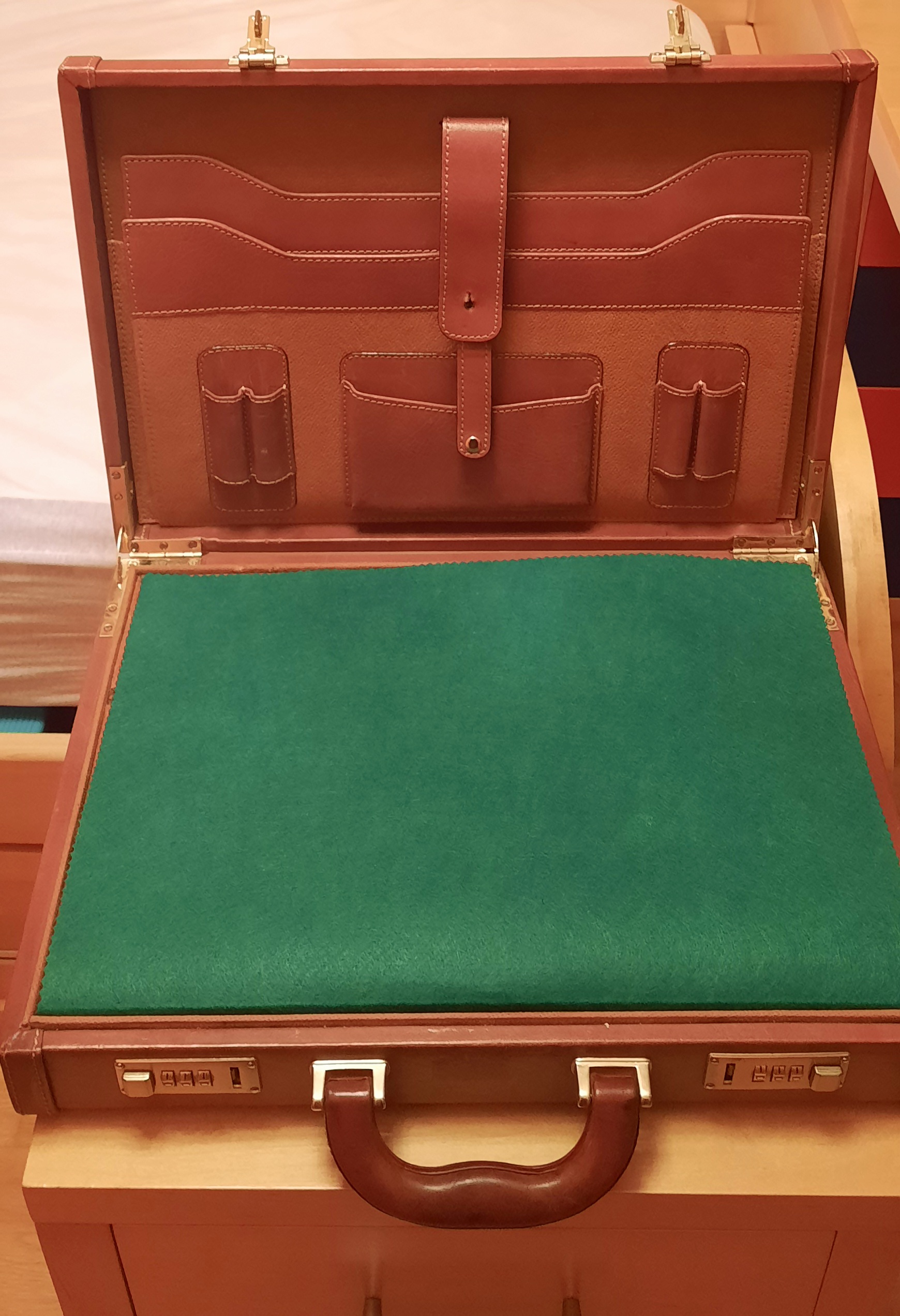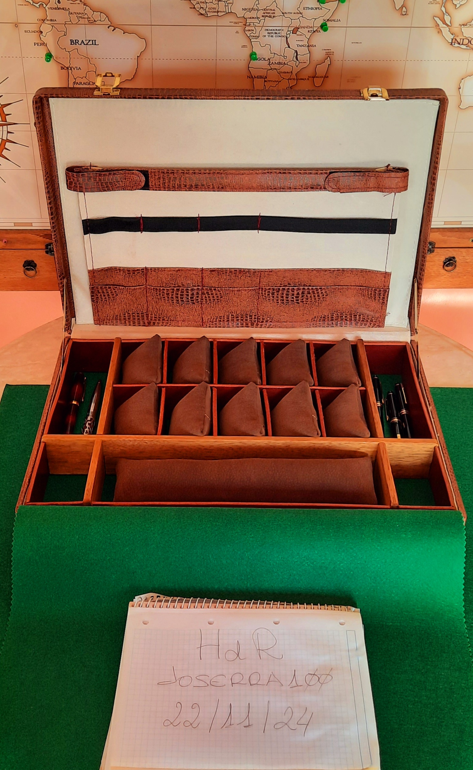 Opción 6. Maletín piel genuina, con combinación, interior rematado con cuero auténtico y almohadillas tela-piel, para 18 relojes accesorios y documentos. 345 €