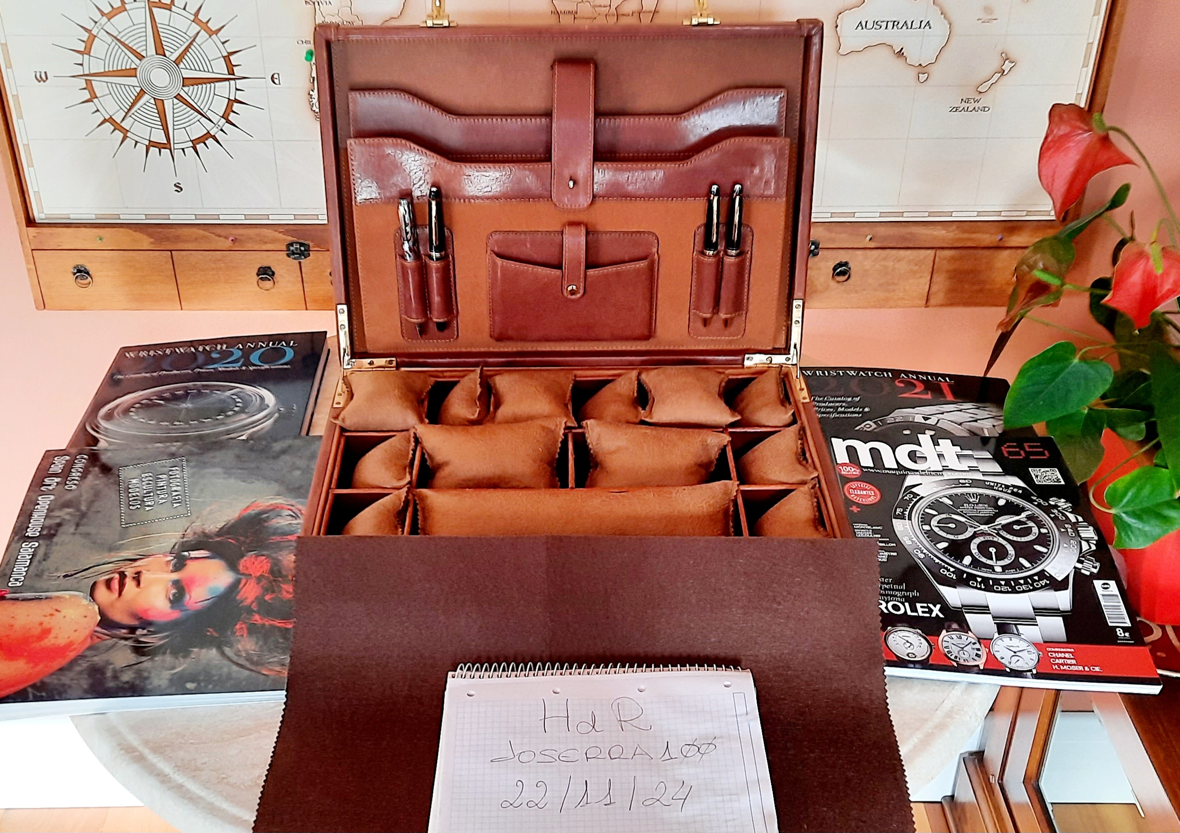 Opción 5: Maletín piel genuina, con cierre combinación, de 10 a 16 relojes, accesorios y documentación. 285 €.